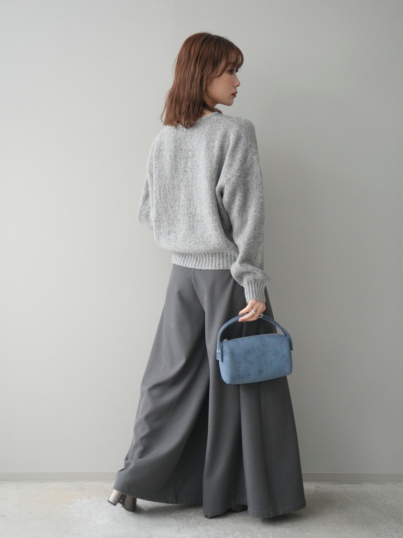 ・お手入れ方法:水温30℃以下手洗いでのお洗濯をお薦めします。素材の特性上、洗濯の際に色落ち・縮みが生じる恐れがありますので単独で・短時間でのお洗濯をお薦めします。裏返してネットに入れ手洗いコースで洗濯、洗濯後は形を整えてから干してください。※タンブラー乾燥は控えてください。 色落ち・色移りを防ぐため、必ず単独で洗ってください。濡れたままの状態で擦れると、色落ち色移りすることがあります。つけ置き洗いや雨や汗で濡れたまま放置は避け、速やかに処理してください。着用中の摩擦や汗、水濡れ、濃淡差があるものとの重ね着にご注意ください。また、素材の特性上伸びやすい為ハンガーの使用はお控えいただき畳んで保管ください。