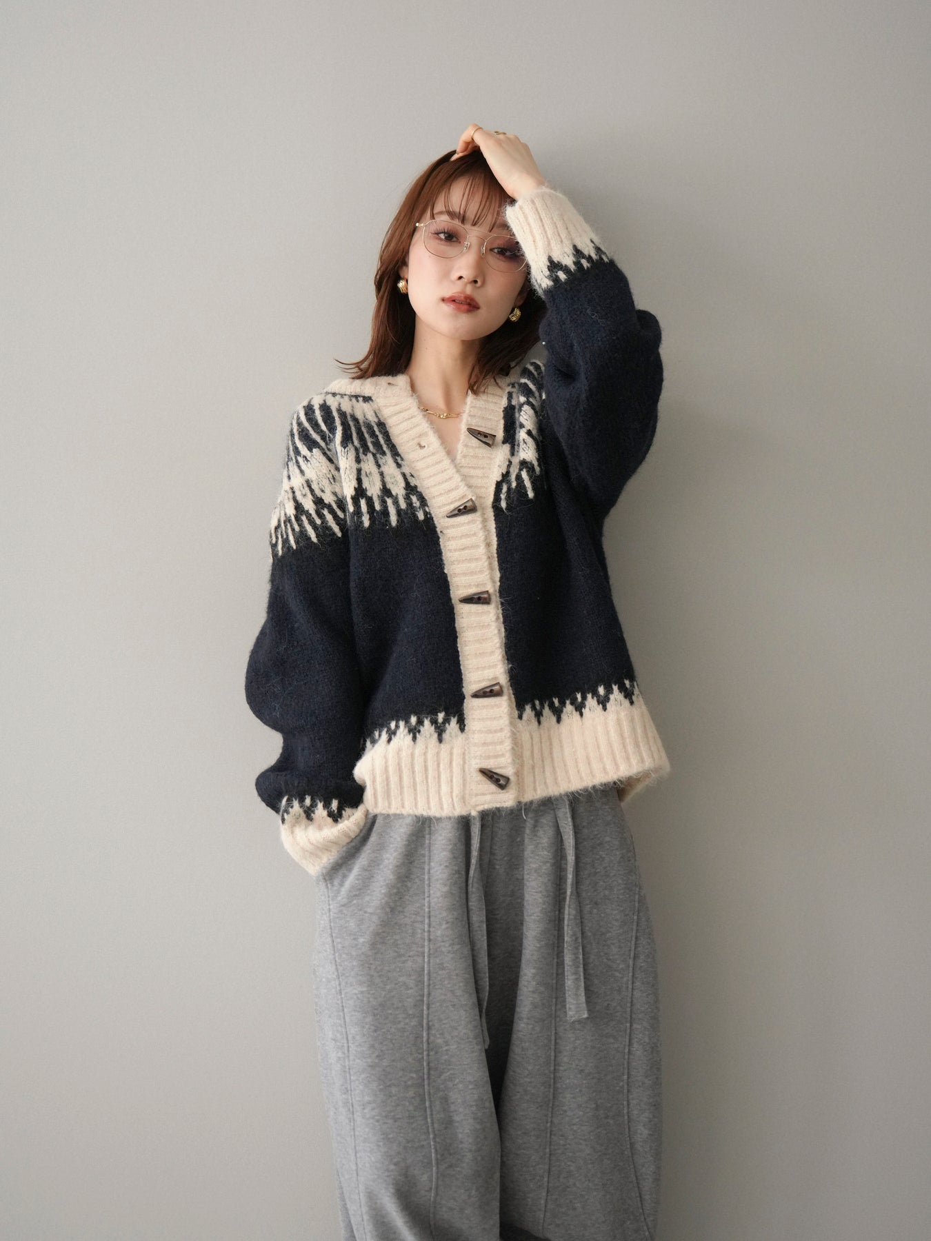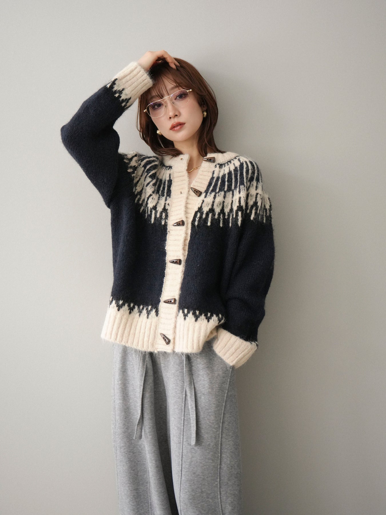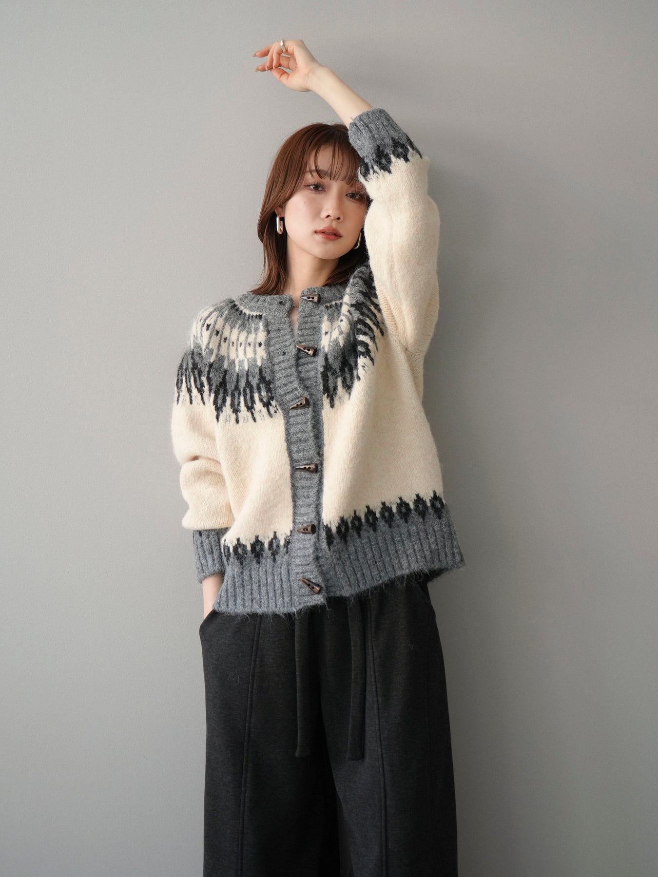◆ [予約]トグルボタン求心柄ニットカーディガン