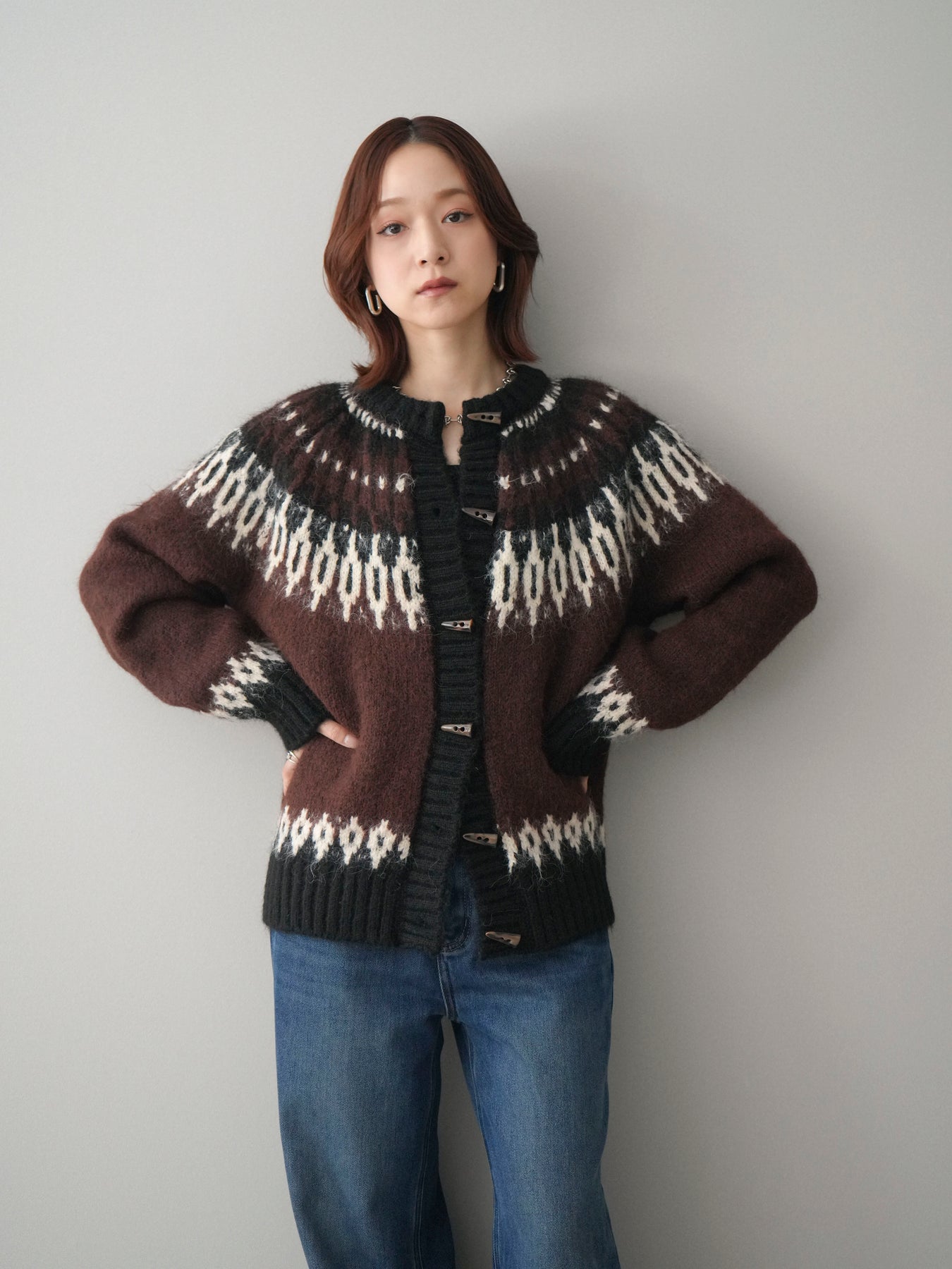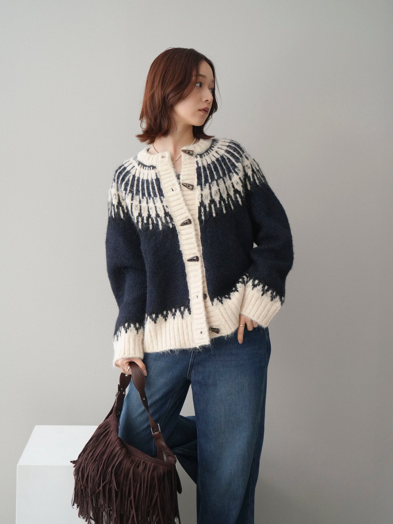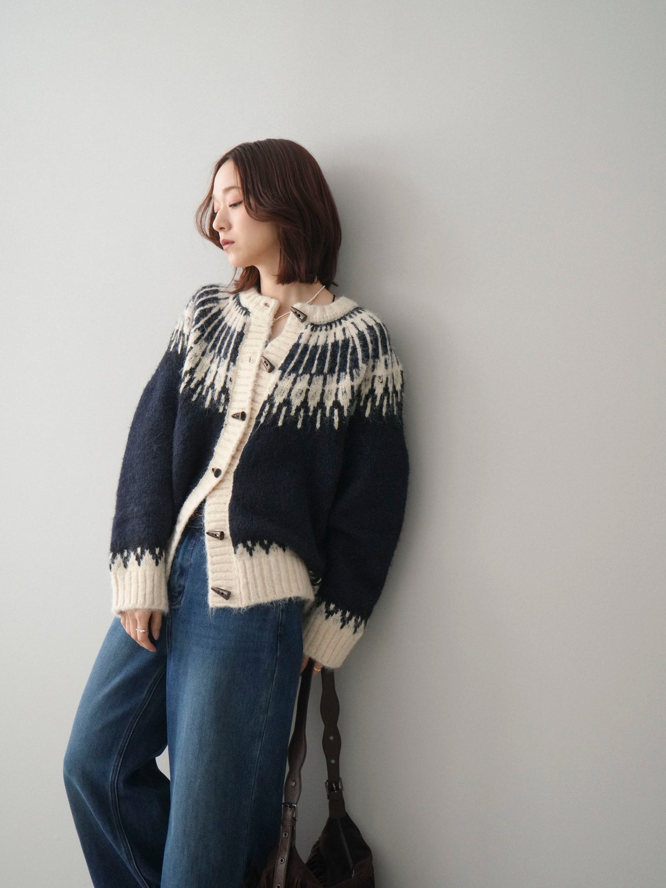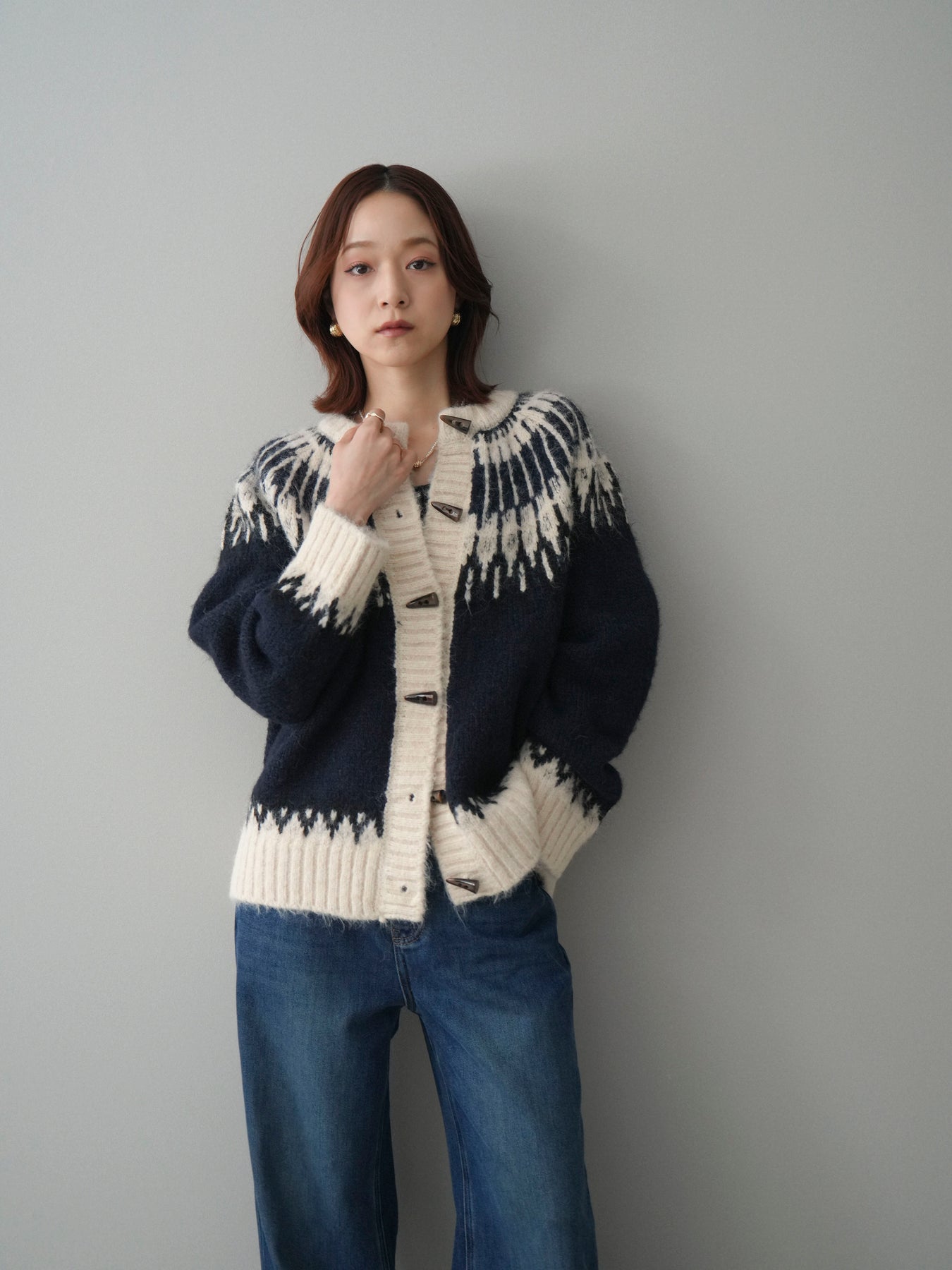 ◆ [予約]トグルボタン求心柄ニットカーディガン