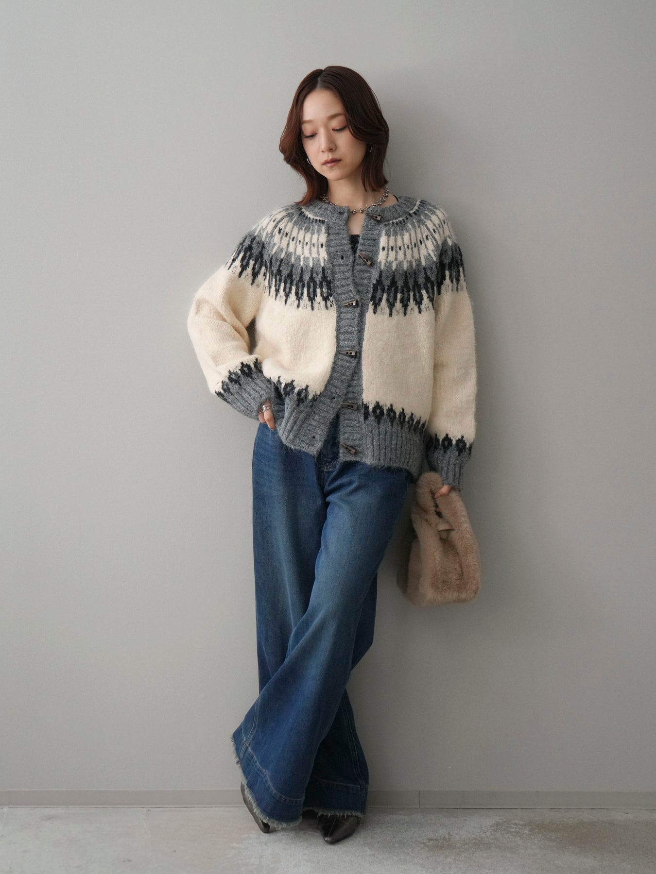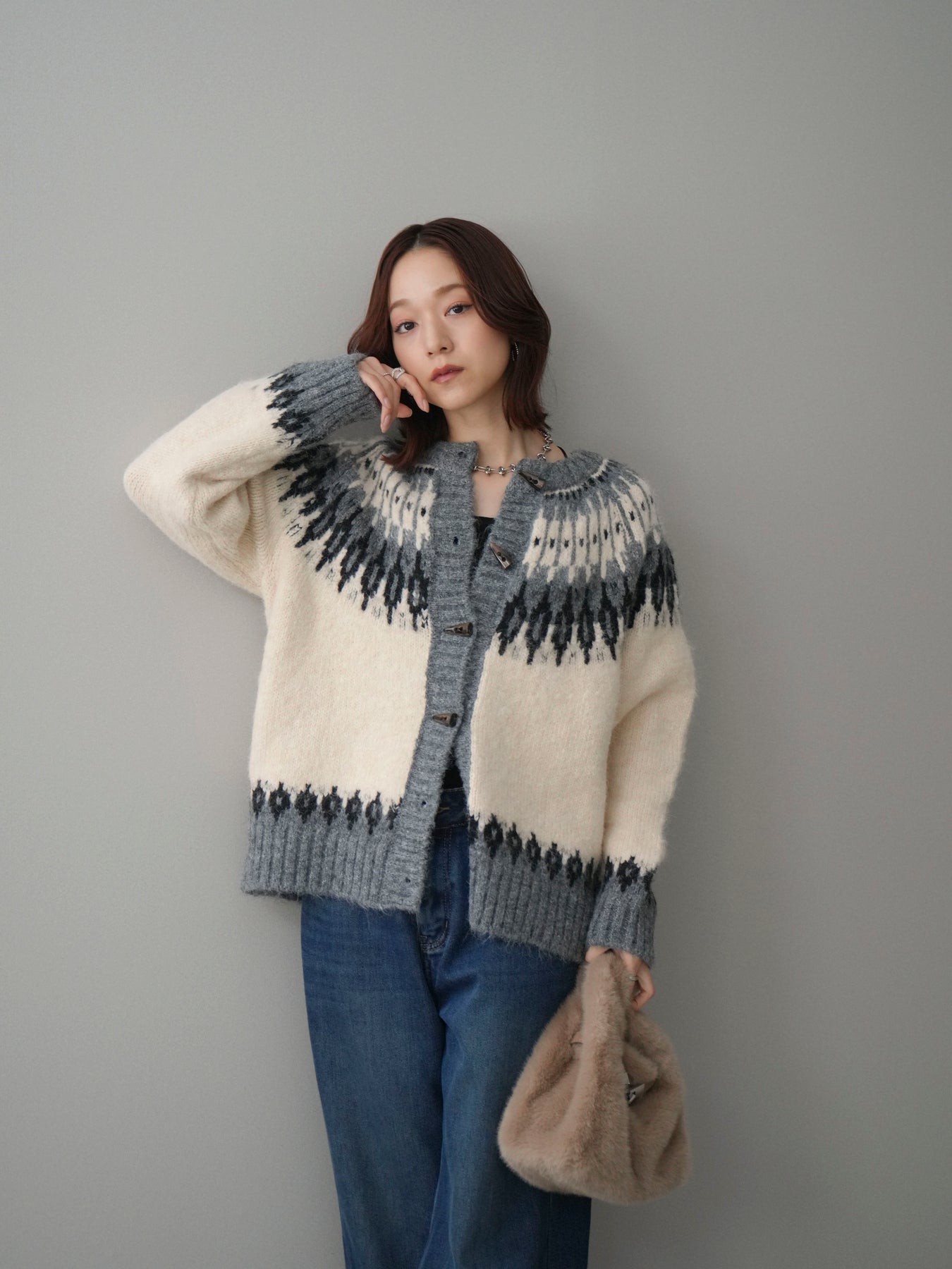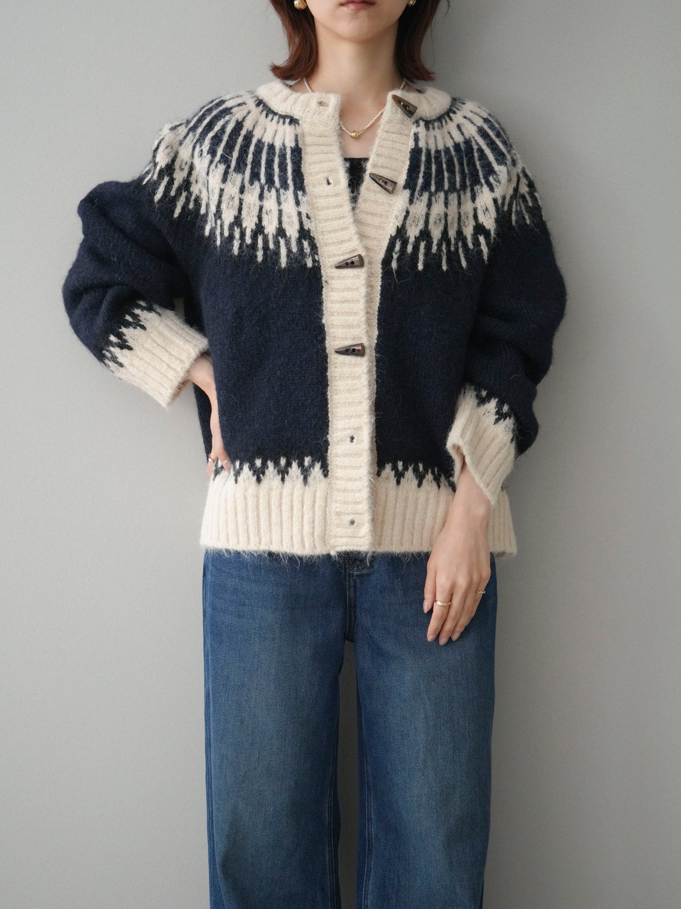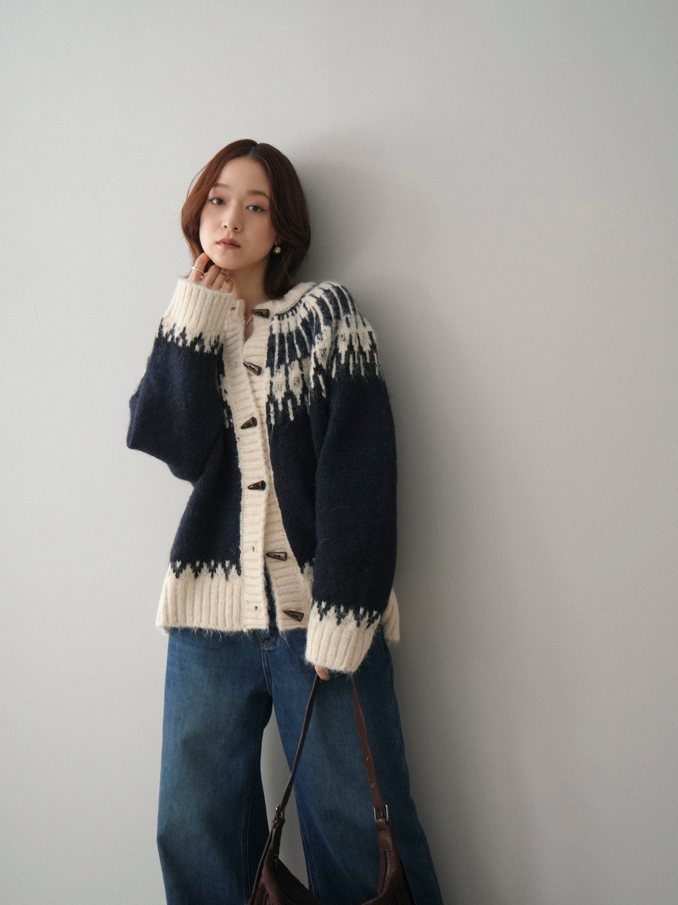 ◆ [予約]トグルボタン求心柄ニットカーディガン