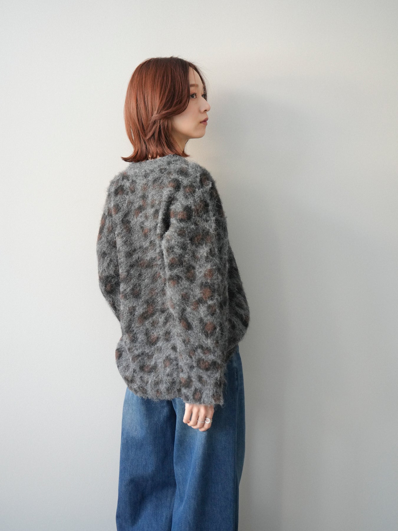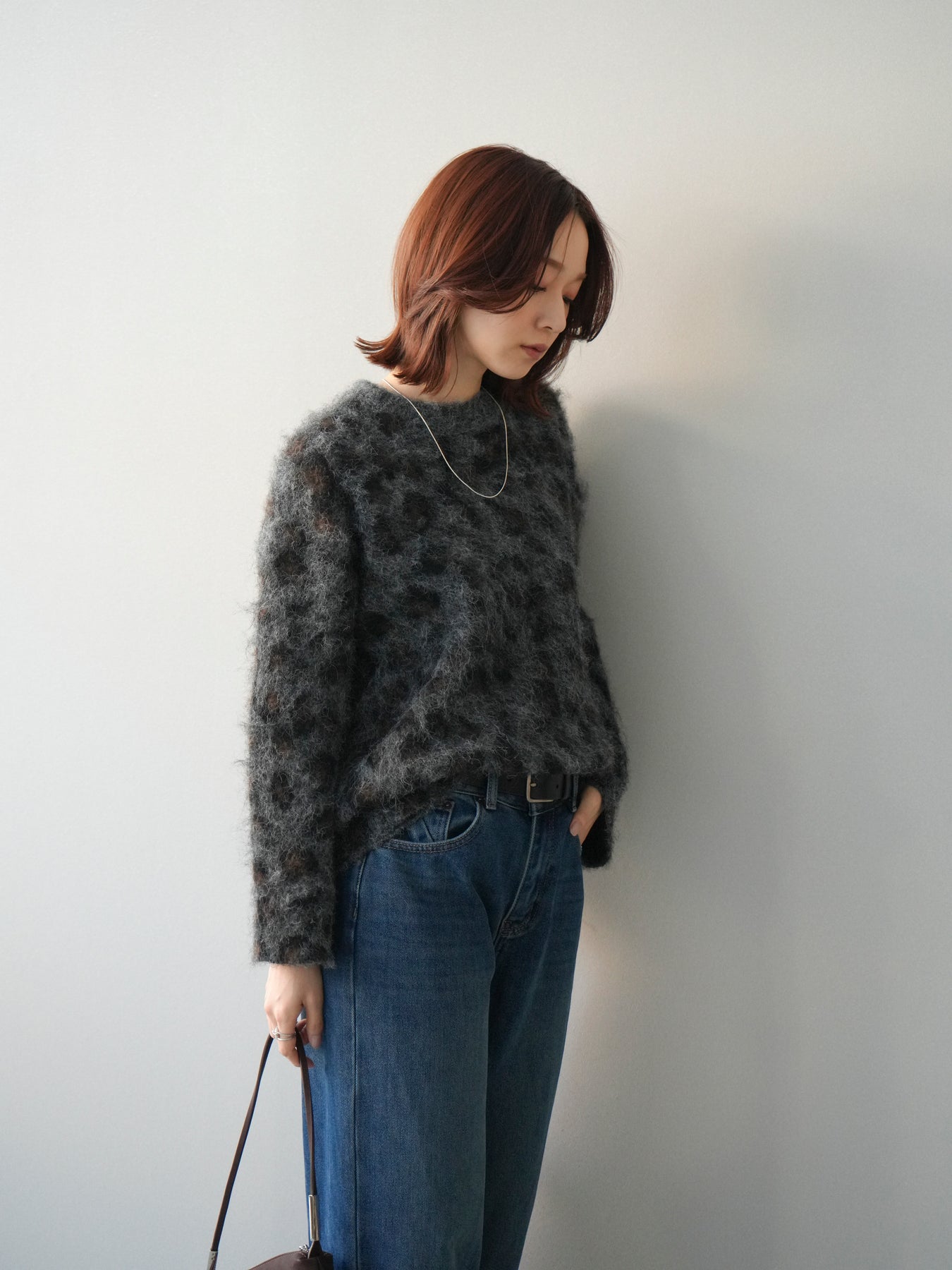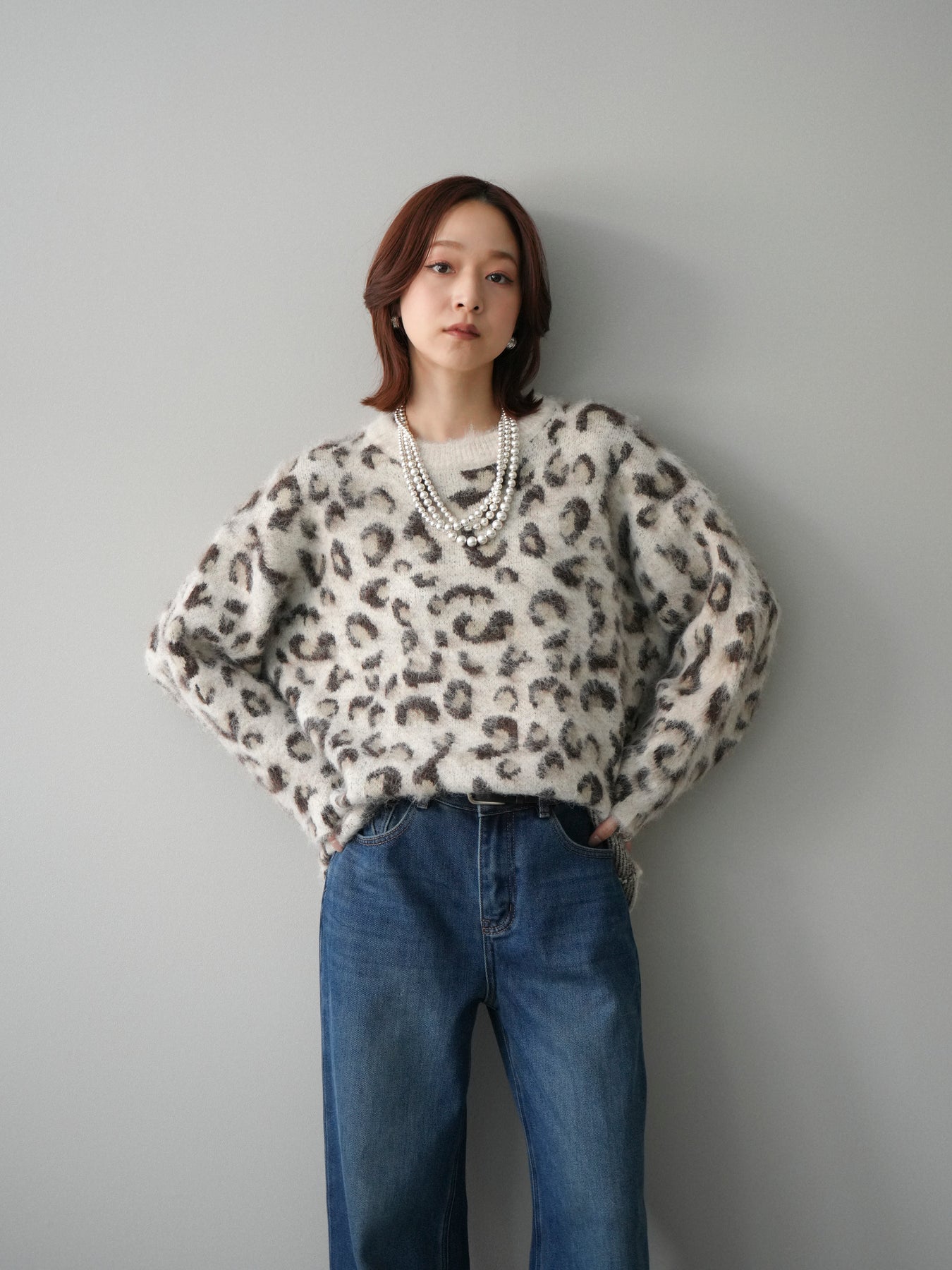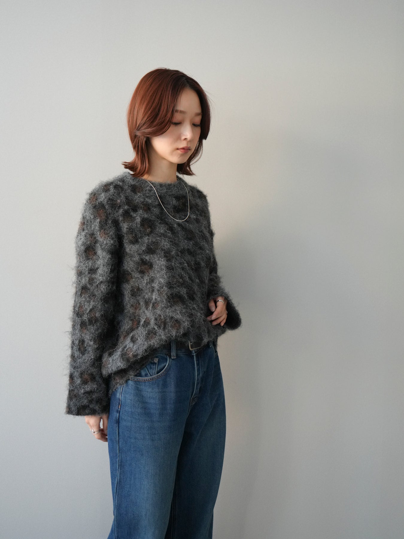 ふんわりとしたシャギー素材に、レオパード柄を落とし込んだ存在感のあるニットプルオーバー。 毛足のある表情豊かな編み地が、シーズンムードを高めながらコーディネートの主役として映えます。 程よくラフな雰囲気がありつつも、柄のバランスが取りやすく、取り入れるだけでスタイリングにこなれ感をプラス。 シンプルなボトムと合わせるだけで、洗練されたカジュアルスタイルが完成します。 デイリーコーデにアクセントを加えたいときにおすすめの一着です。