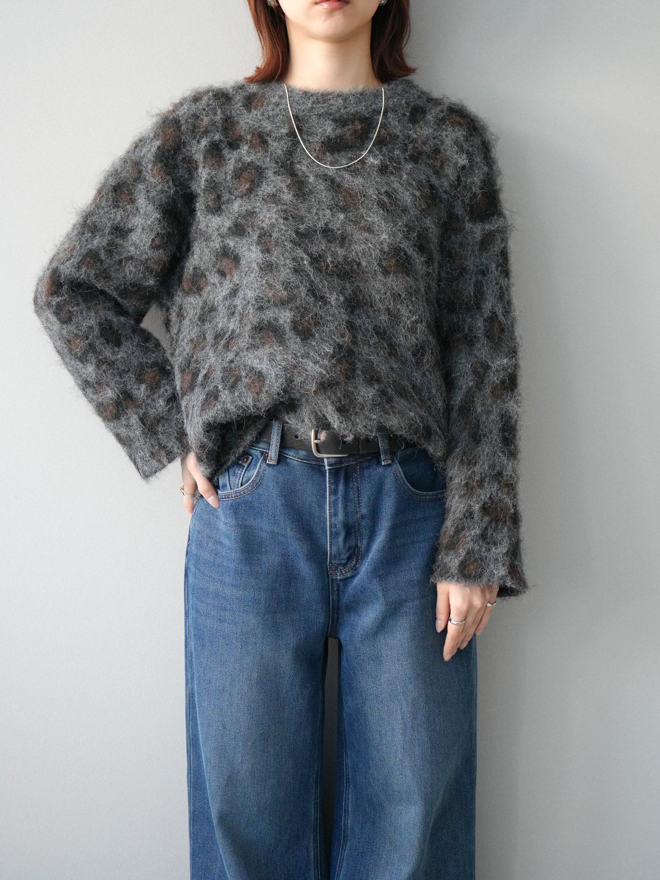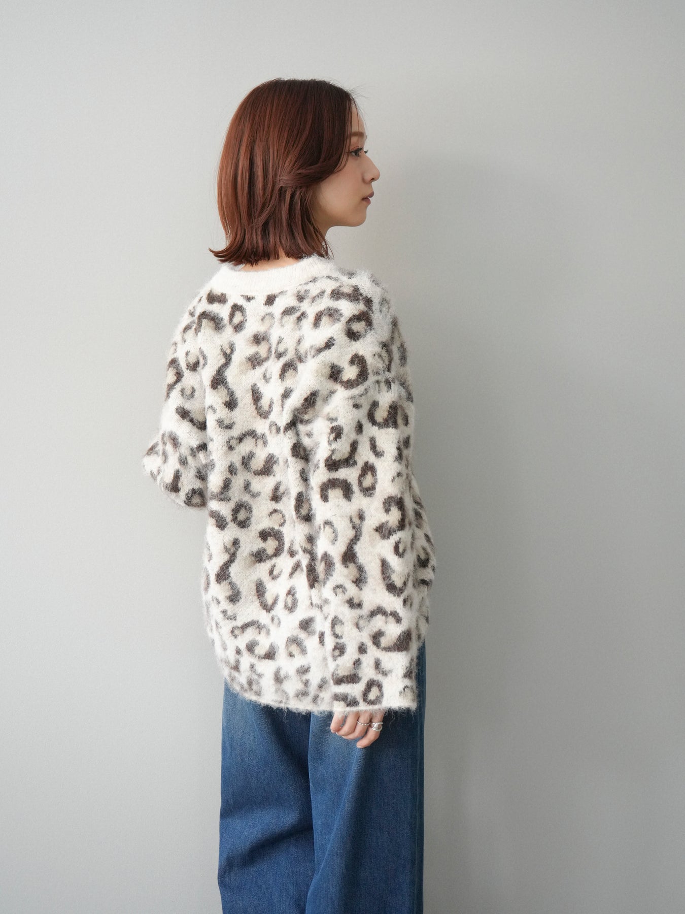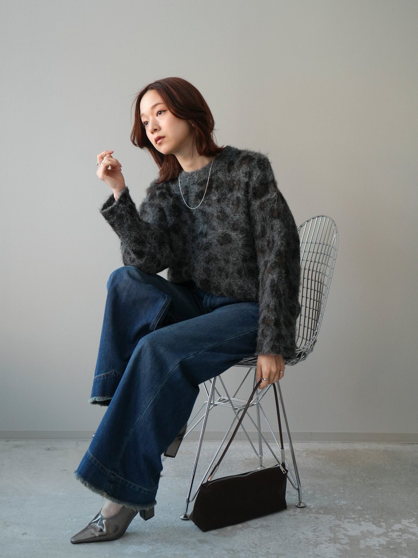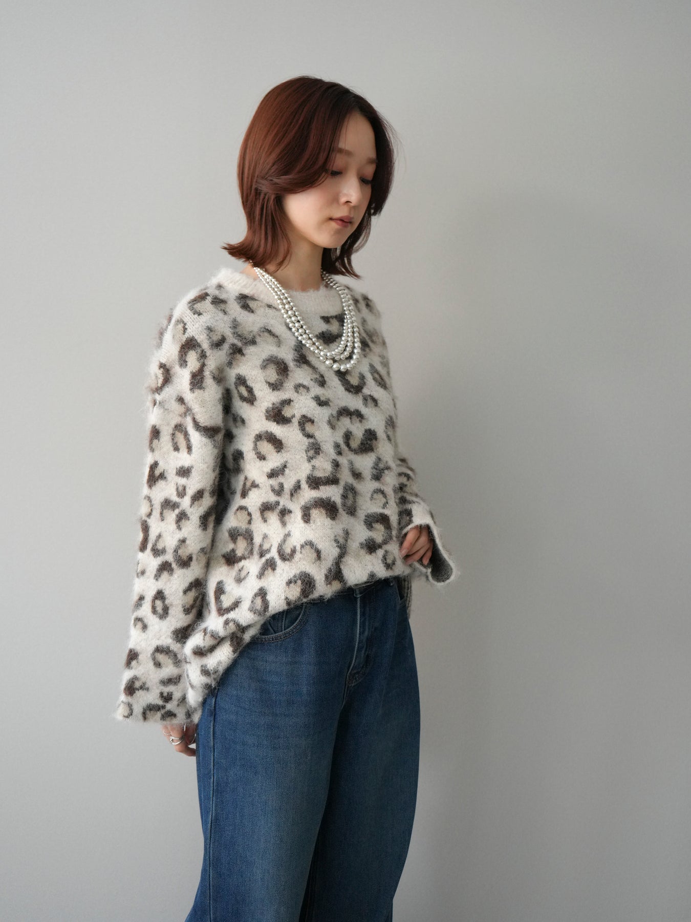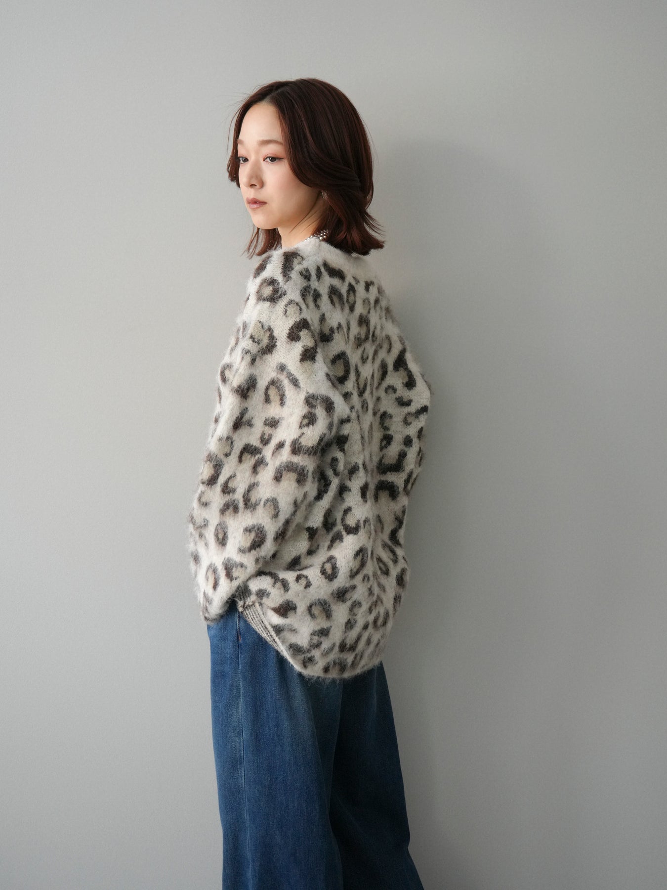 ふんわりとしたシャギー素材に、レオパード柄を落とし込んだ存在感のあるニットプルオーバー。 毛足のある表情豊かな編み地が、シーズンムードを高めながらコーディネートの主役として映えます。 程よくラフな雰囲気がありつつも、柄のバランスが取りやすく、取り入れるだけでスタイリングにこなれ感をプラス。 シンプルなボトムと合わせるだけで、洗練されたカジュアルスタイルが完成します。 デイリーコーデにアクセントを加えたいときにおすすめの一着です。