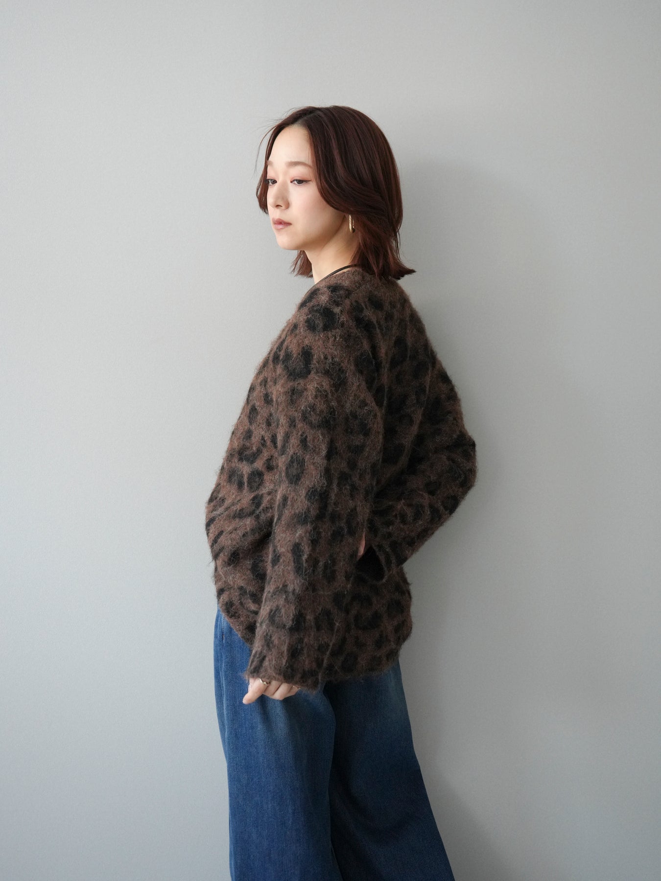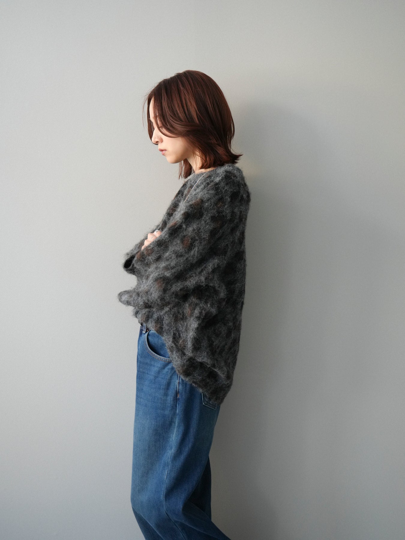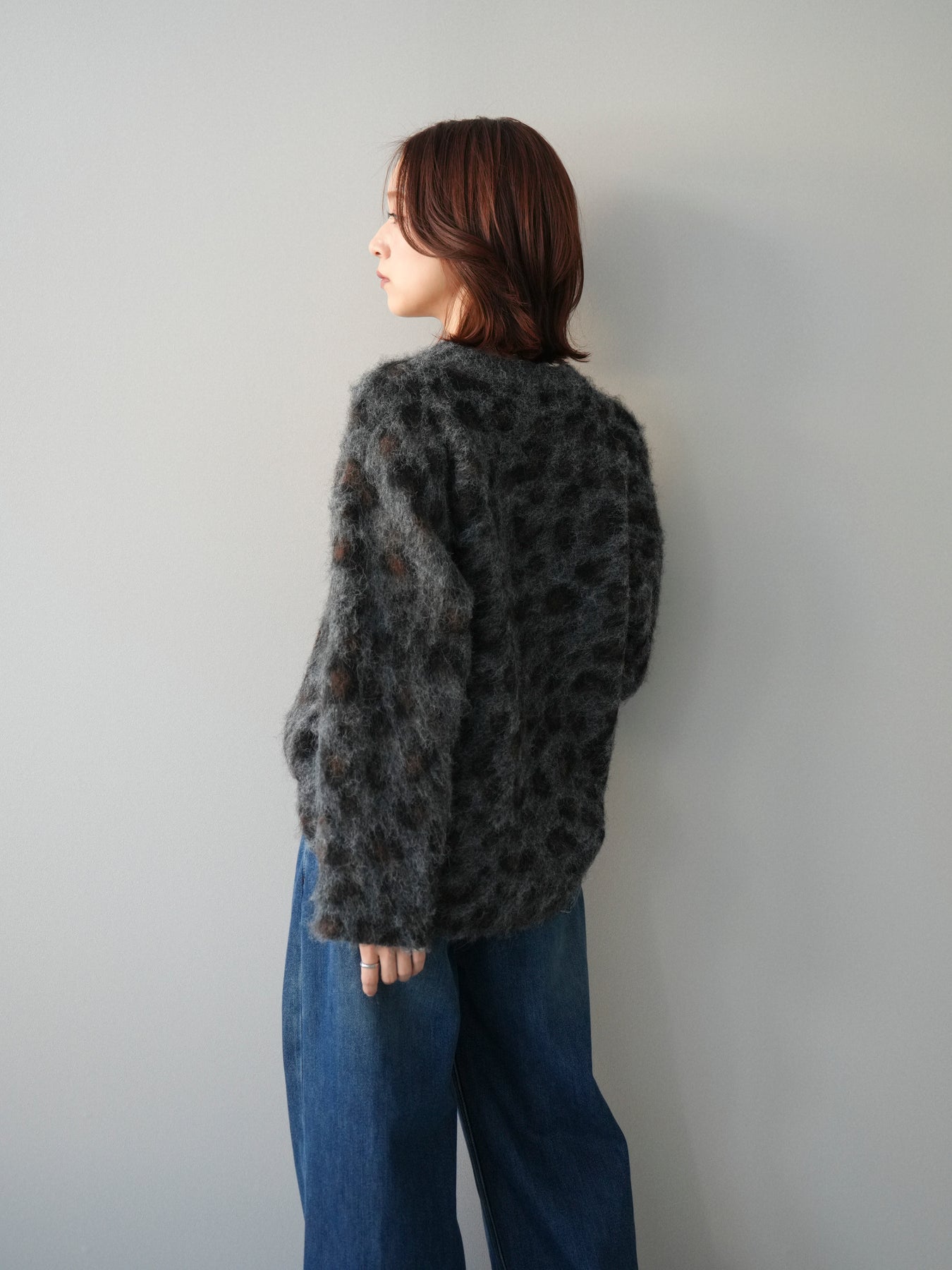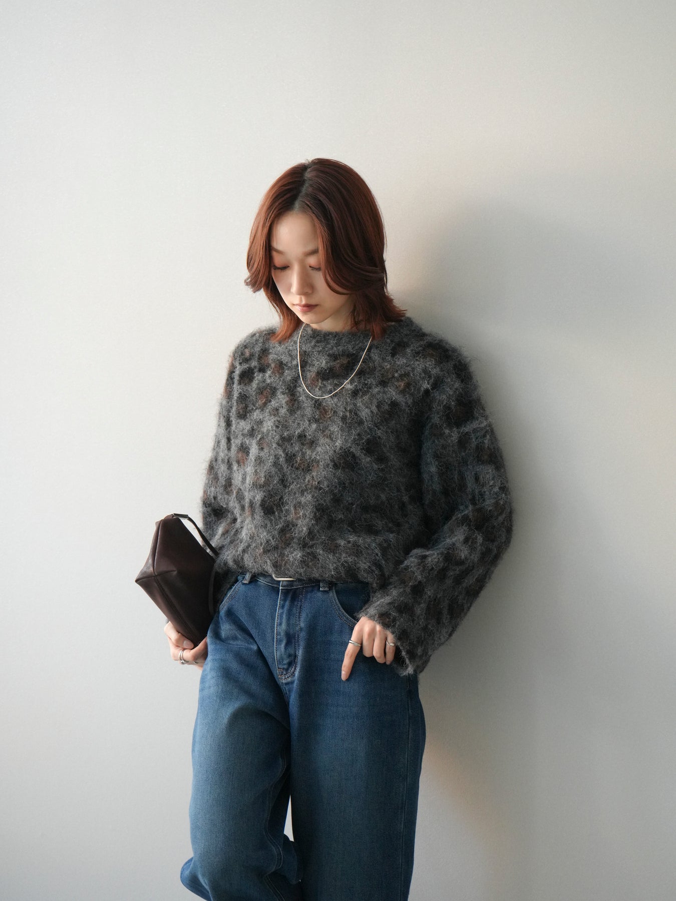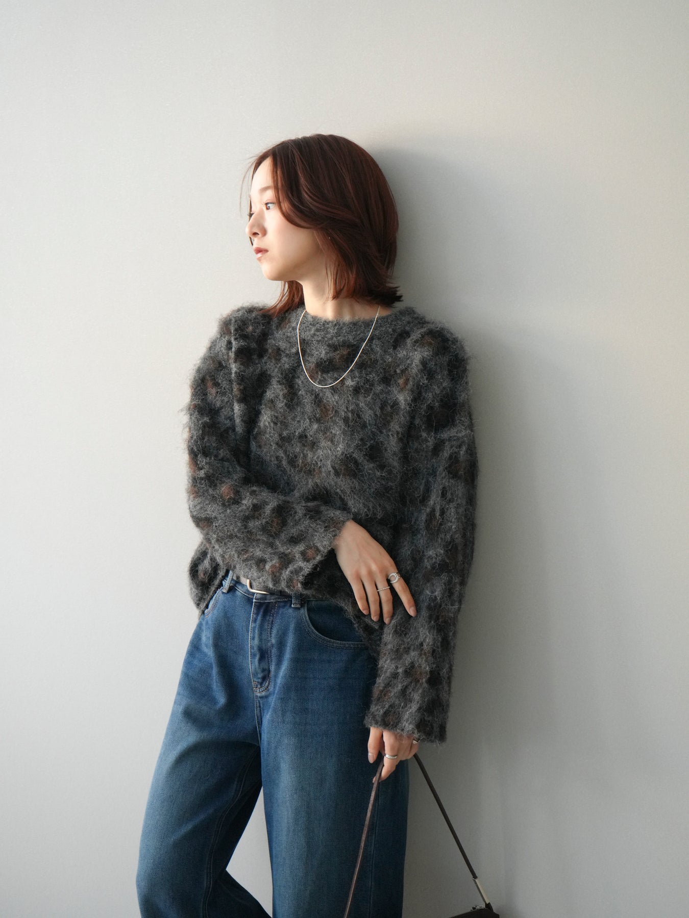 ふんわりとしたシャギー素材に、レオパード柄を落とし込んだ存在感のあるニットプルオーバー。 毛足のある表情豊かな編み地が、シーズンムードを高めながらコーディネートの主役として映えます。 程よくラフな雰囲気がありつつも、柄のバランスが取りやすく、取り入れるだけでスタイリングにこなれ感をプラス。 シンプルなボトムと合わせるだけで、洗練されたカジュアルスタイルが完成します。 デイリーコーデにアクセントを加えたいときにおすすめの一着です。
