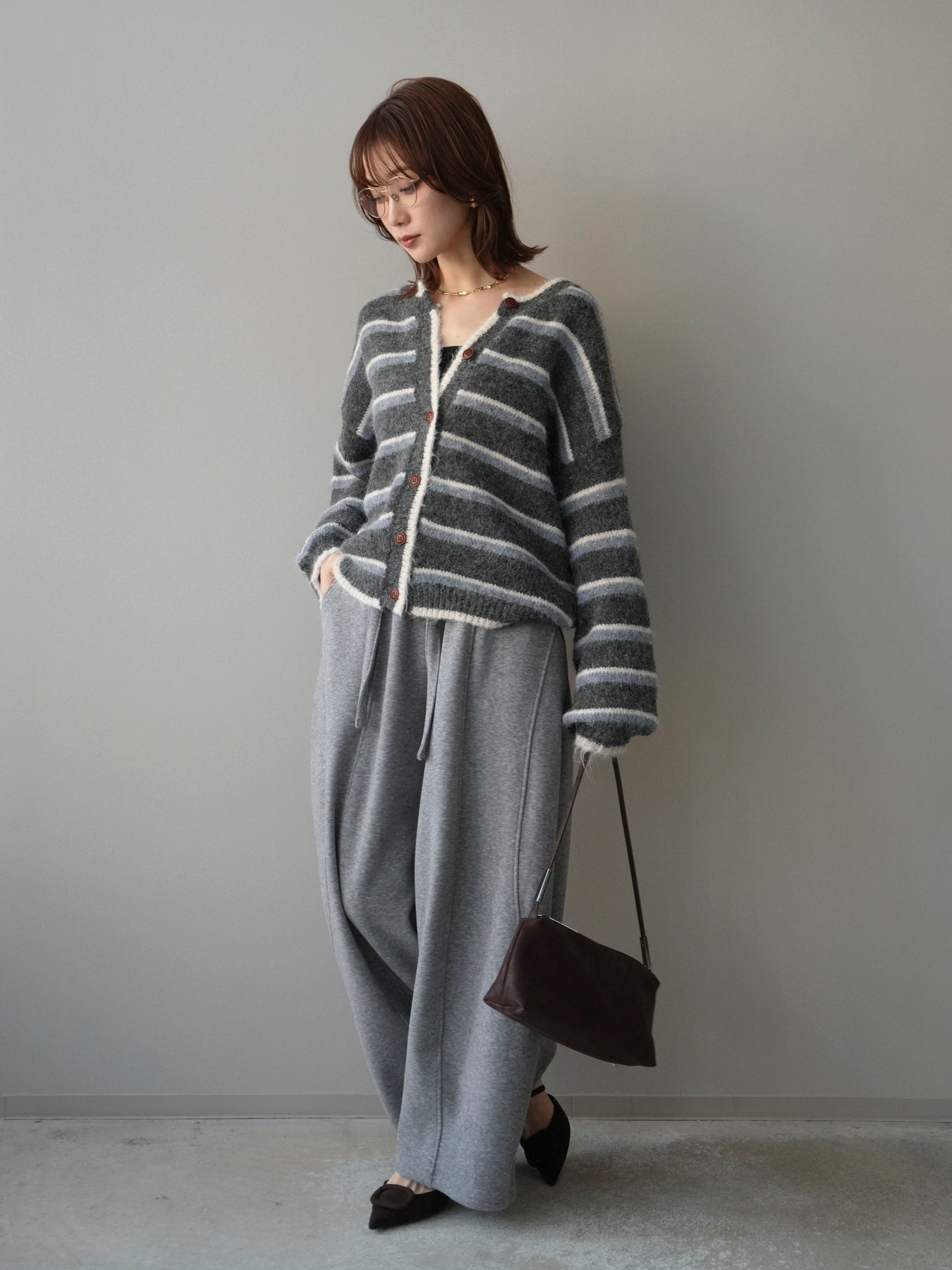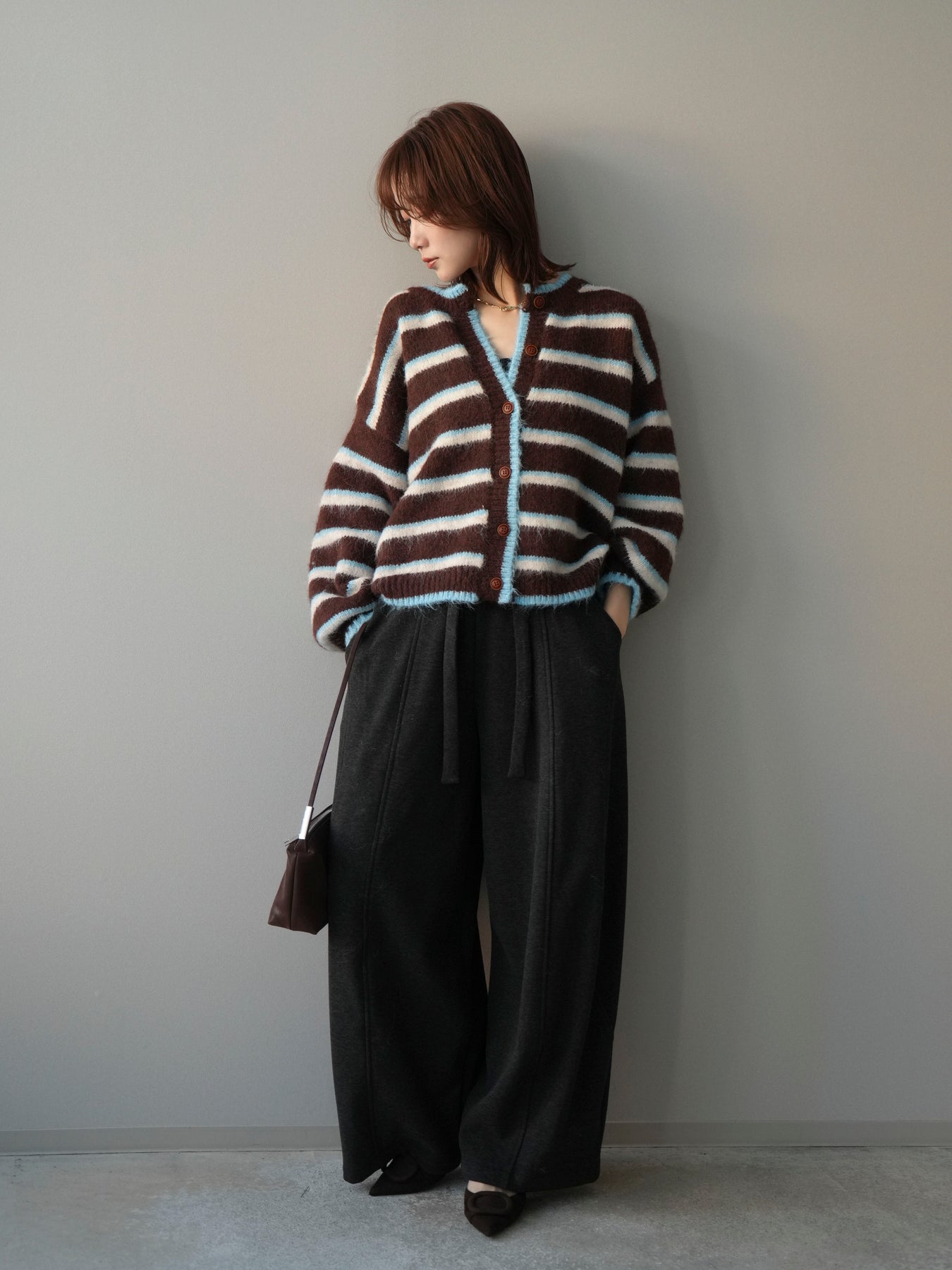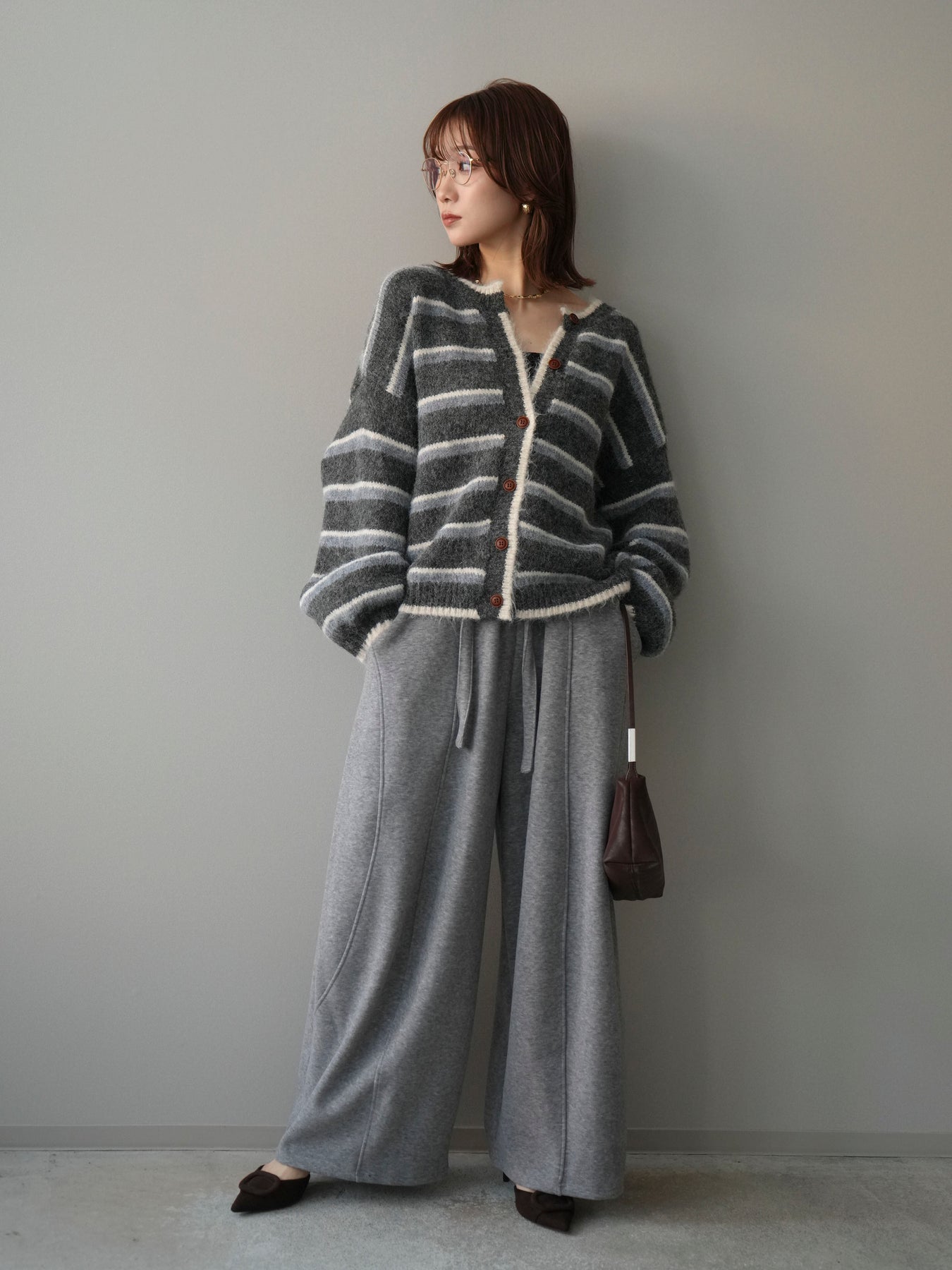 [SET]ウールタッチ配色ボーダーニットカーディガン+ウエストベルトカーブラインスエットパンツ(2set)