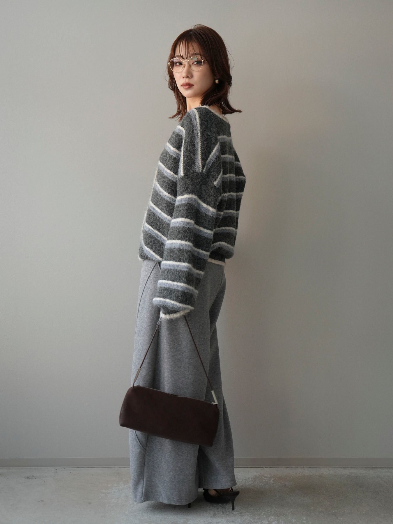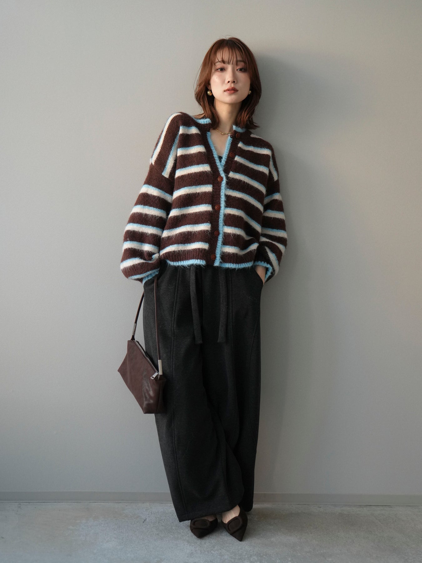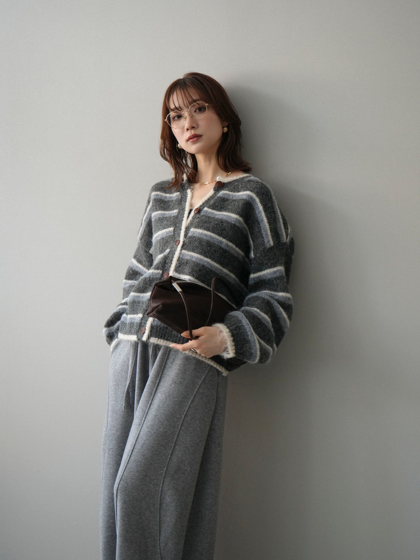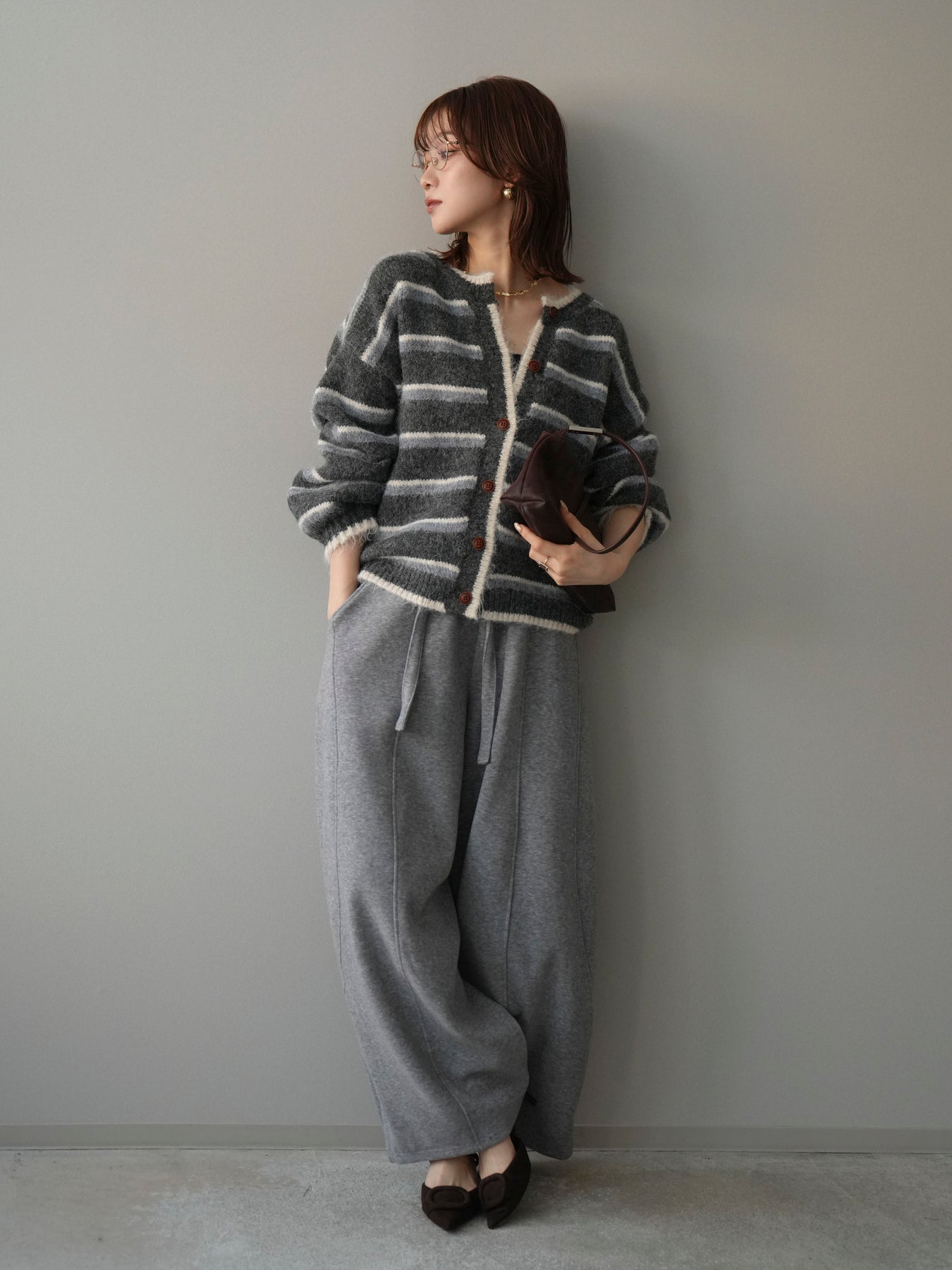 [SET]ウールタッチ配色ボーダーニットカーディガン+ウエストベルトカーブラインスエットパンツ(2set)
