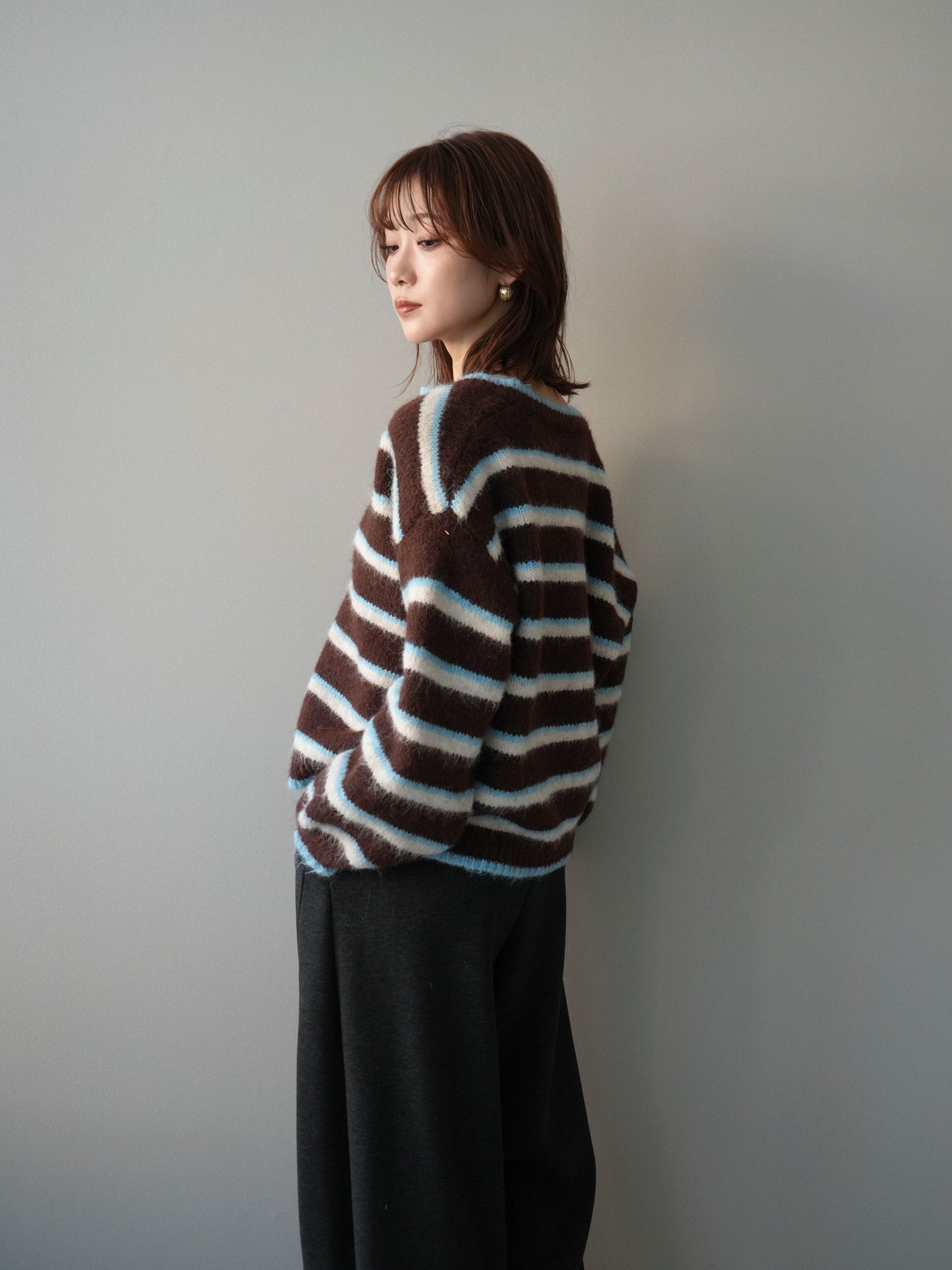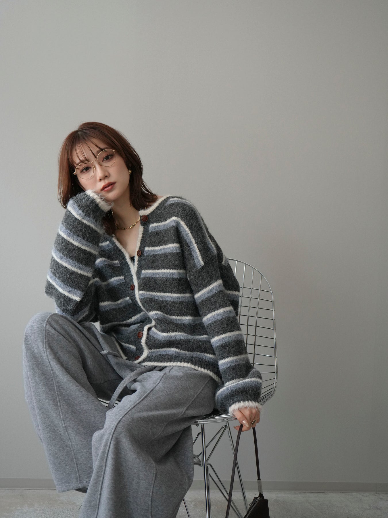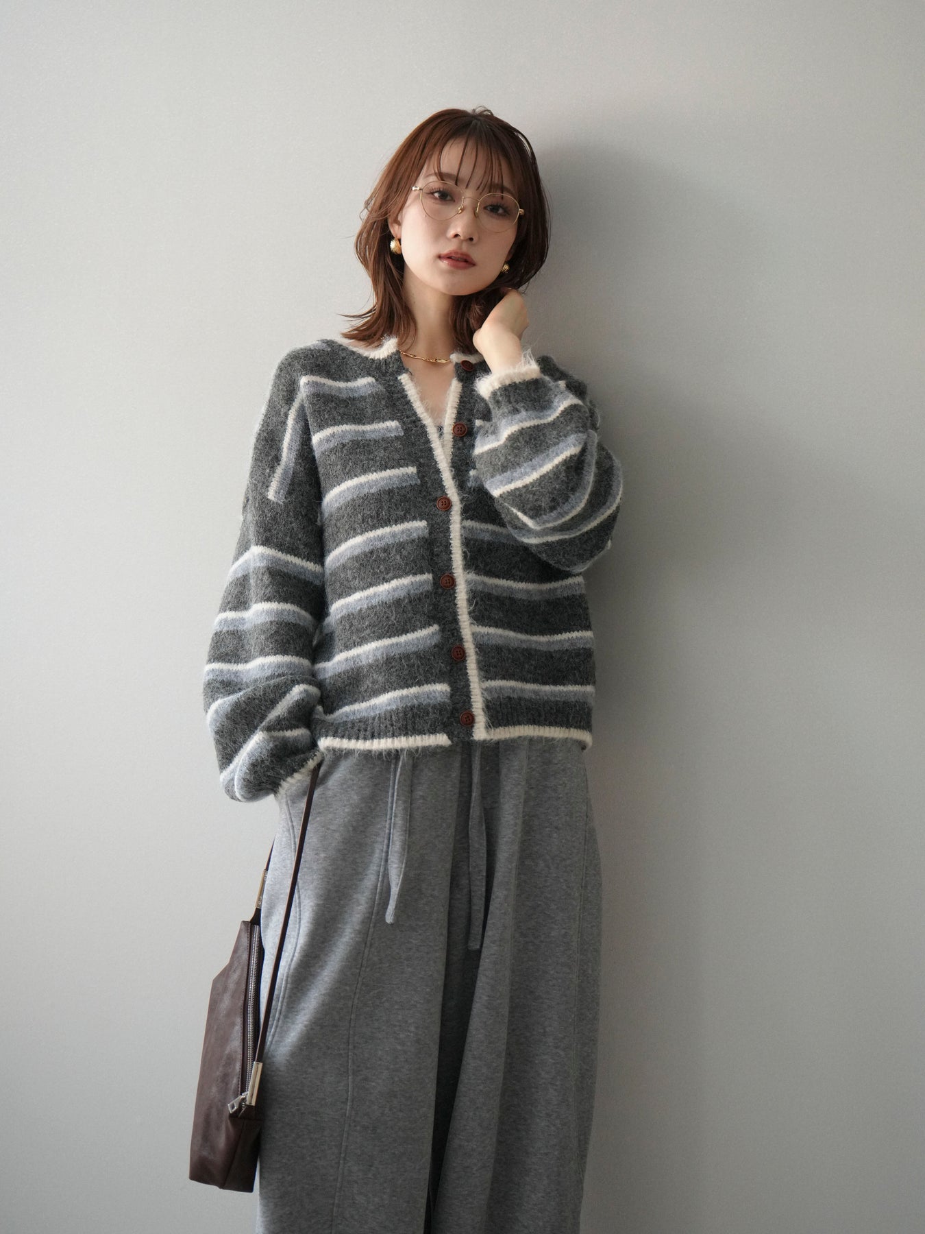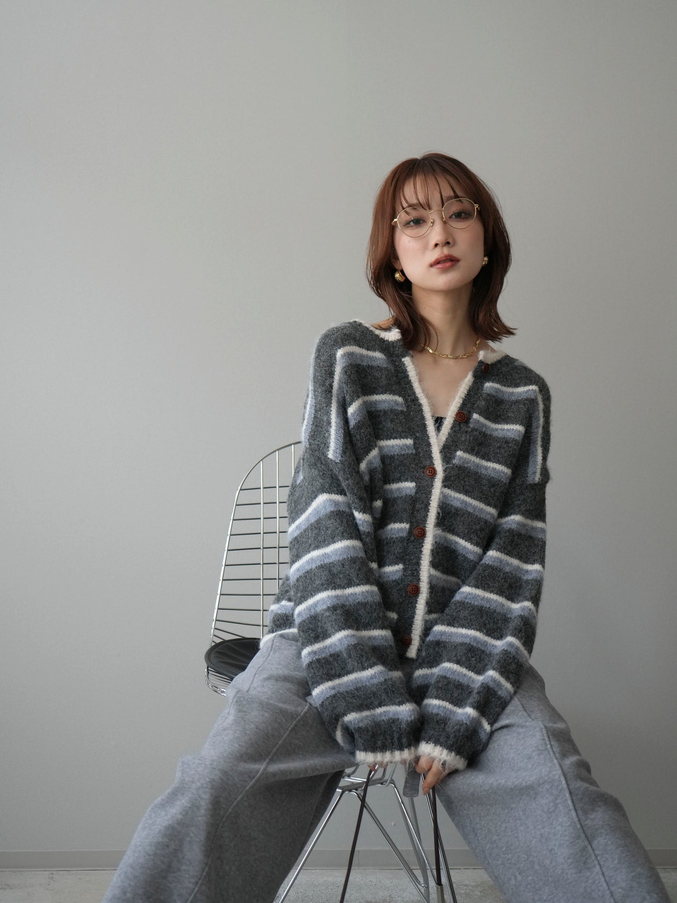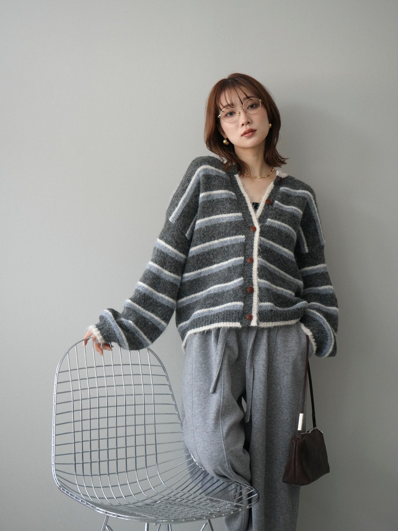 [予約]ウールタッチ配色ボーダーニットカーディガン