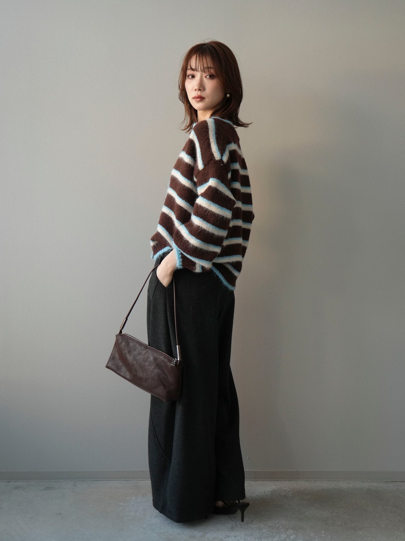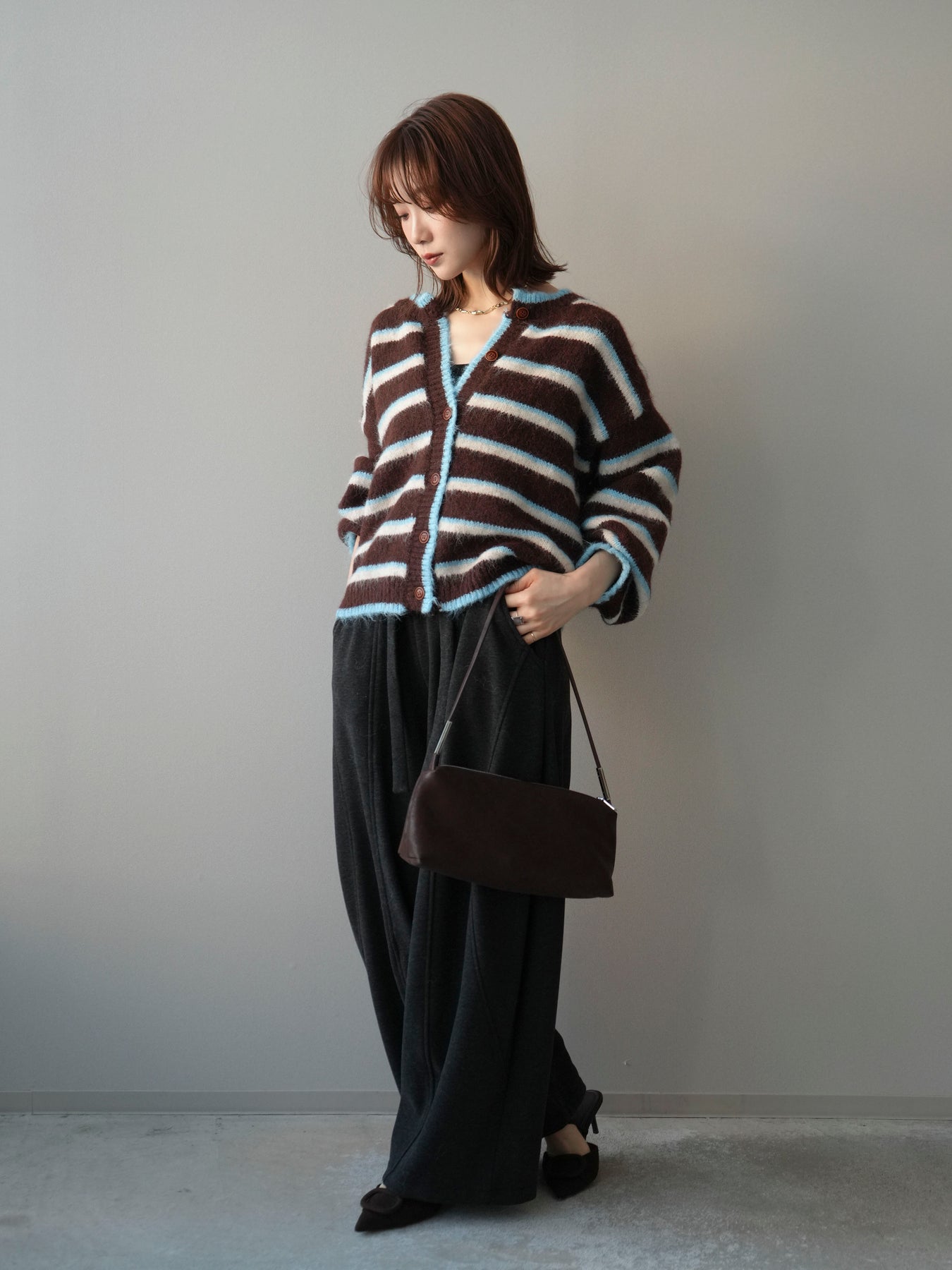 ◆ [予約]ウールタッチ配色ボーダーニットカーディガン