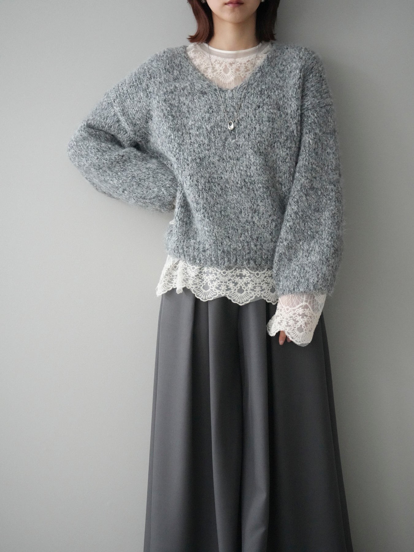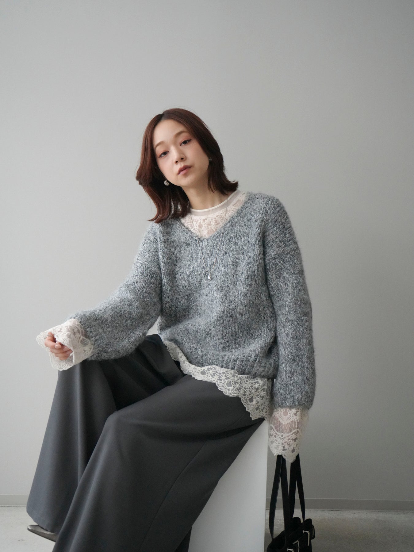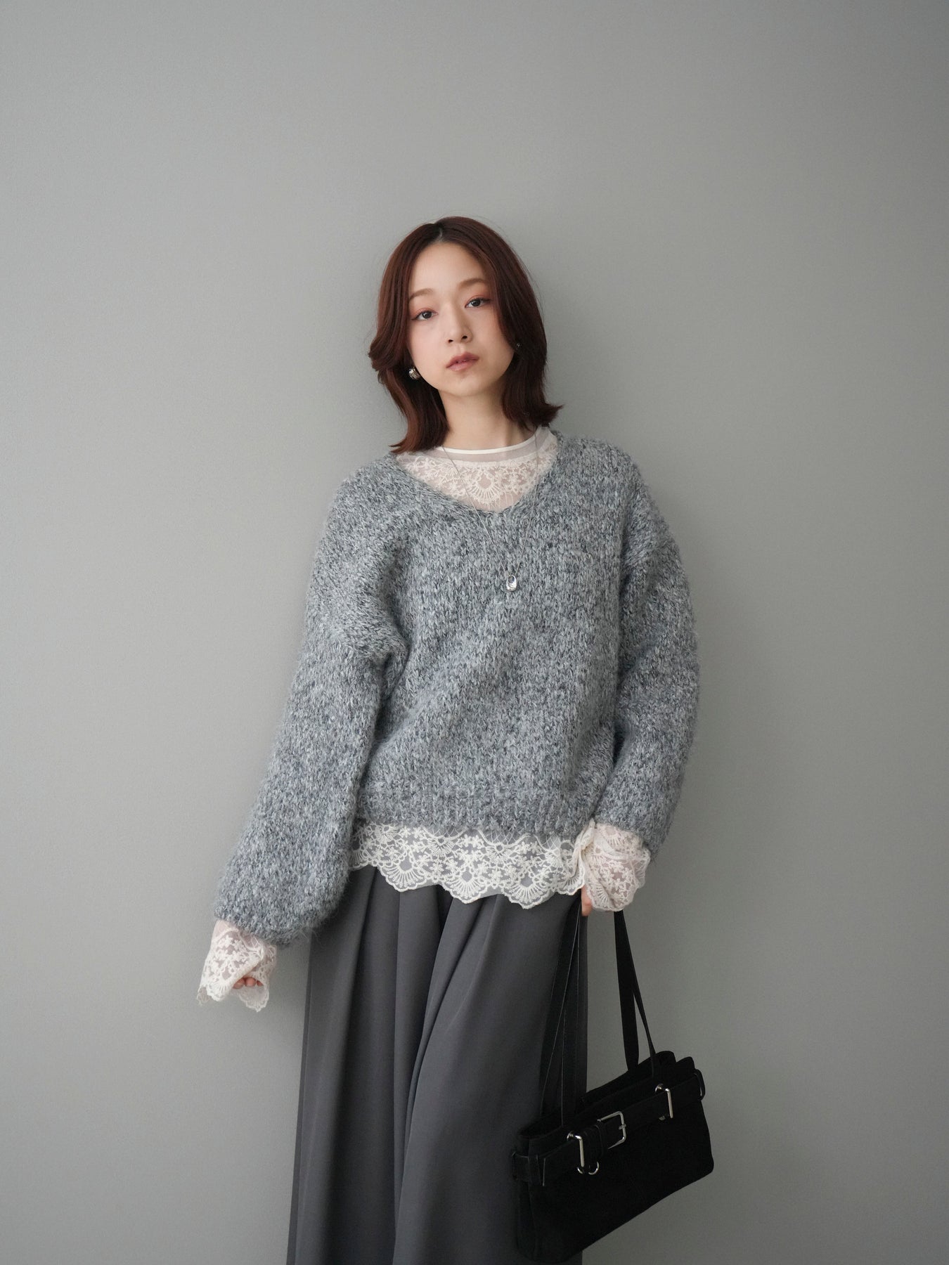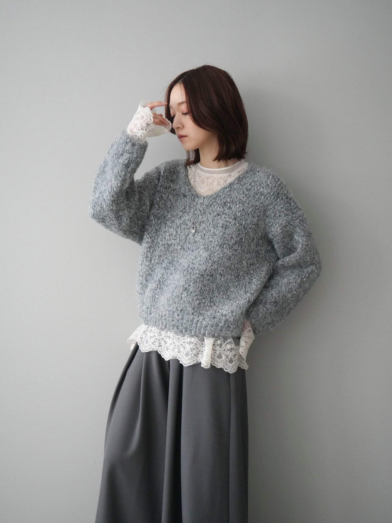 ◆ [予約]Vネックミックスヤーンニットプルオーバー