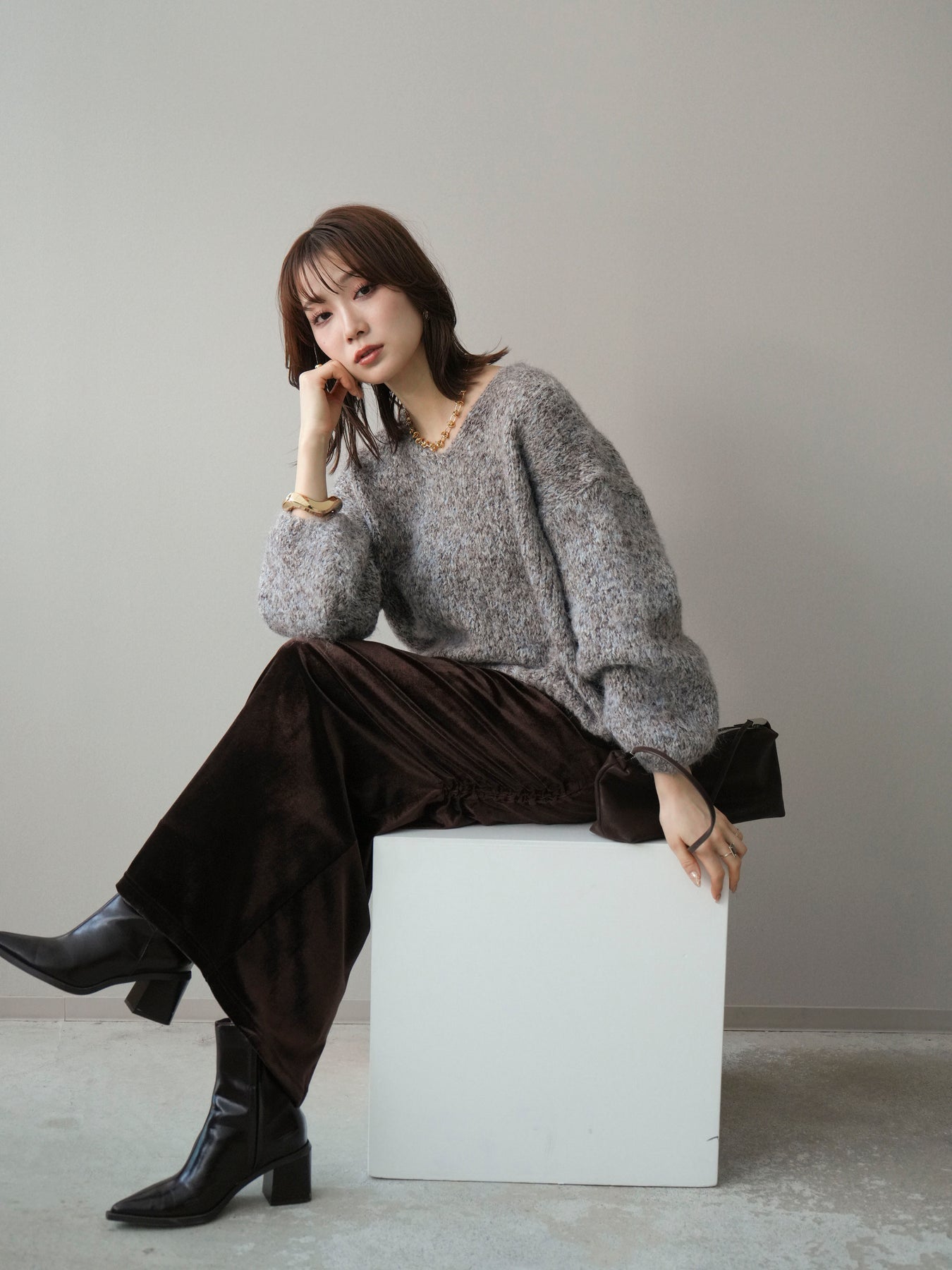 ◆ [予約]Vネックミックスヤーンニットプルオーバー