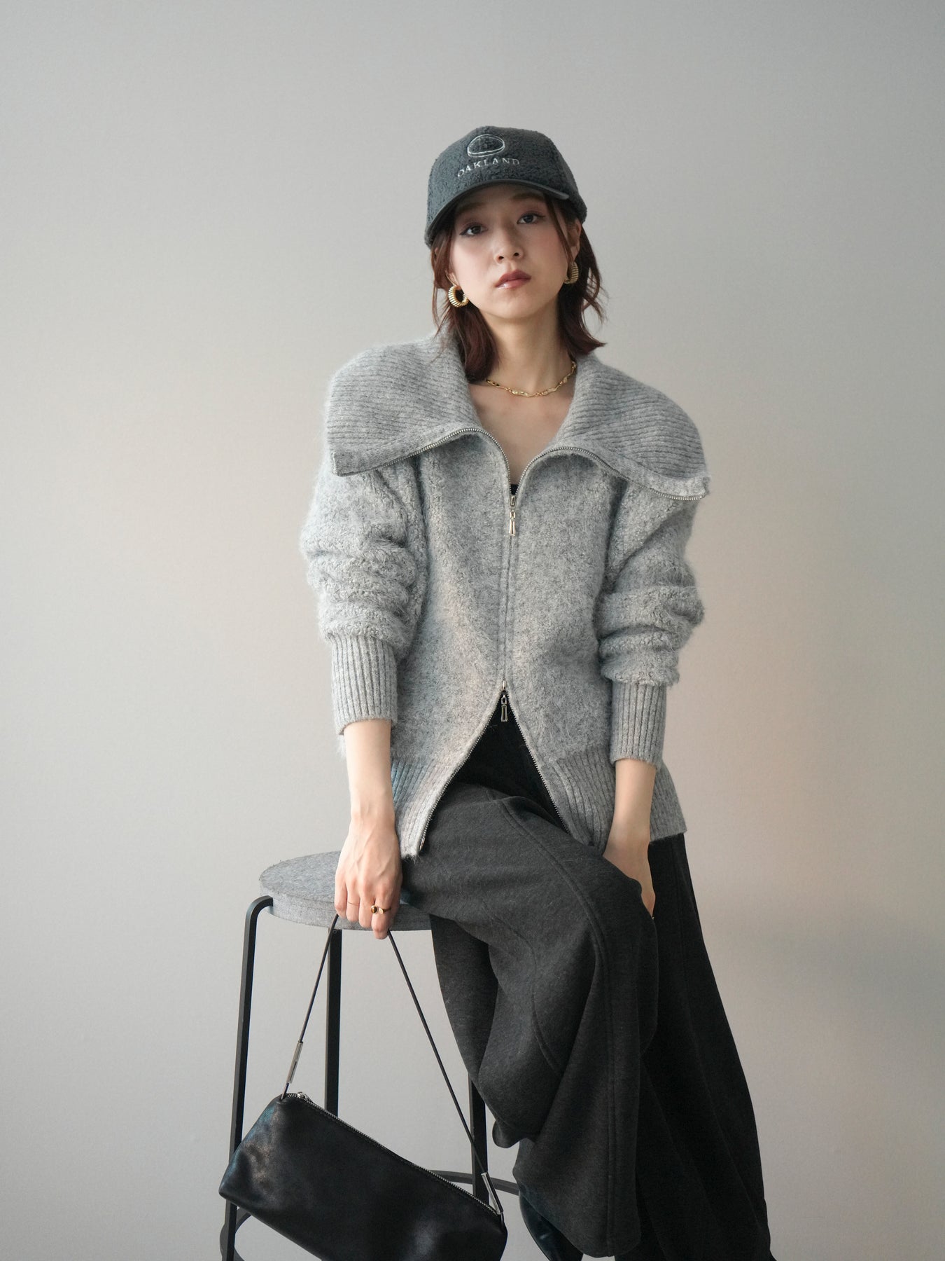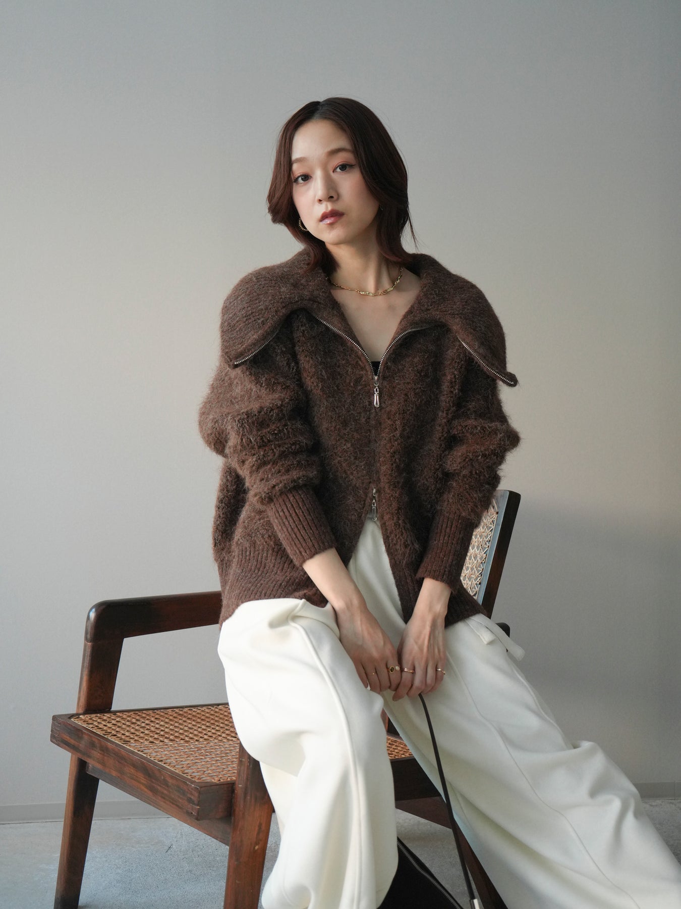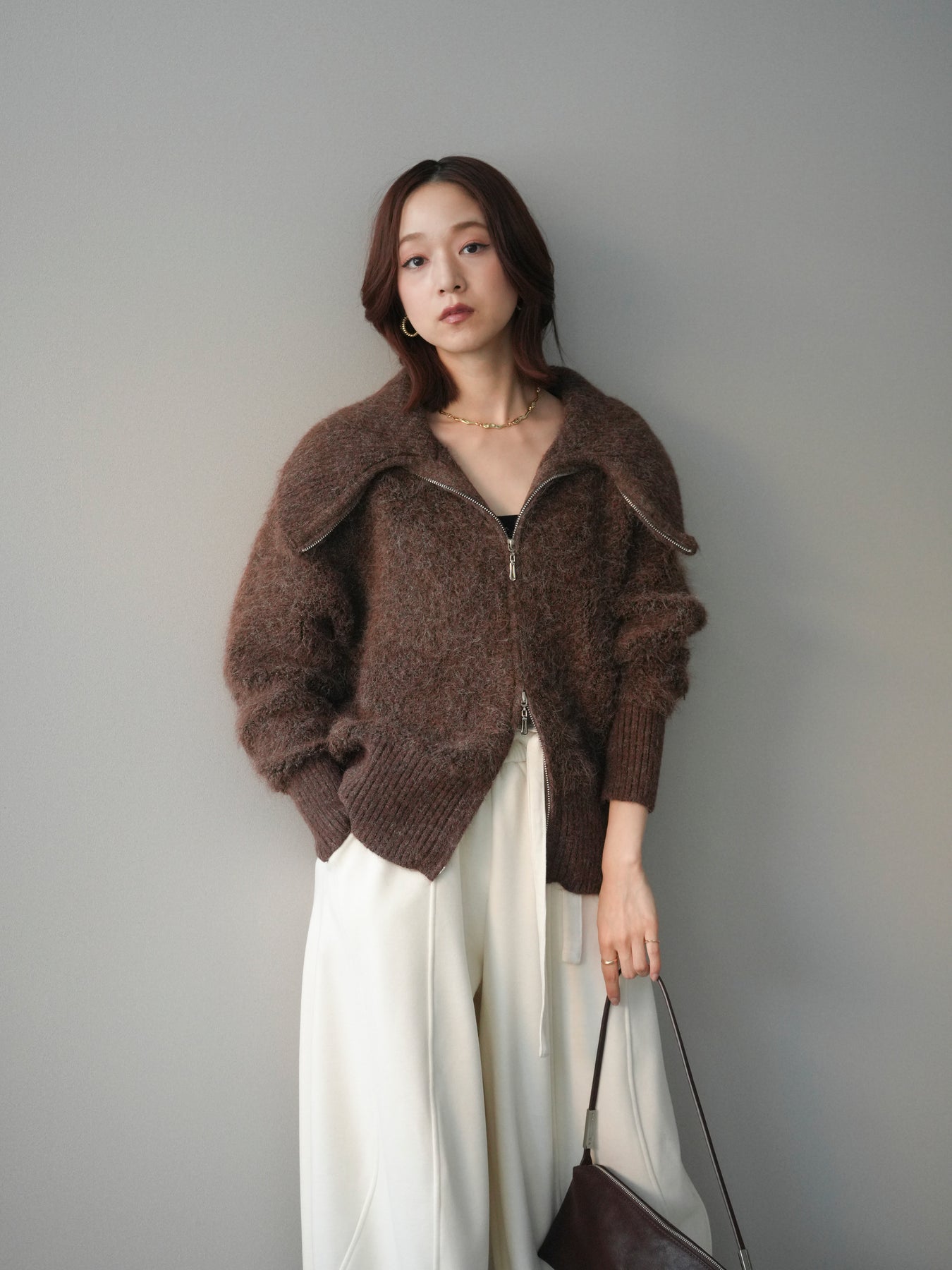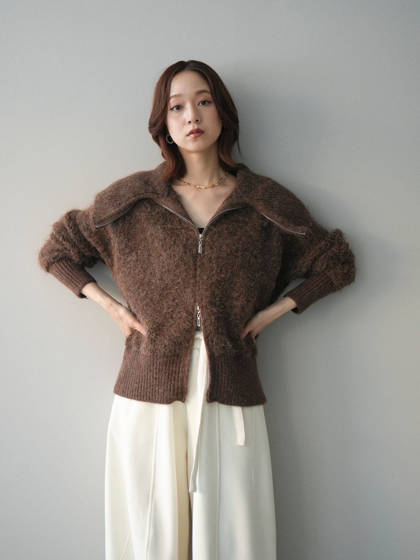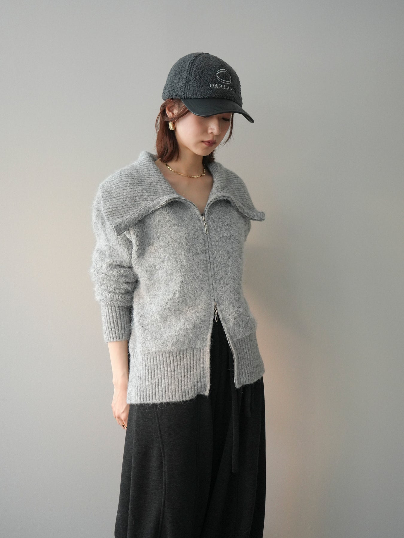 ◆ [予約]リブ襟ブークレZIPニットカーディガン