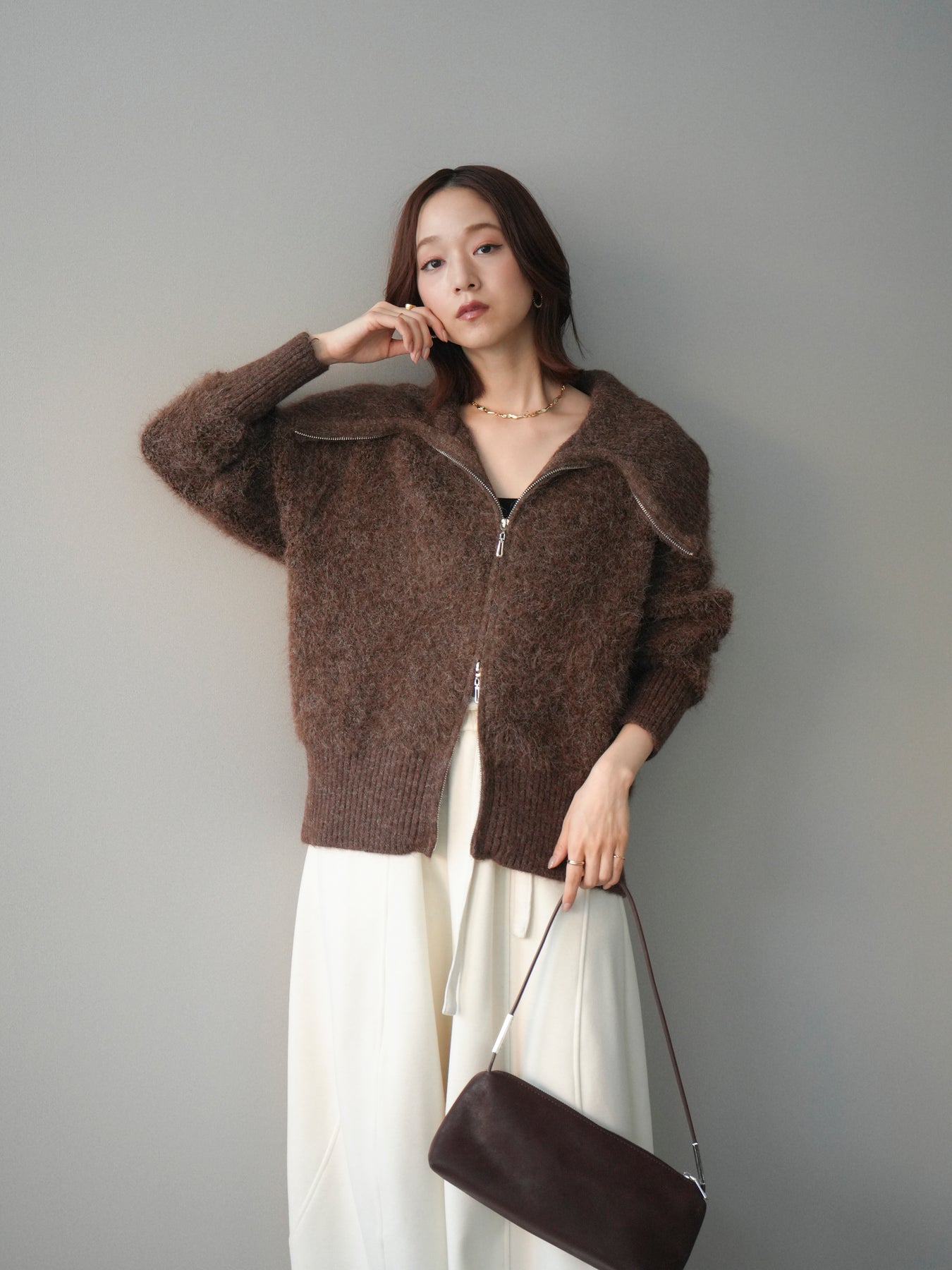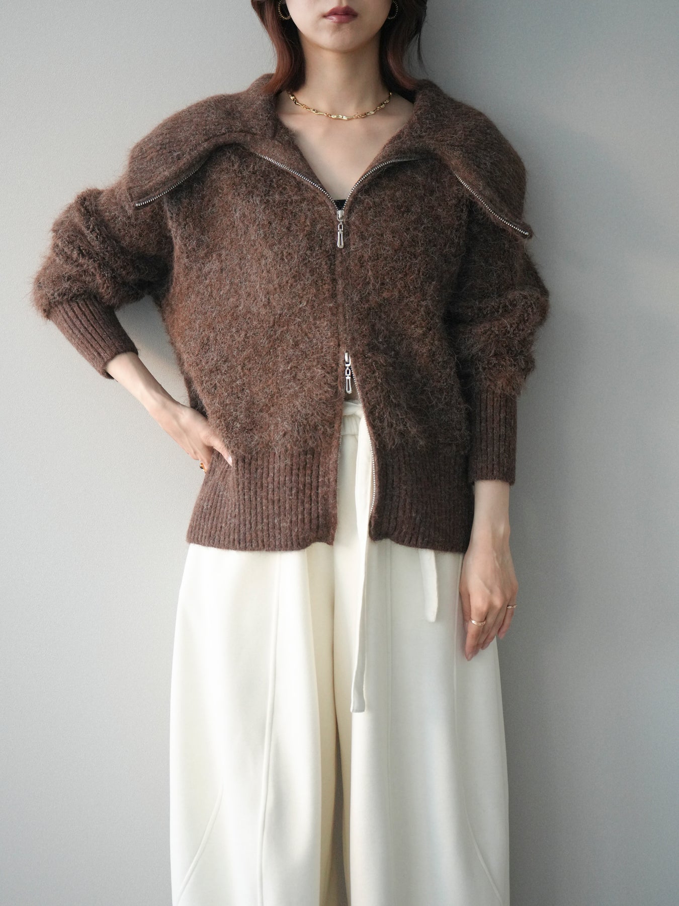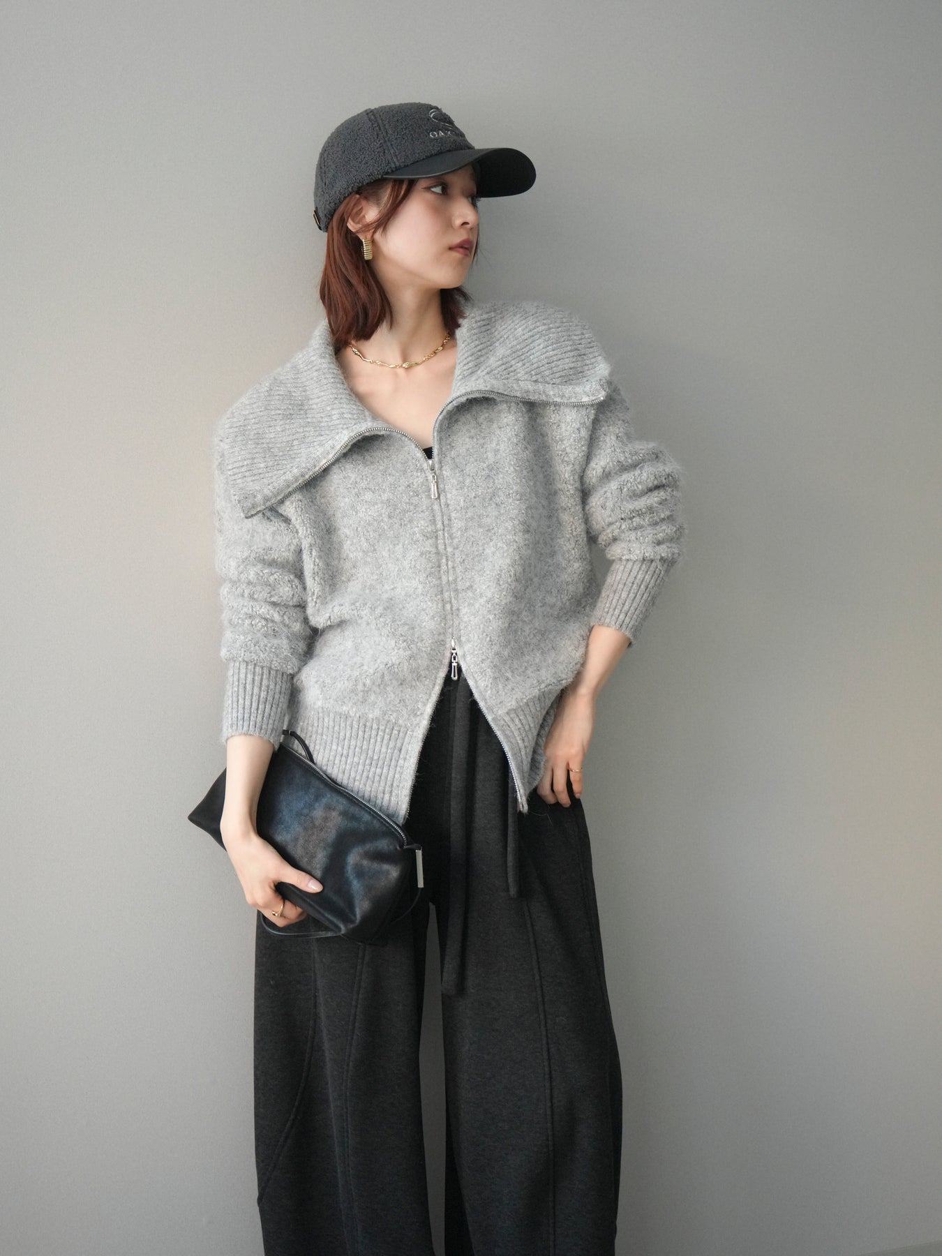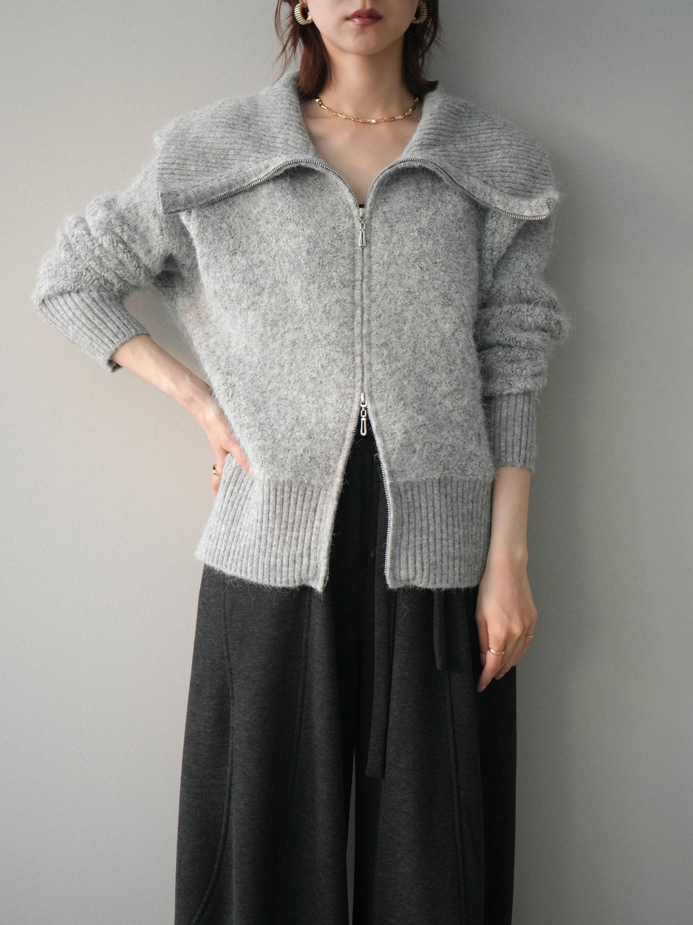 ◆ [予約]リブ襟ブークレZIPニットカーディガン
