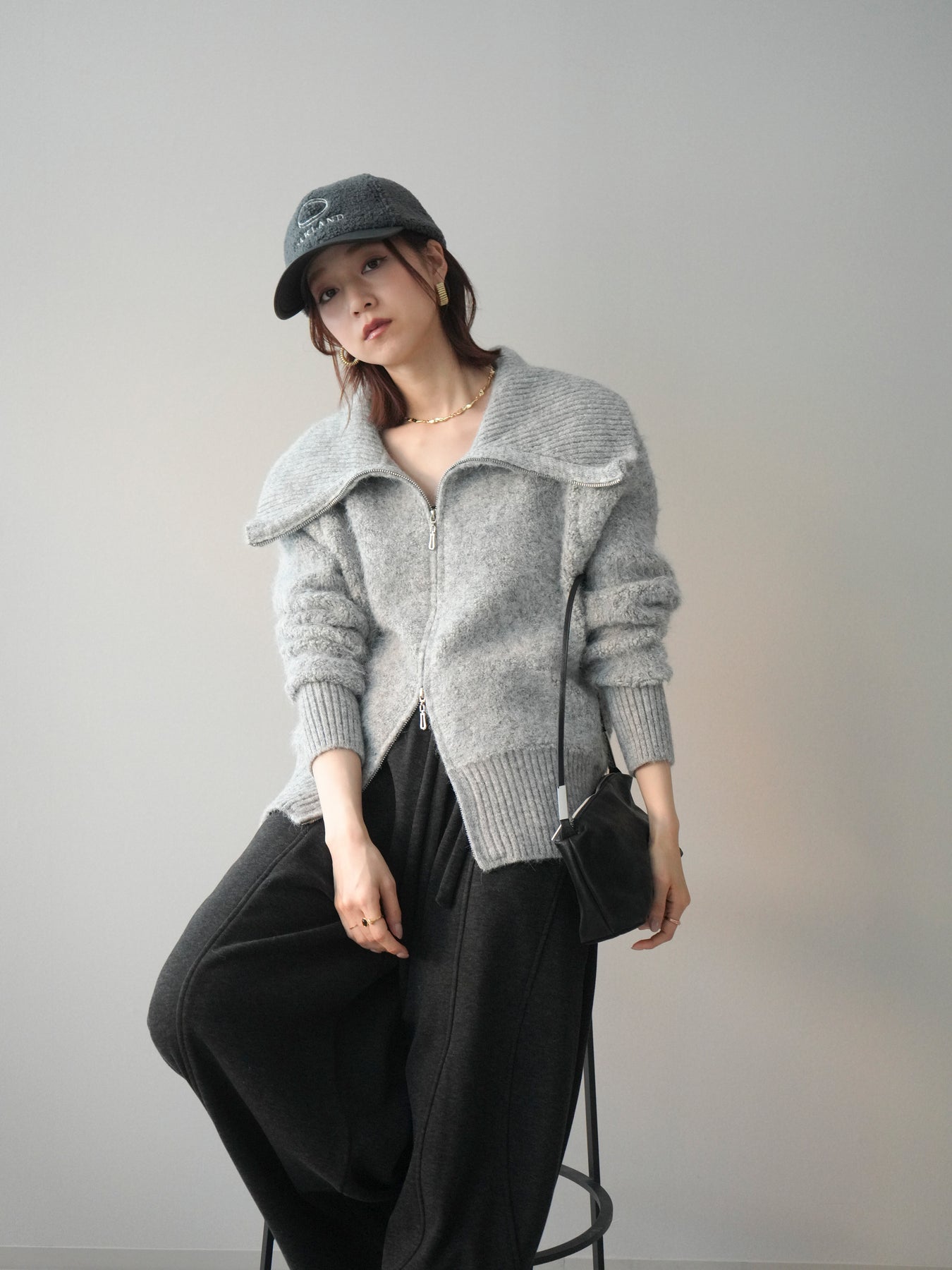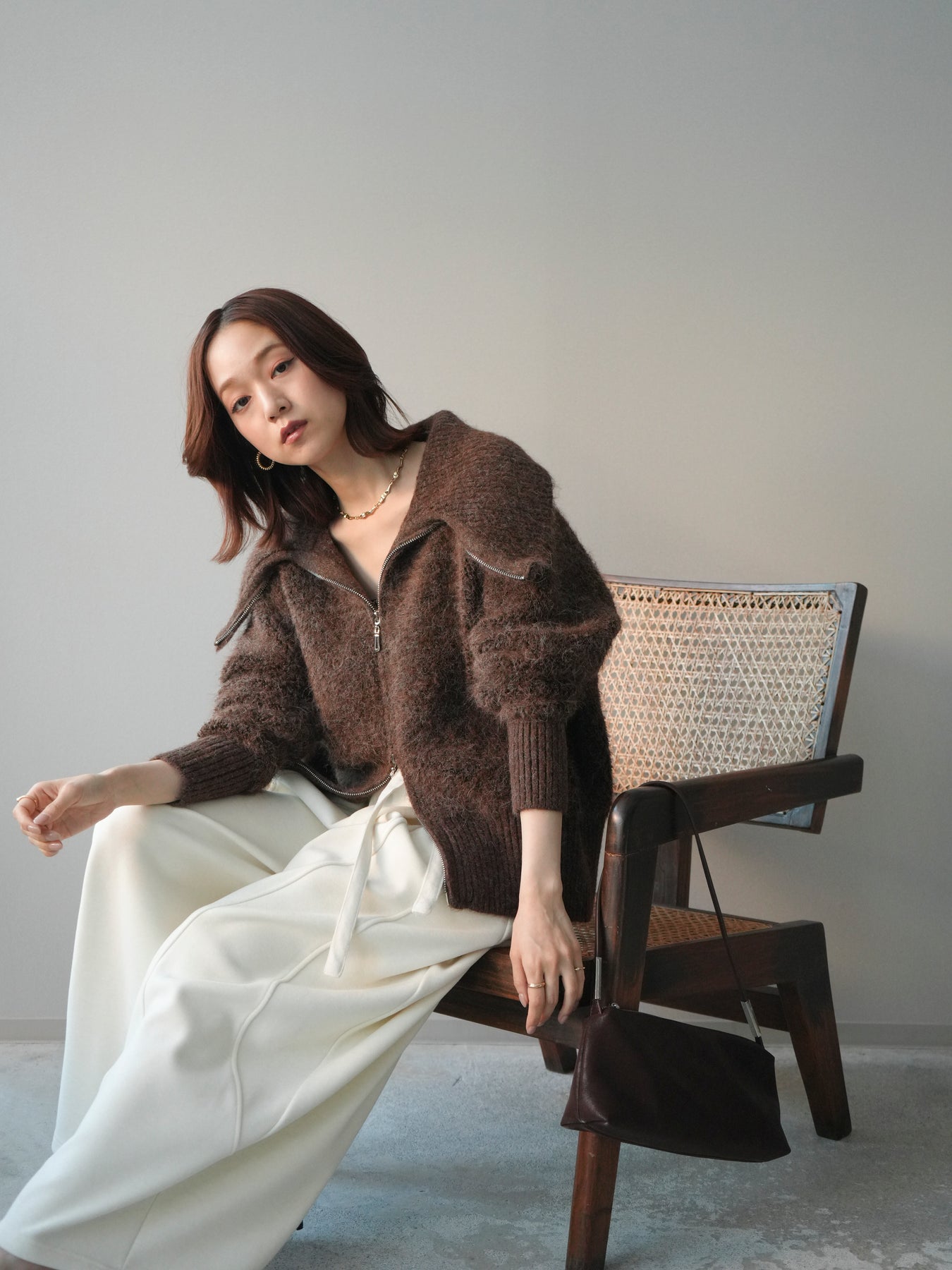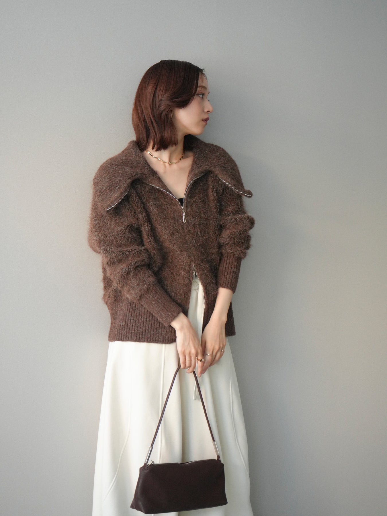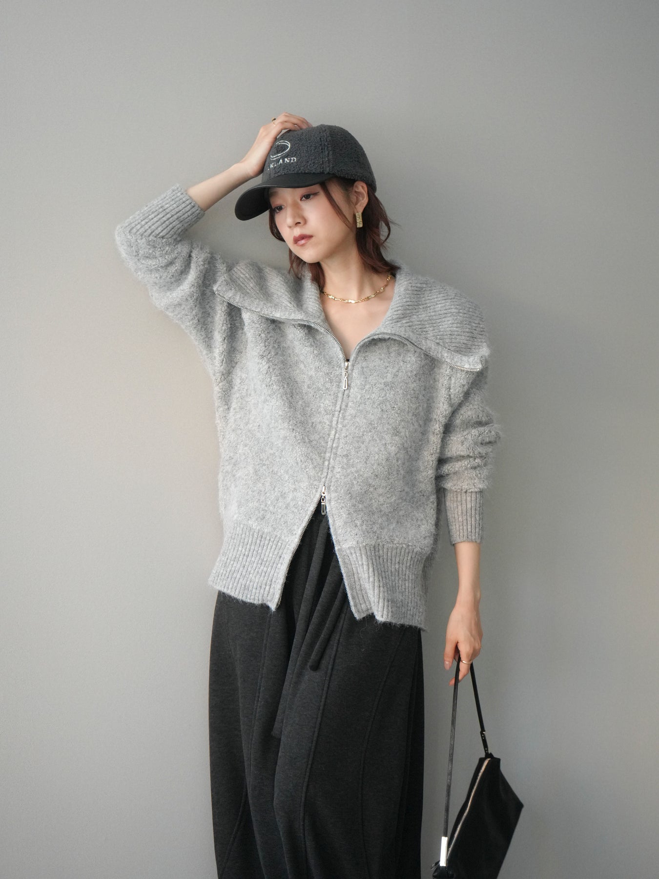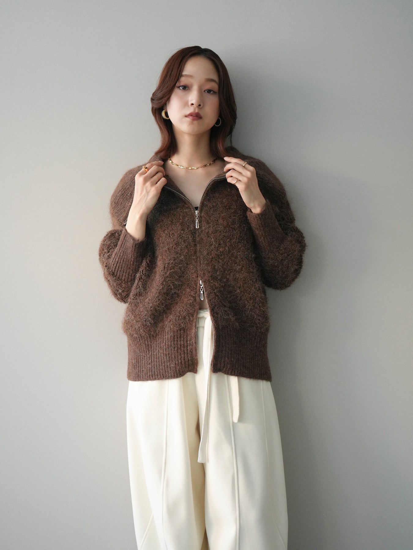 ◆ [予約]リブ襟ブークレZIPニットカーディガン