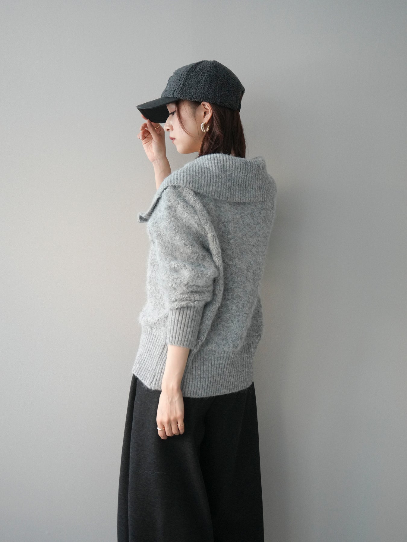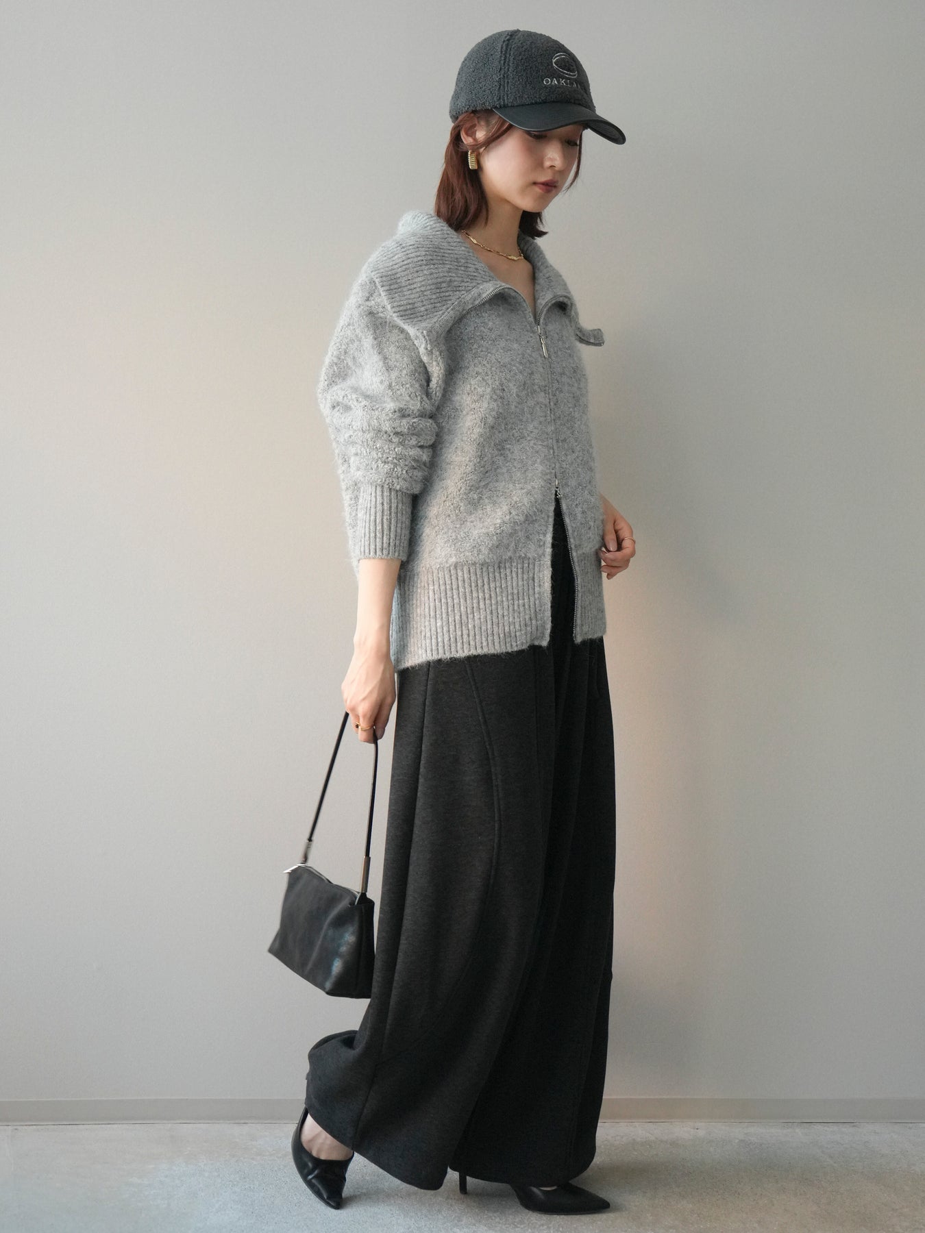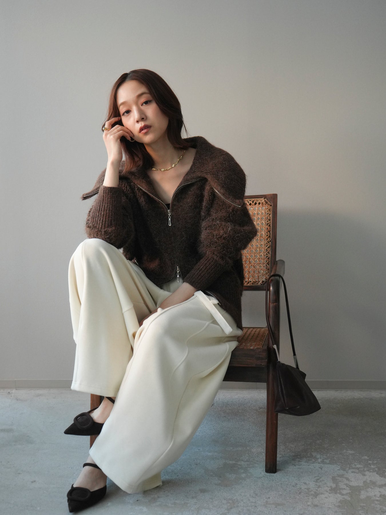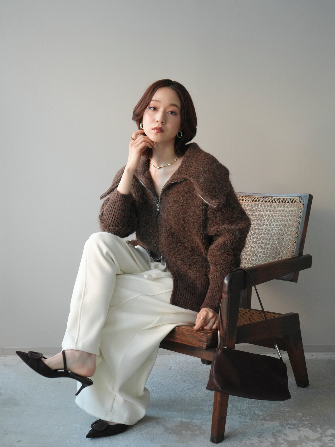 ◆ [予約]リブ襟ブークレZIPニットカーディガン