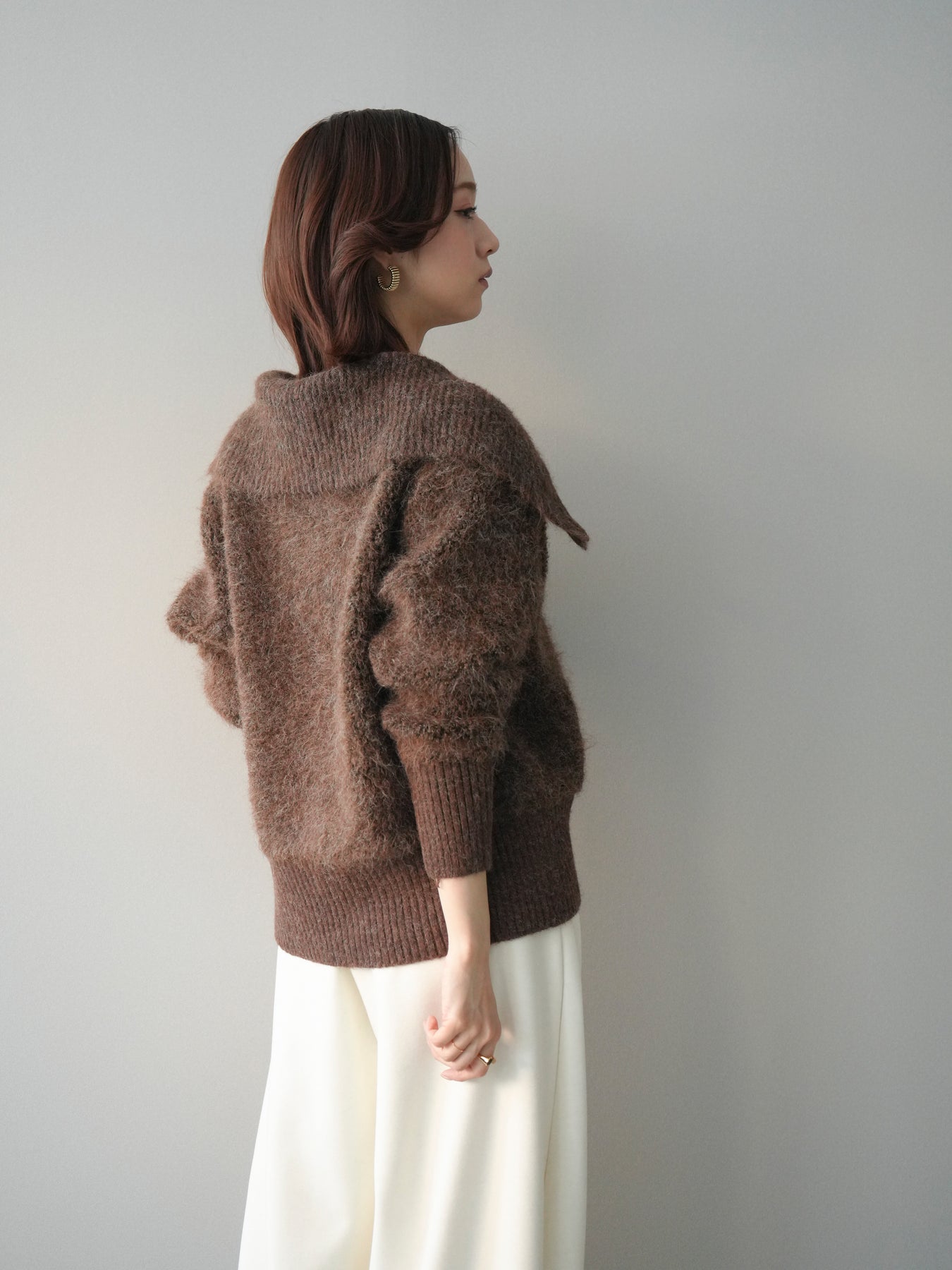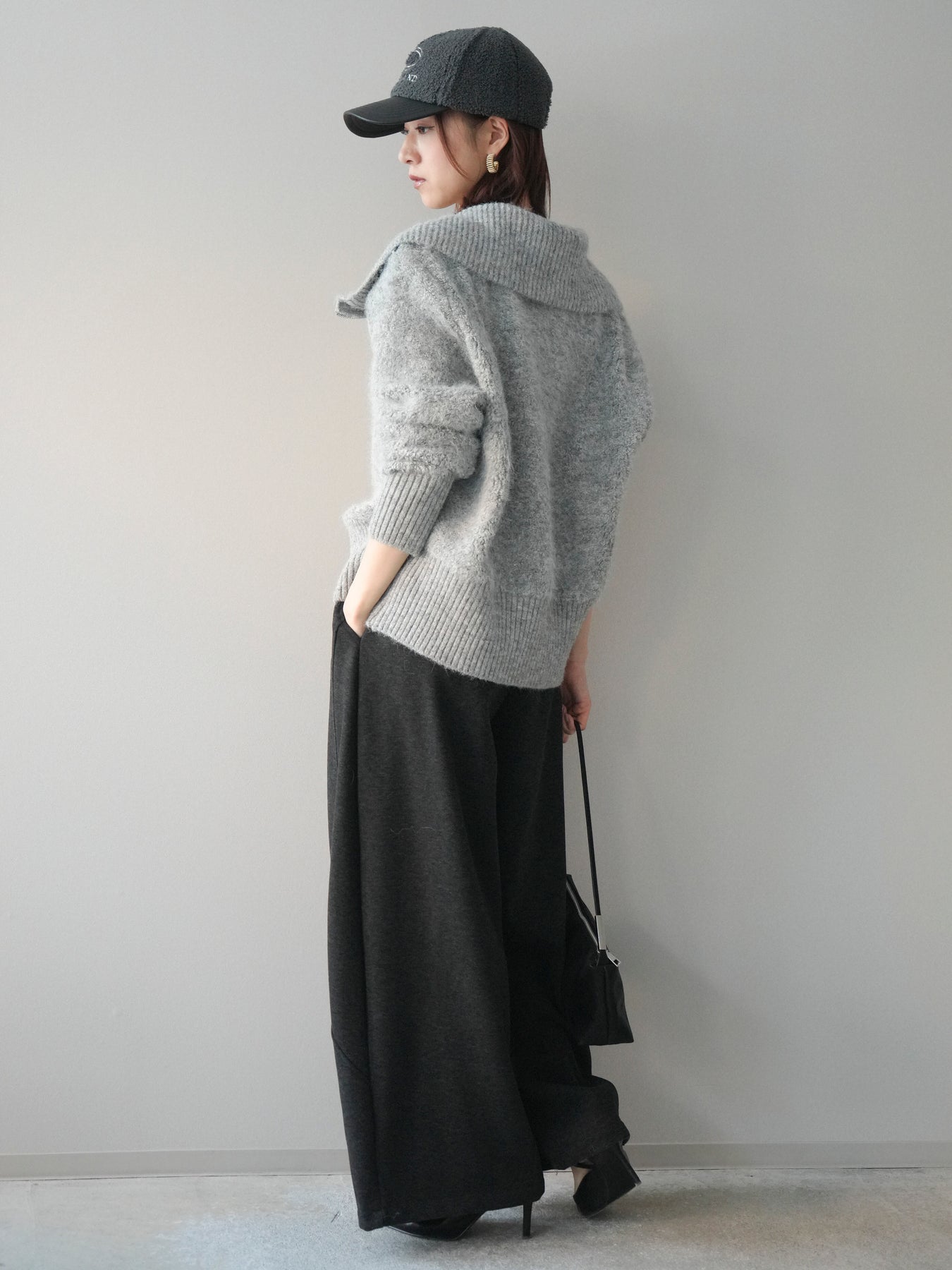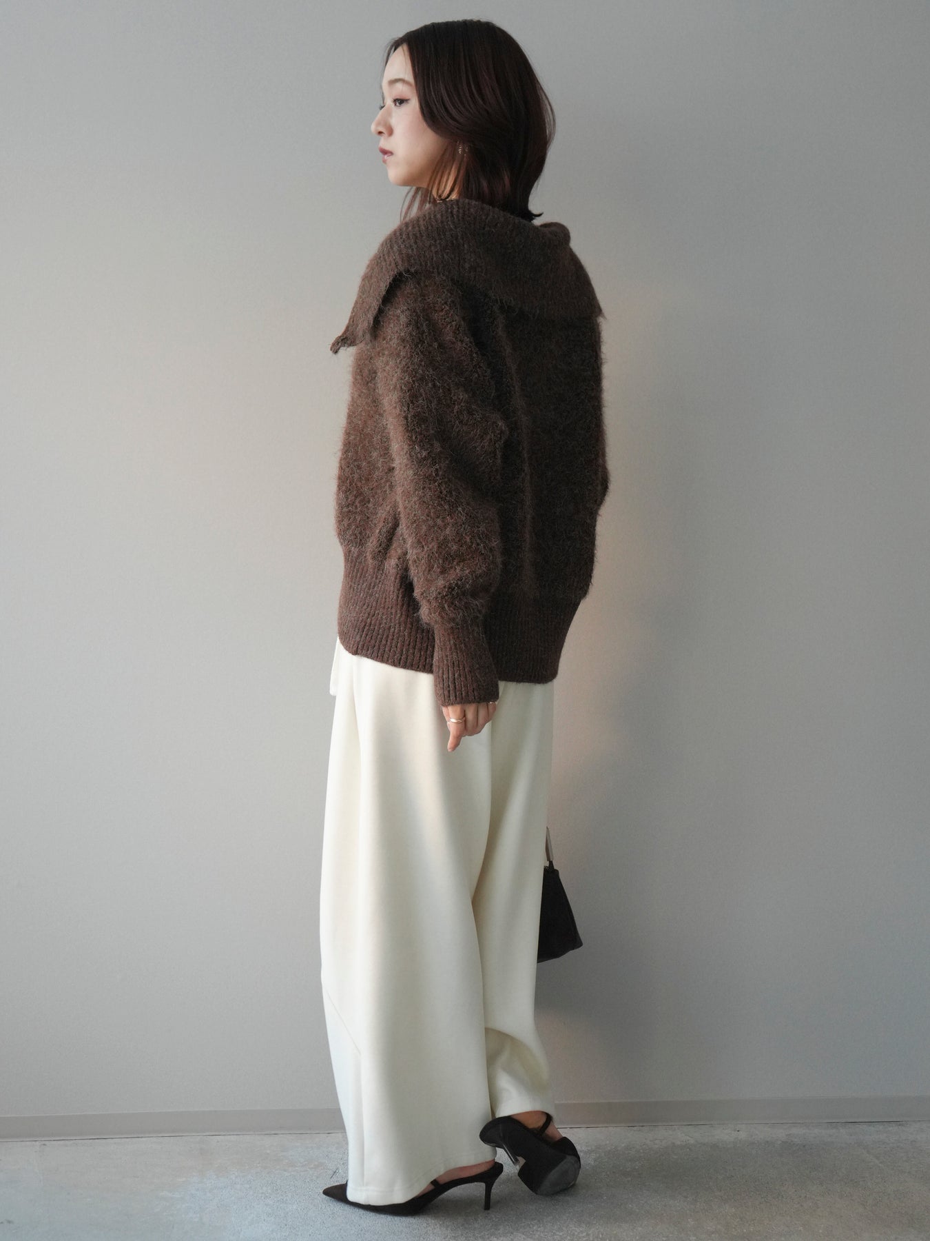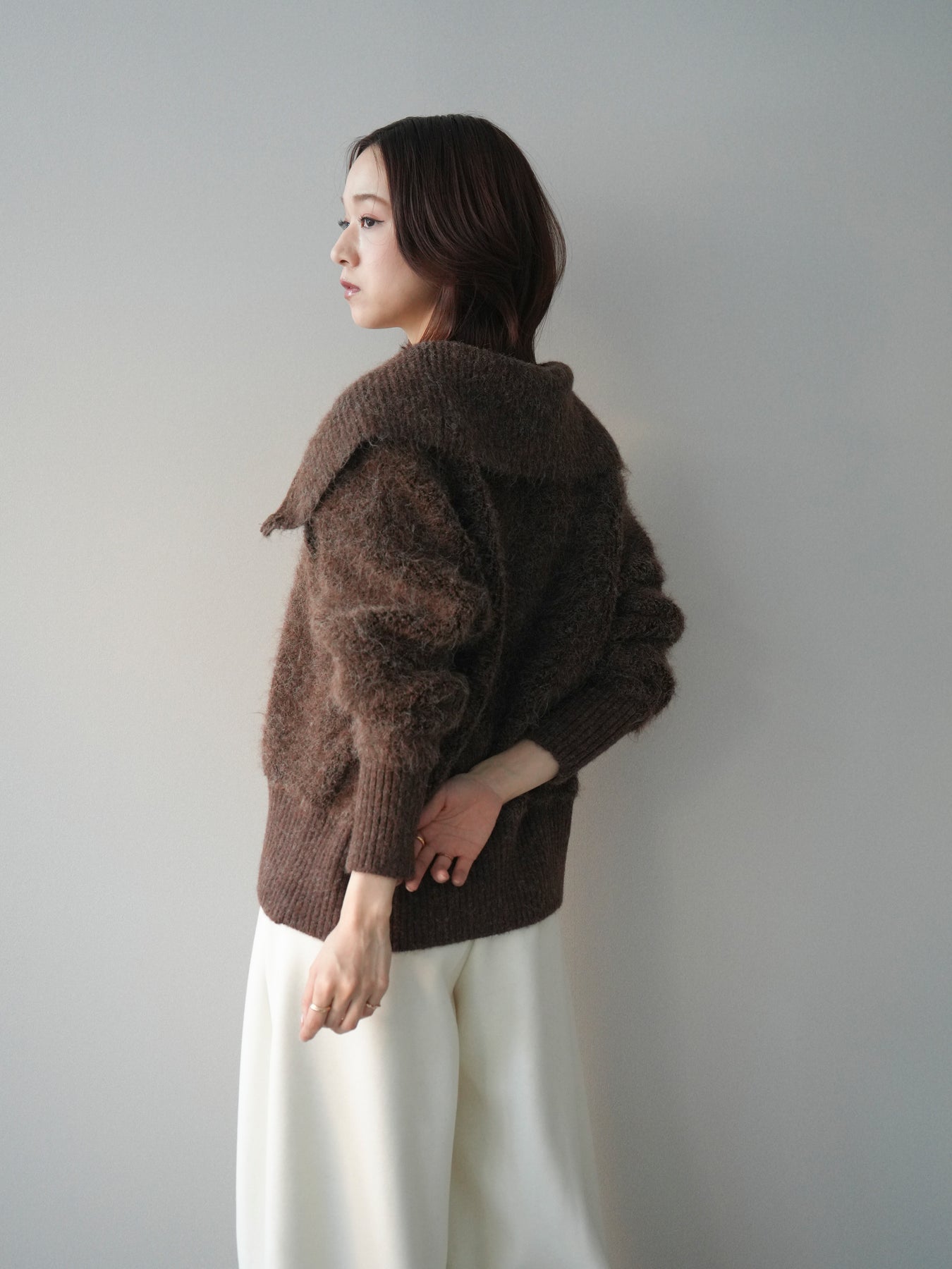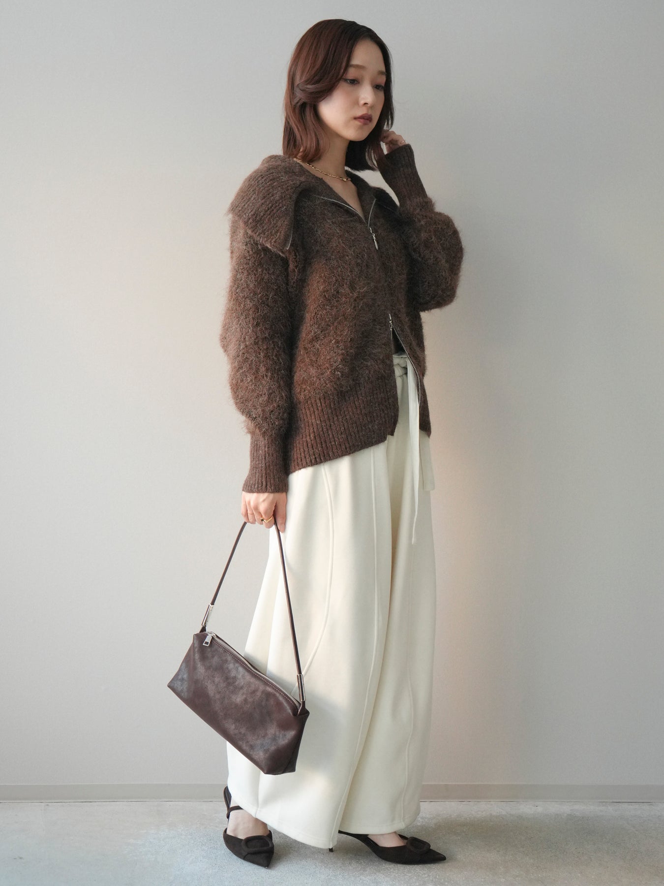 ◆ [予約]リブ襟ブークレZIPニットカーディガン