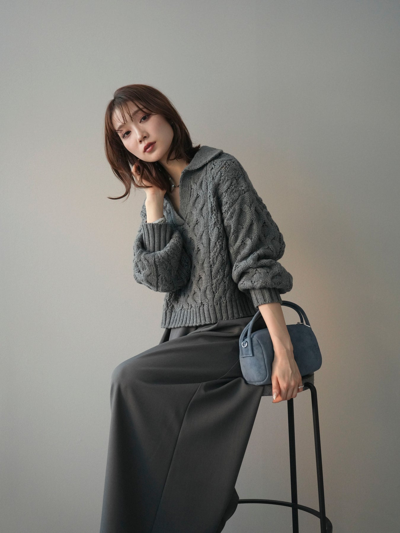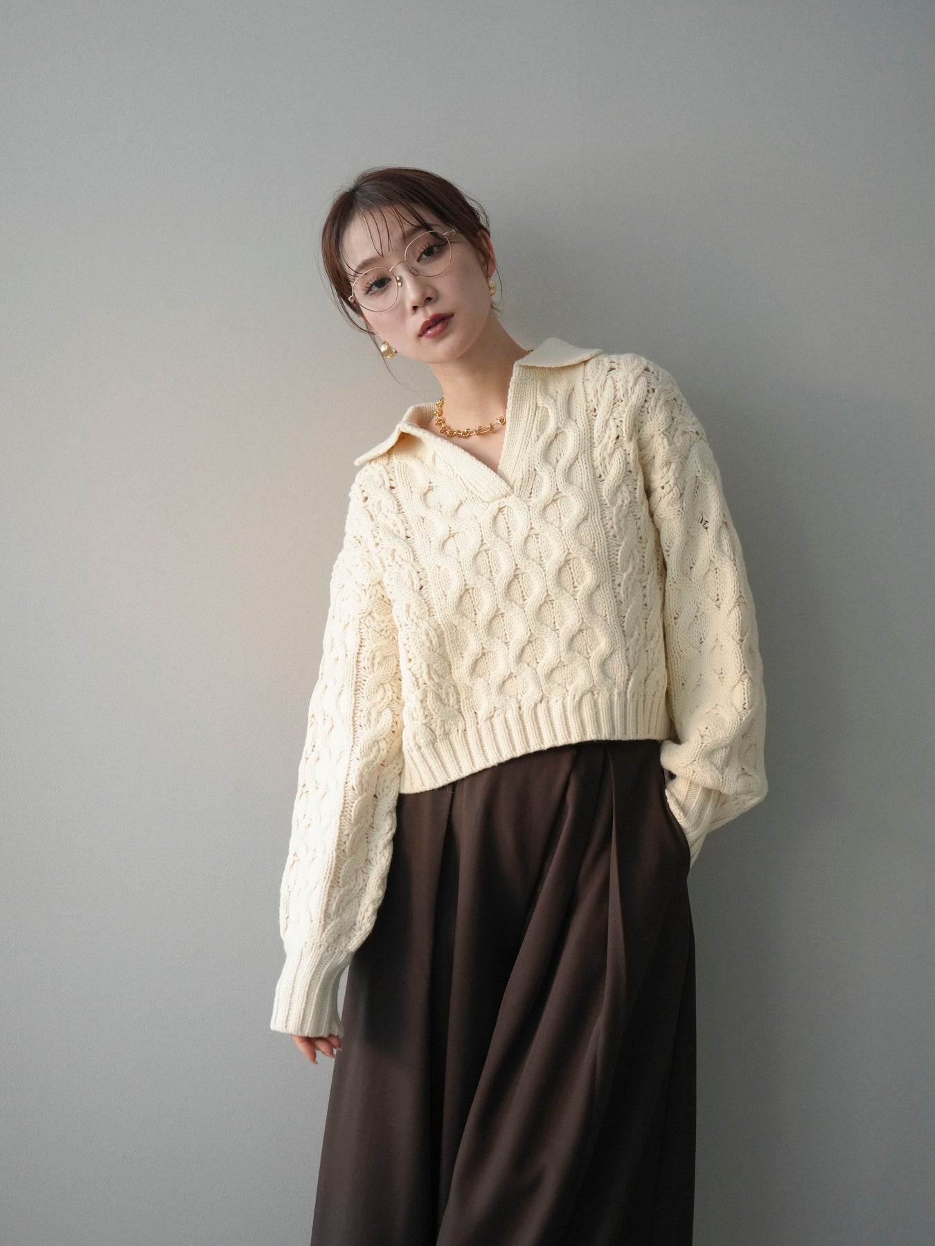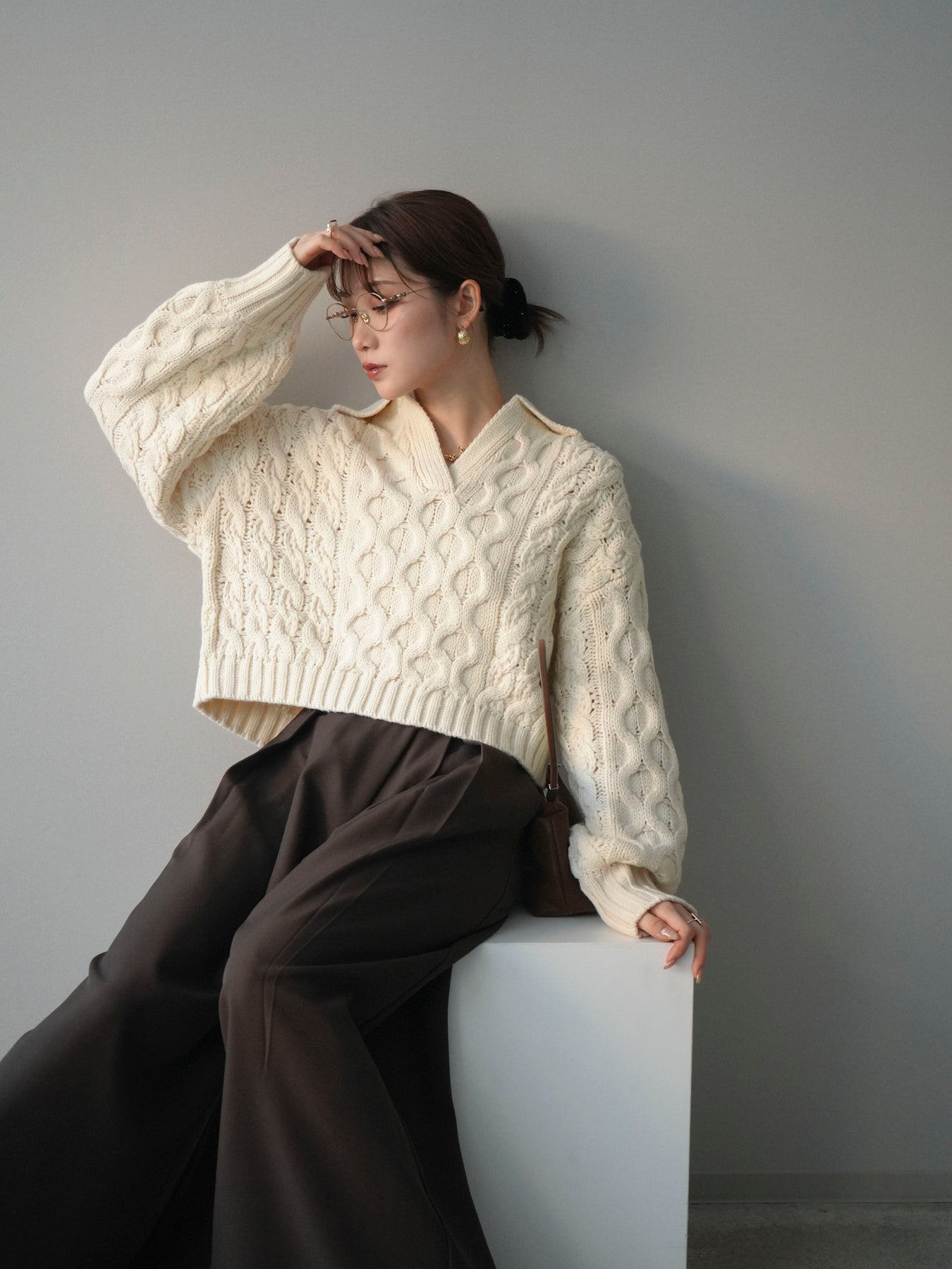 ◆ [予約]バルキーケーブルクロップド開襟プルオーバー