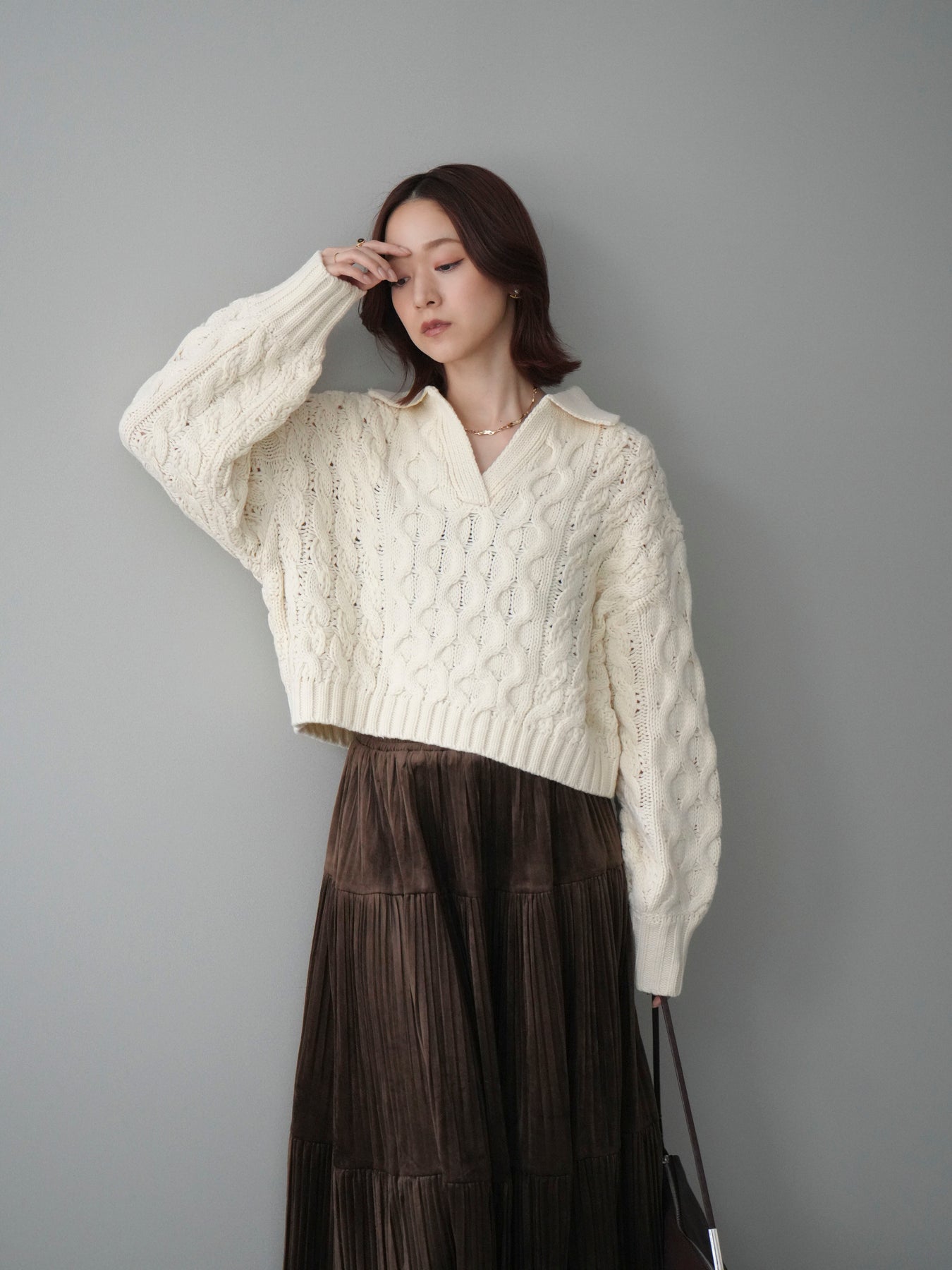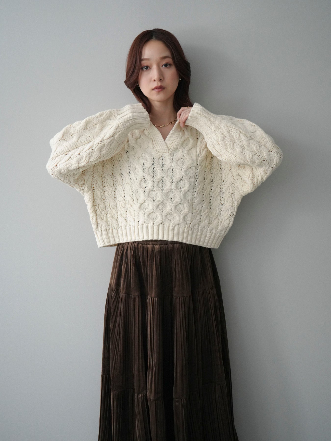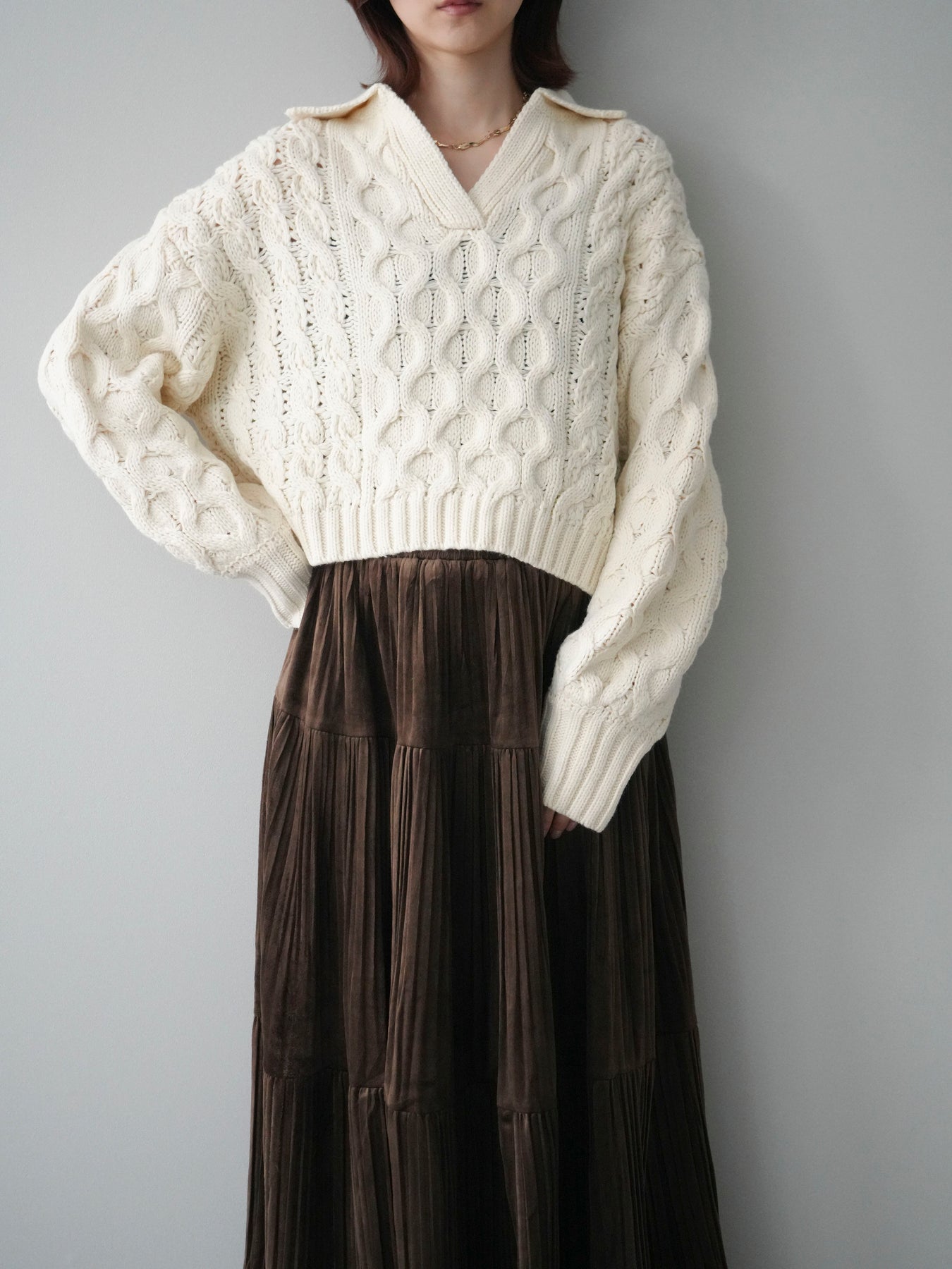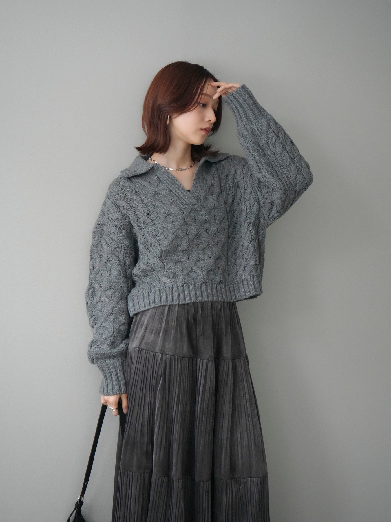 [予約]バルキーケーブルクロップド開襟プルオーバー