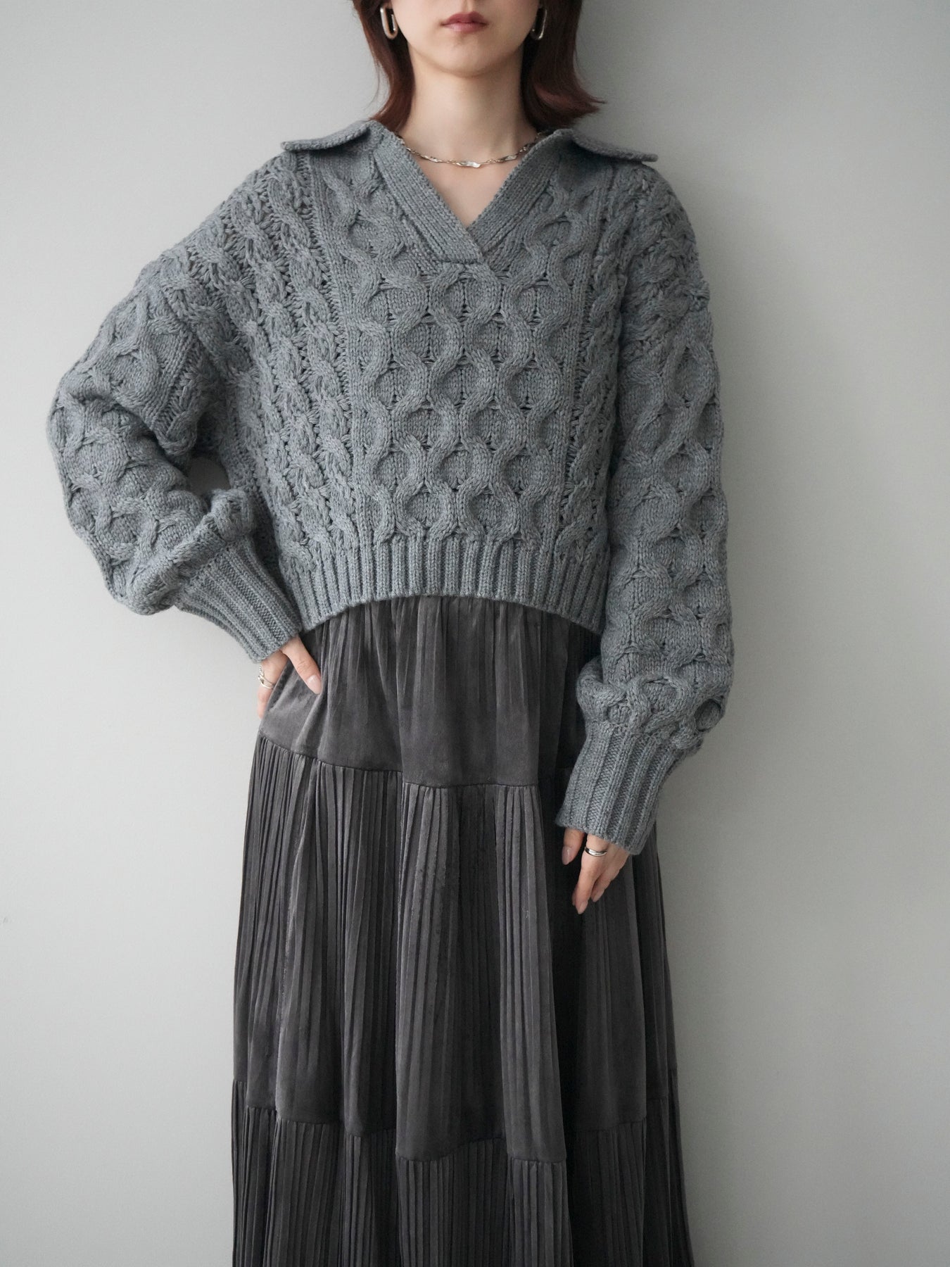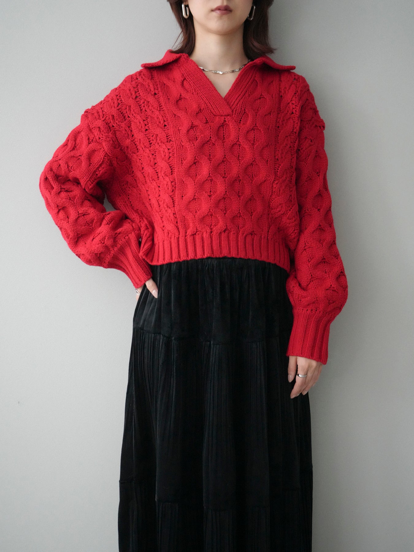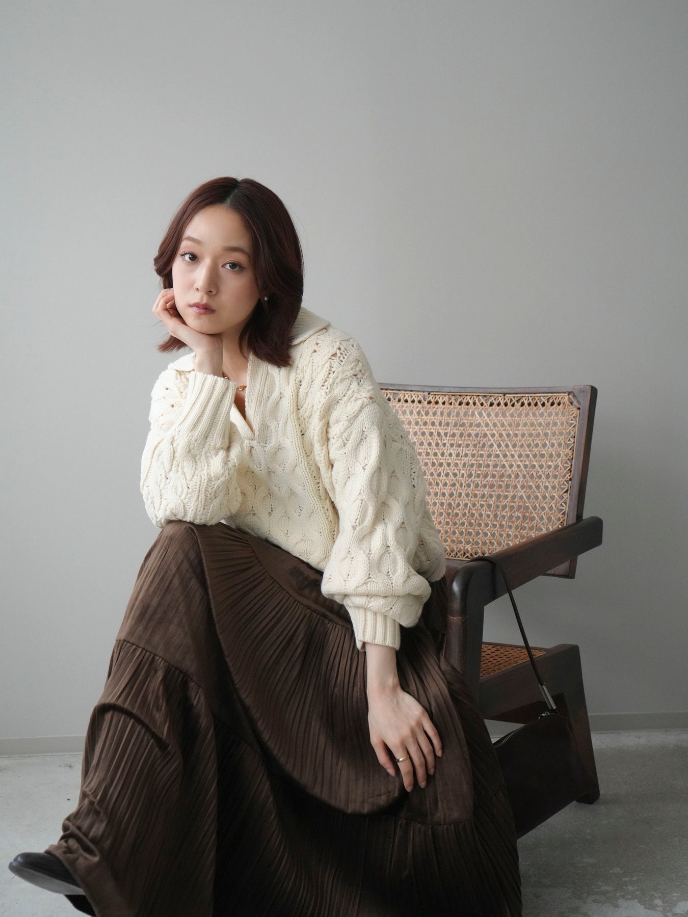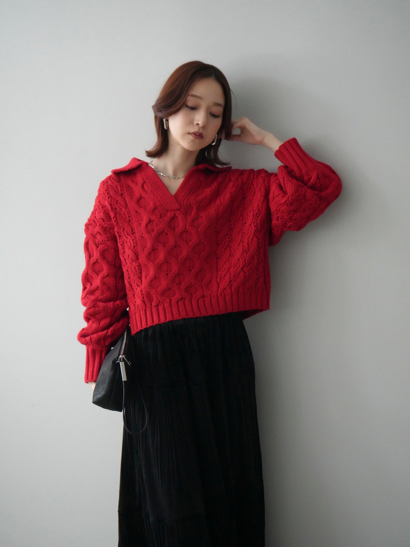 [予約]バルキーケーブルクロップド開襟プルオーバー