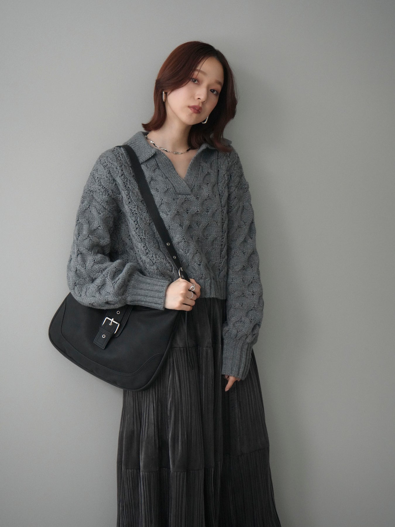 ◆ [予約]バルキーケーブルクロップド開襟プルオーバー