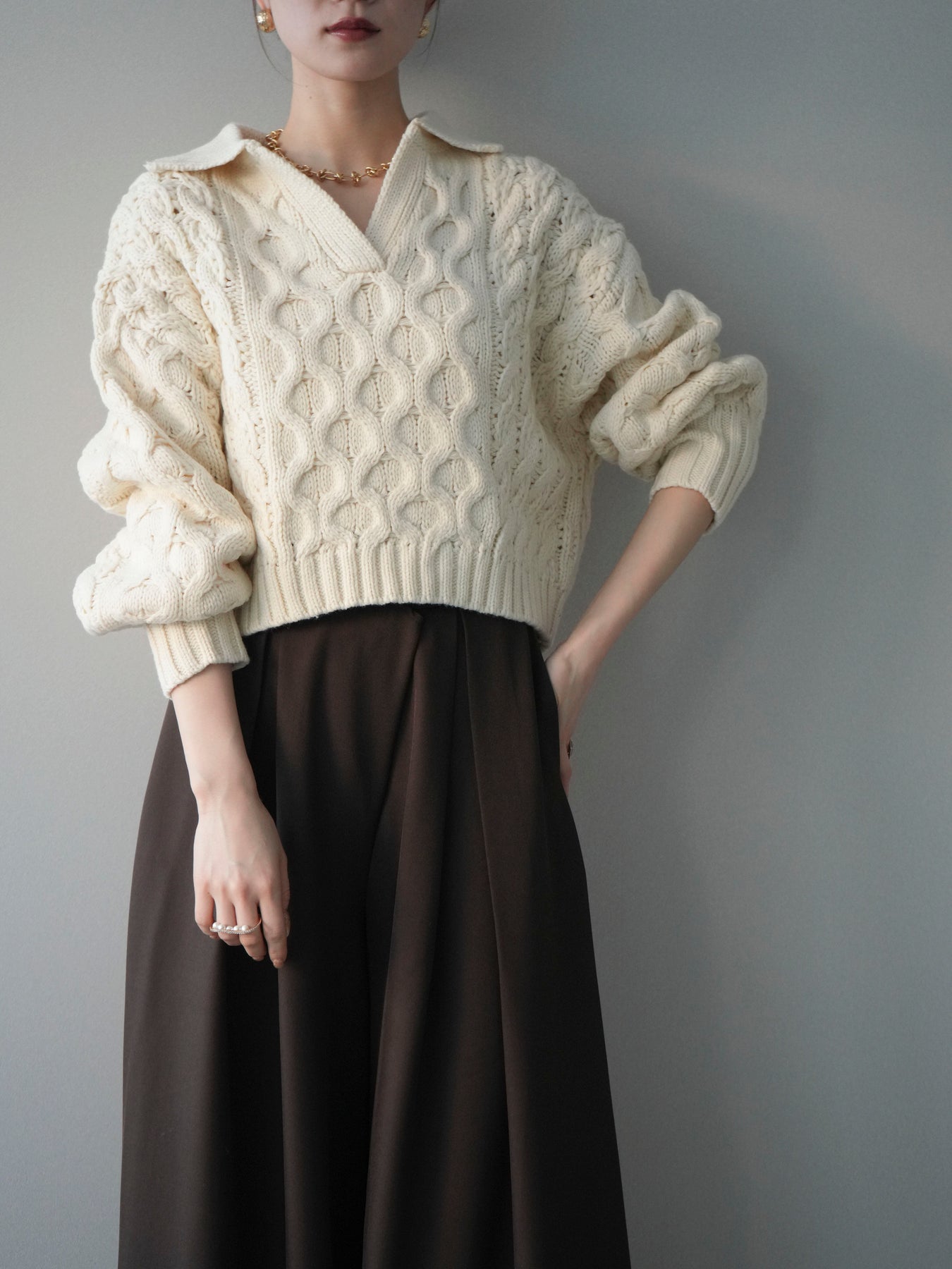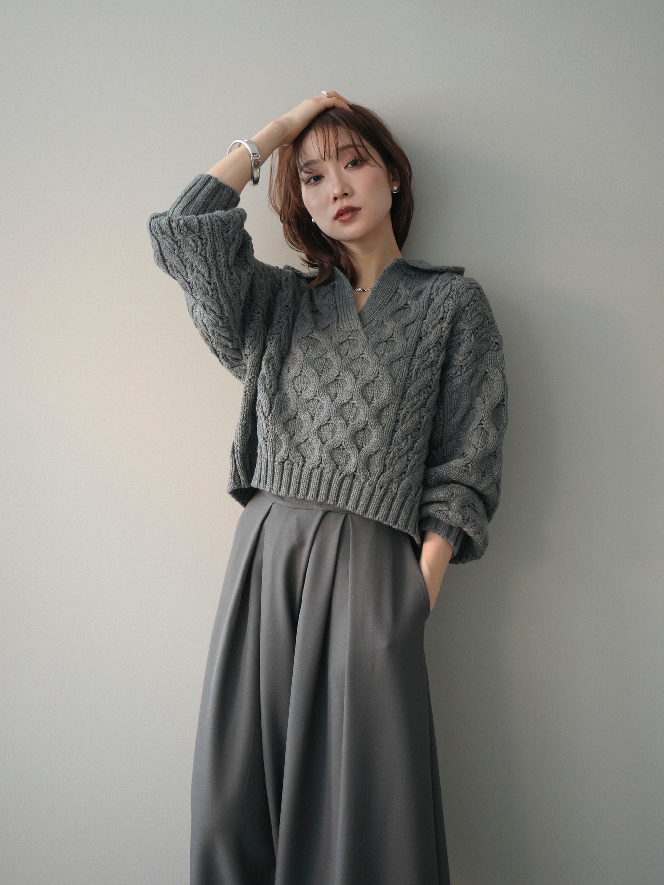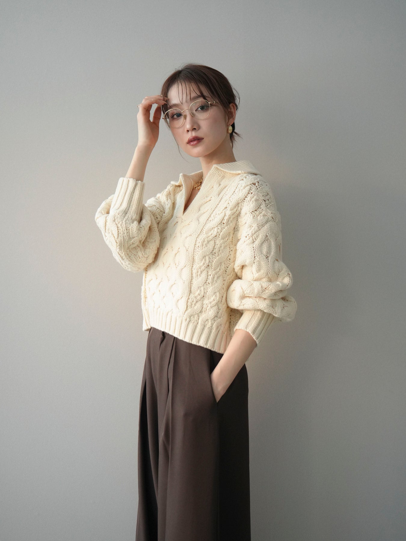 [予約]バルキーケーブルクロップド開襟プルオーバー