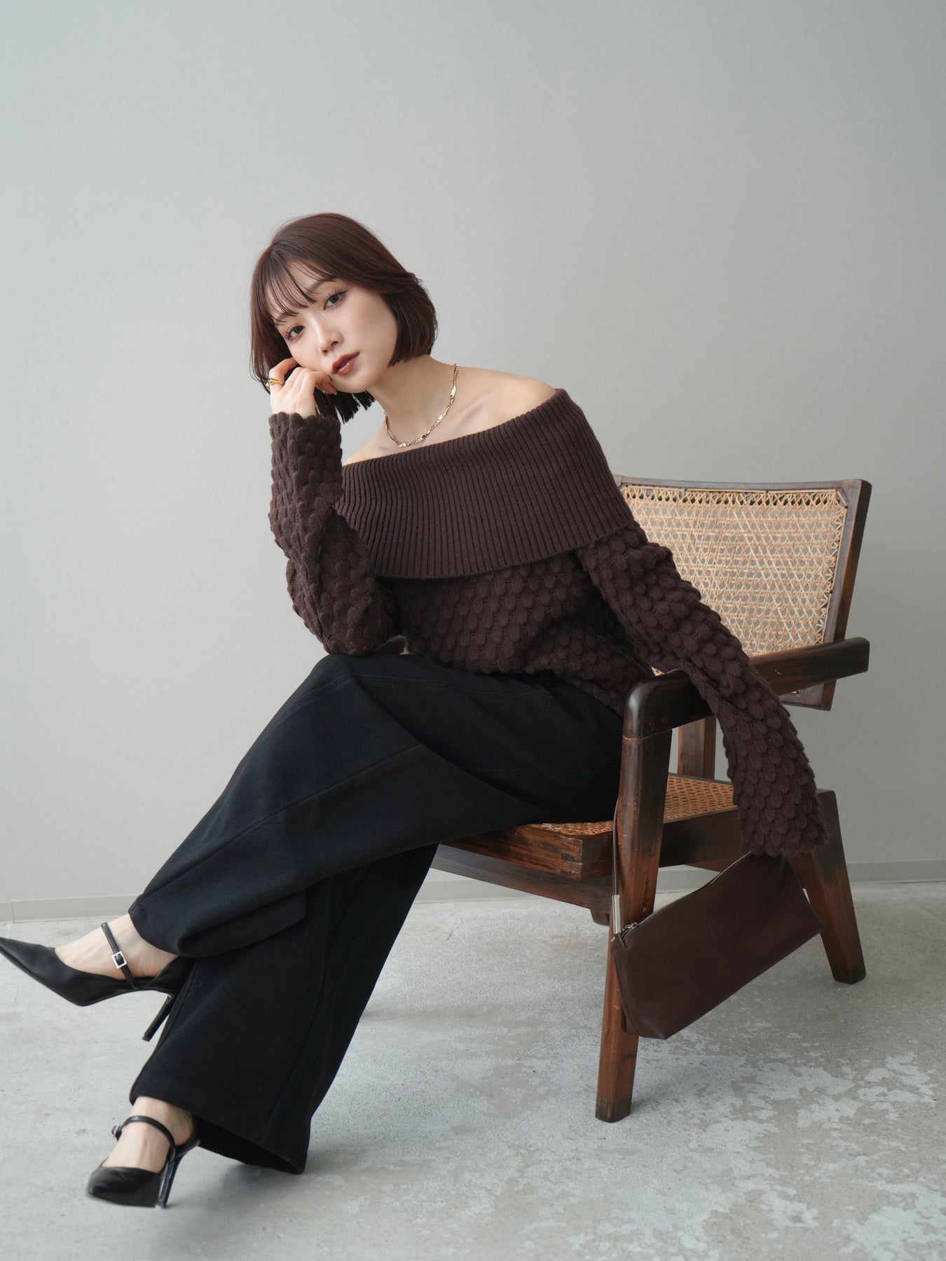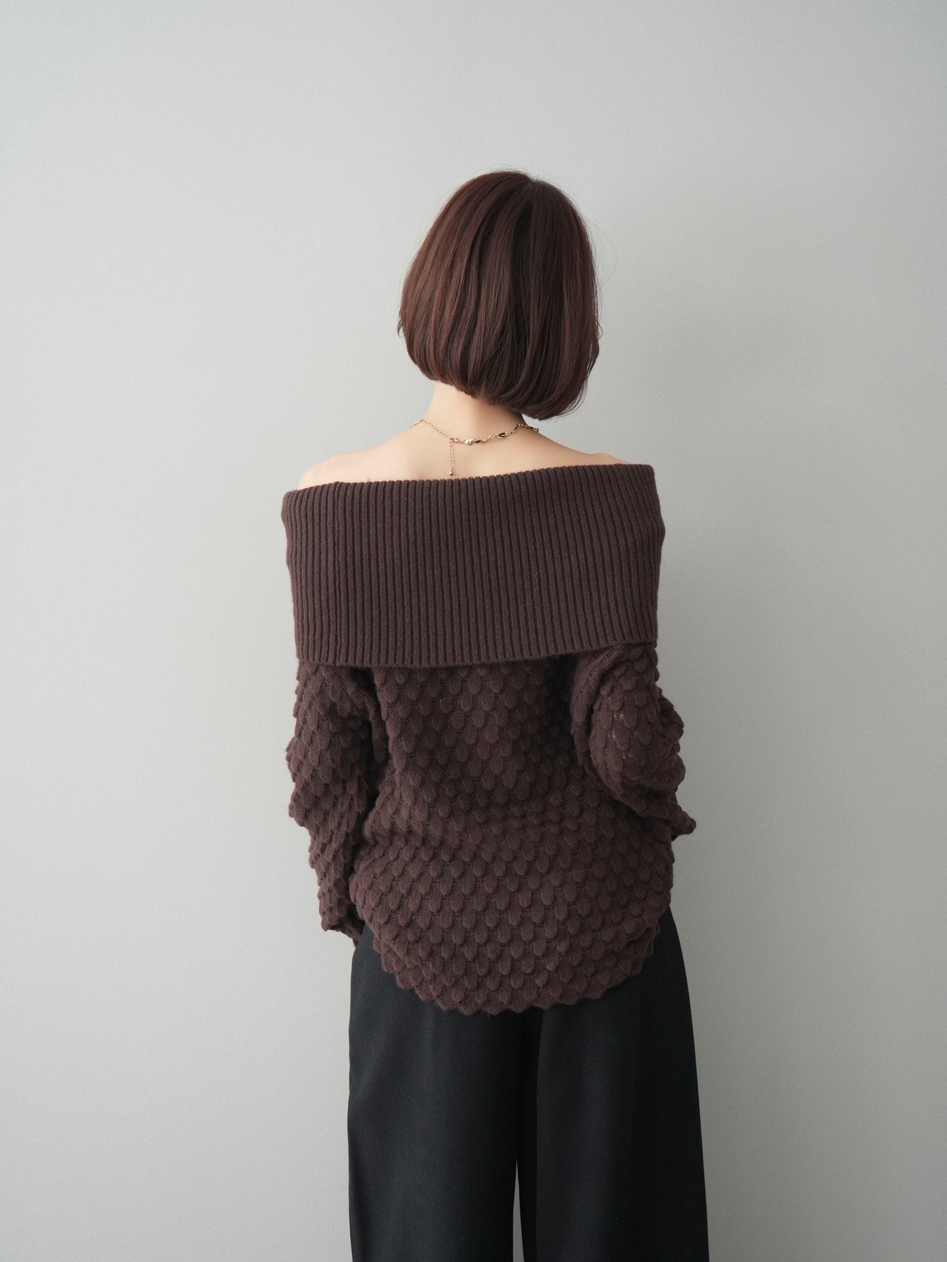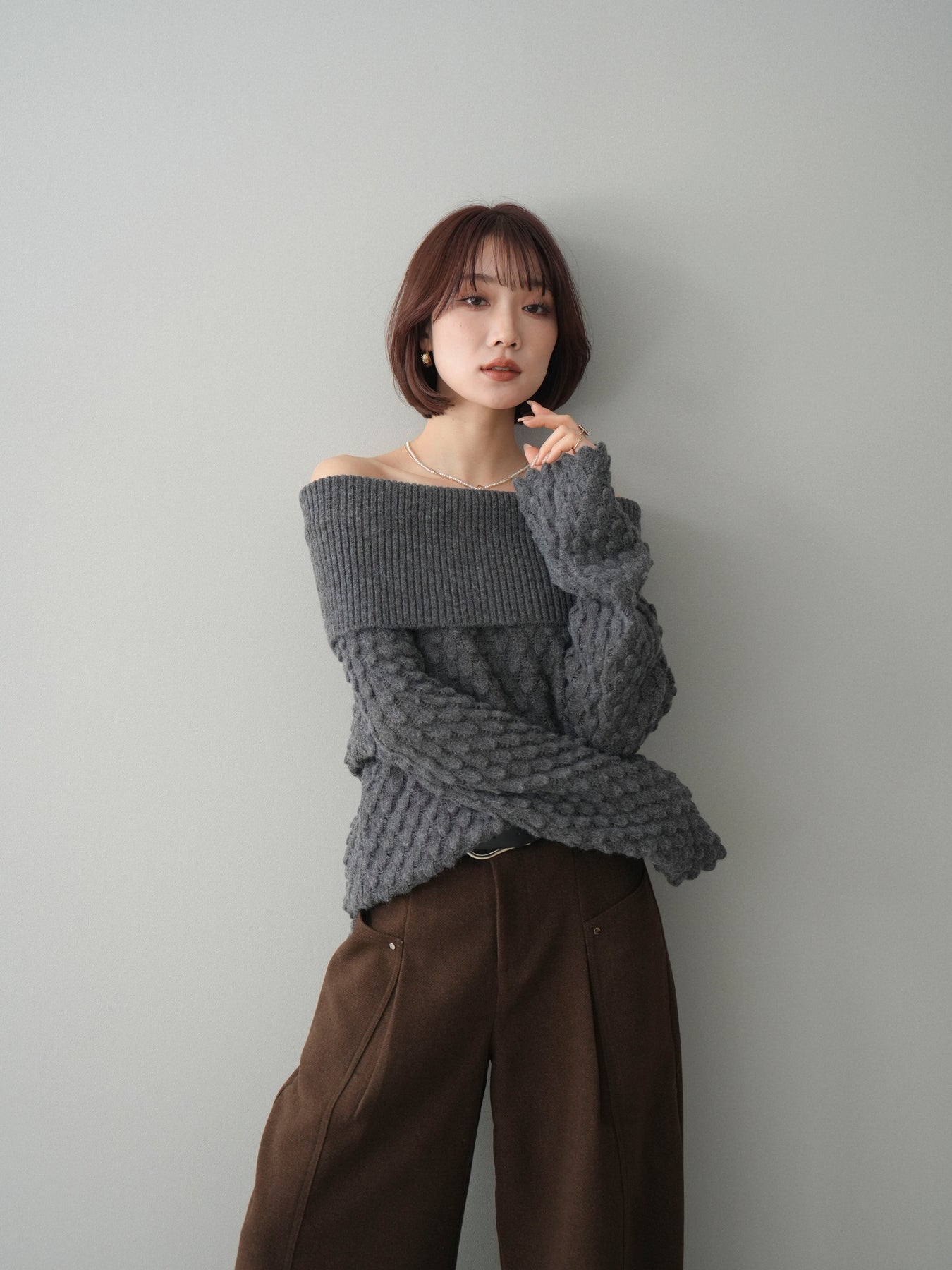 ◆ [予約]ポコポコ編みオフショルニットプルオーバー