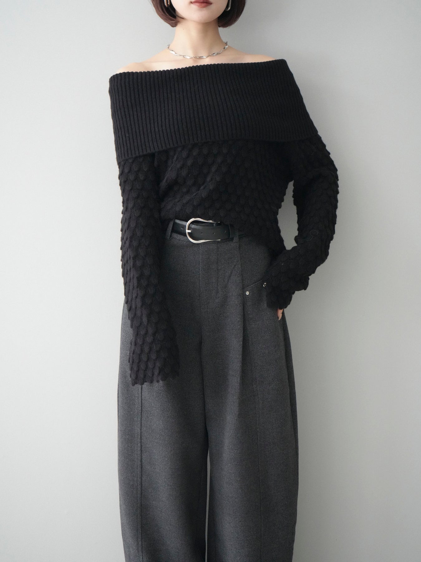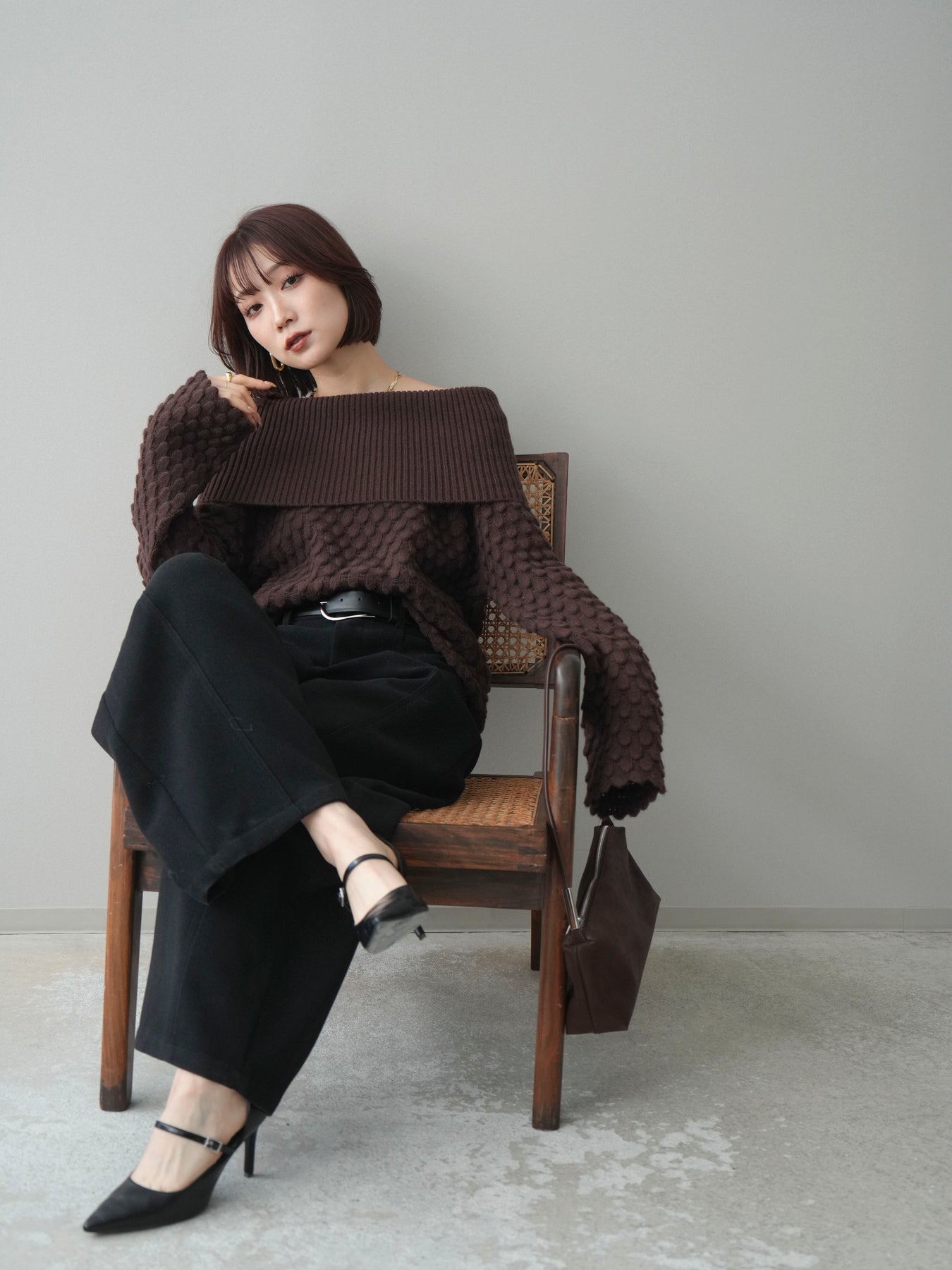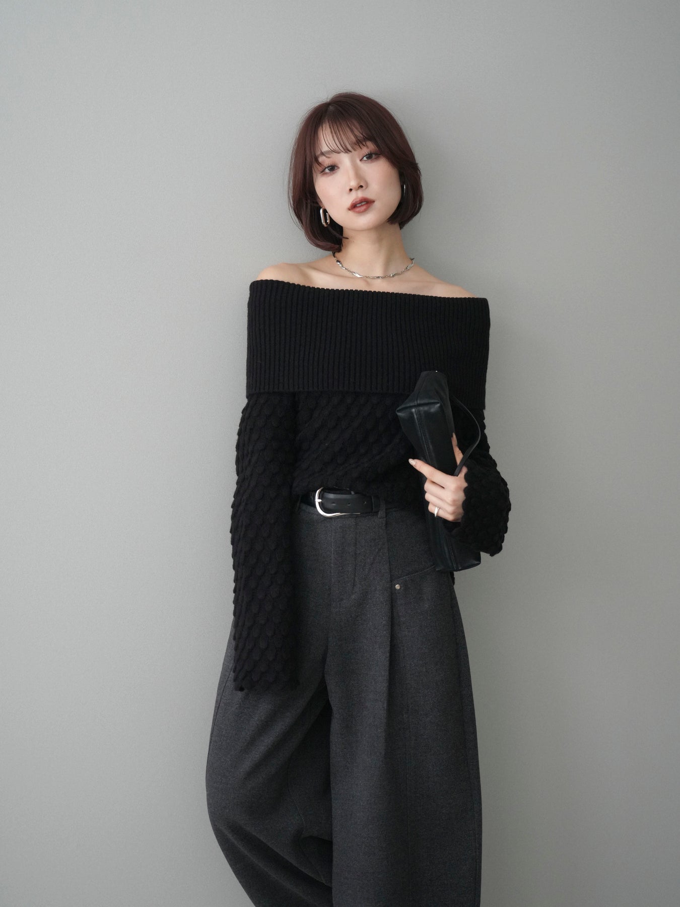 ◆ [予約]ポコポコ編みオフショルニットプルオーバー