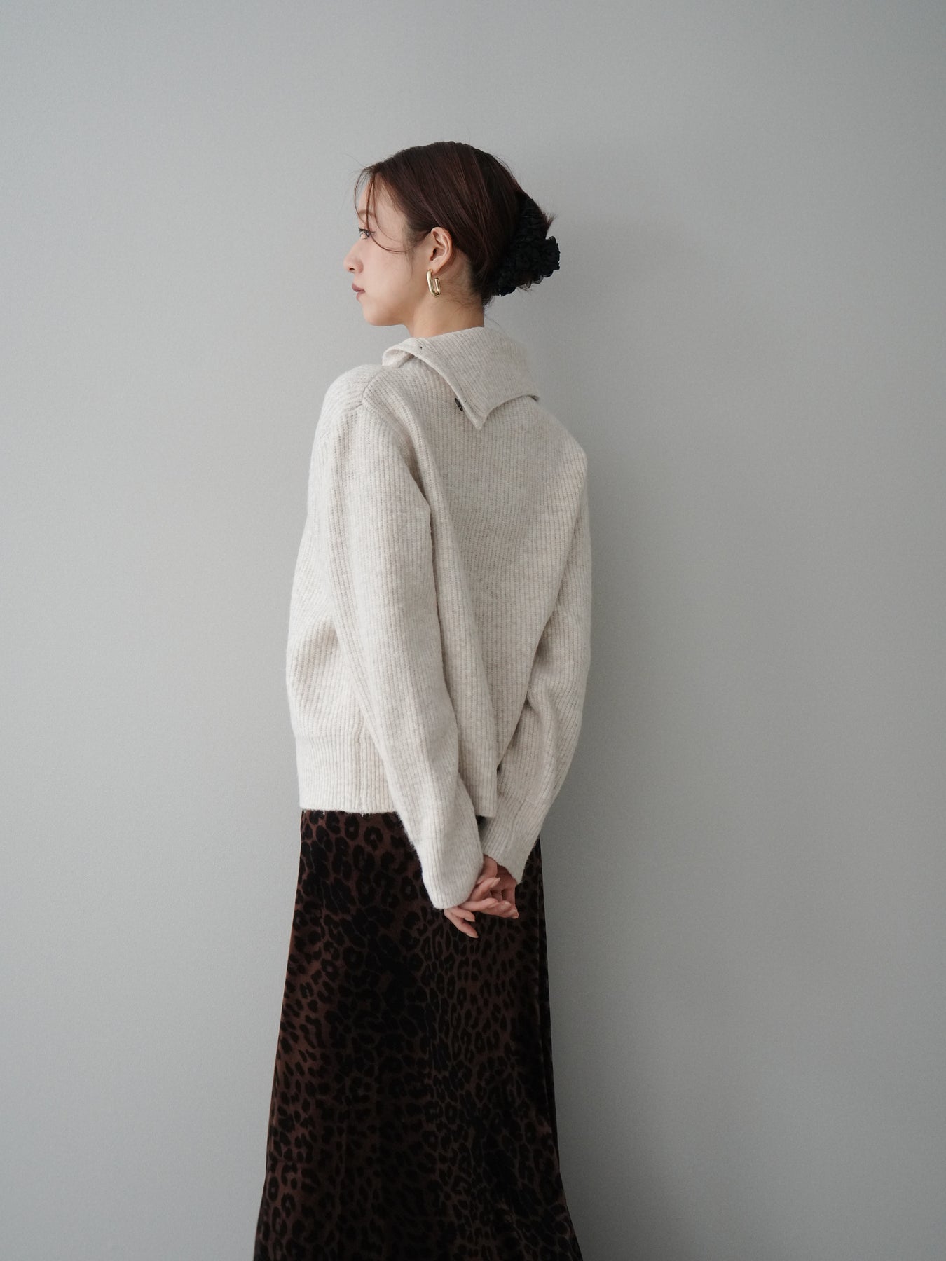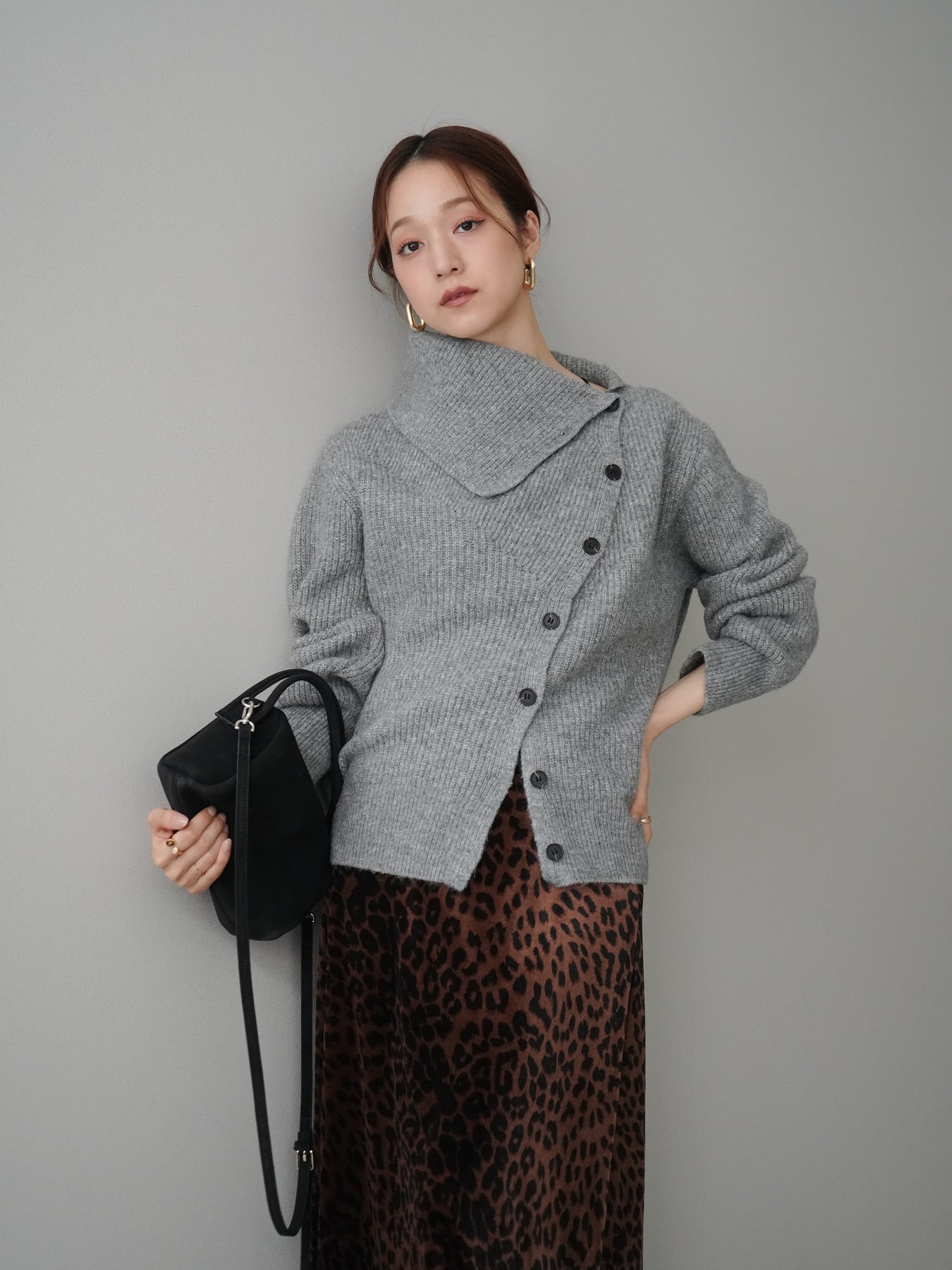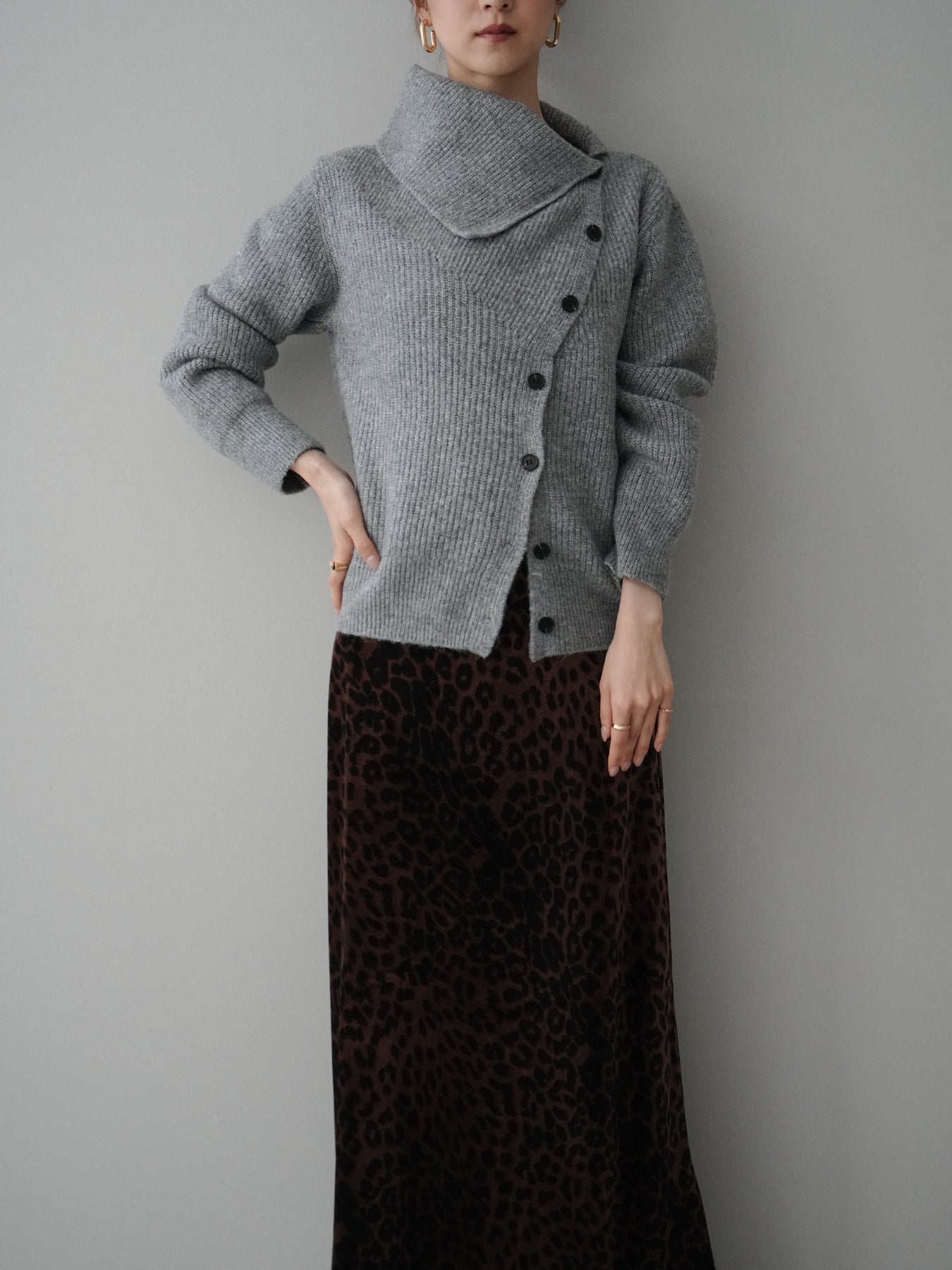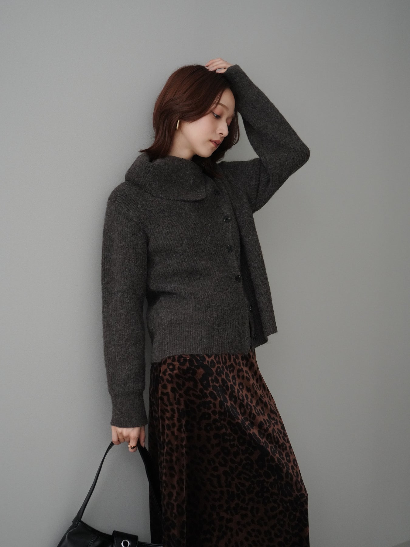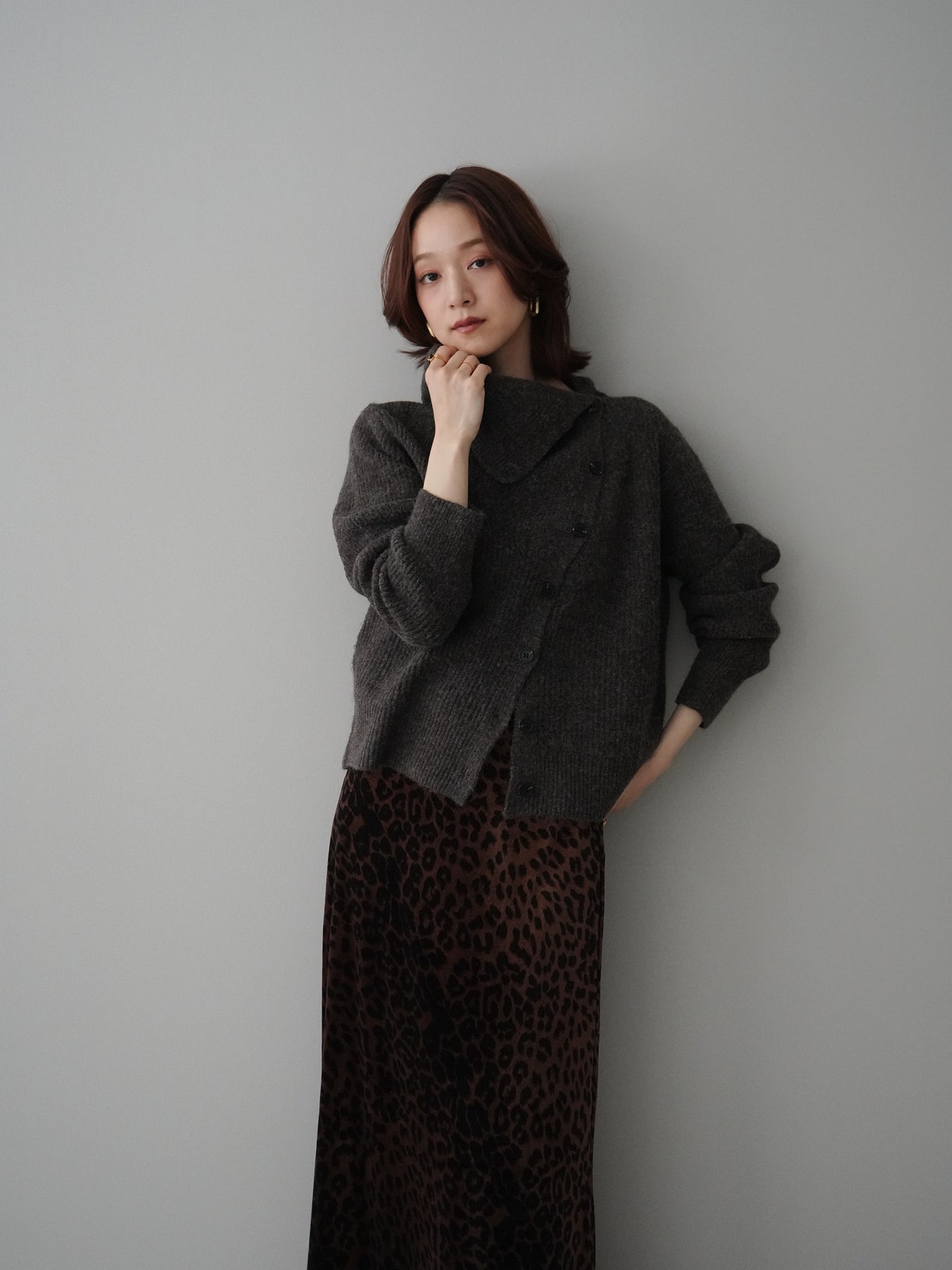 [SET]ハイネックデザインボタンニットカーディガン+レオパードベロアナロースカート(2set)