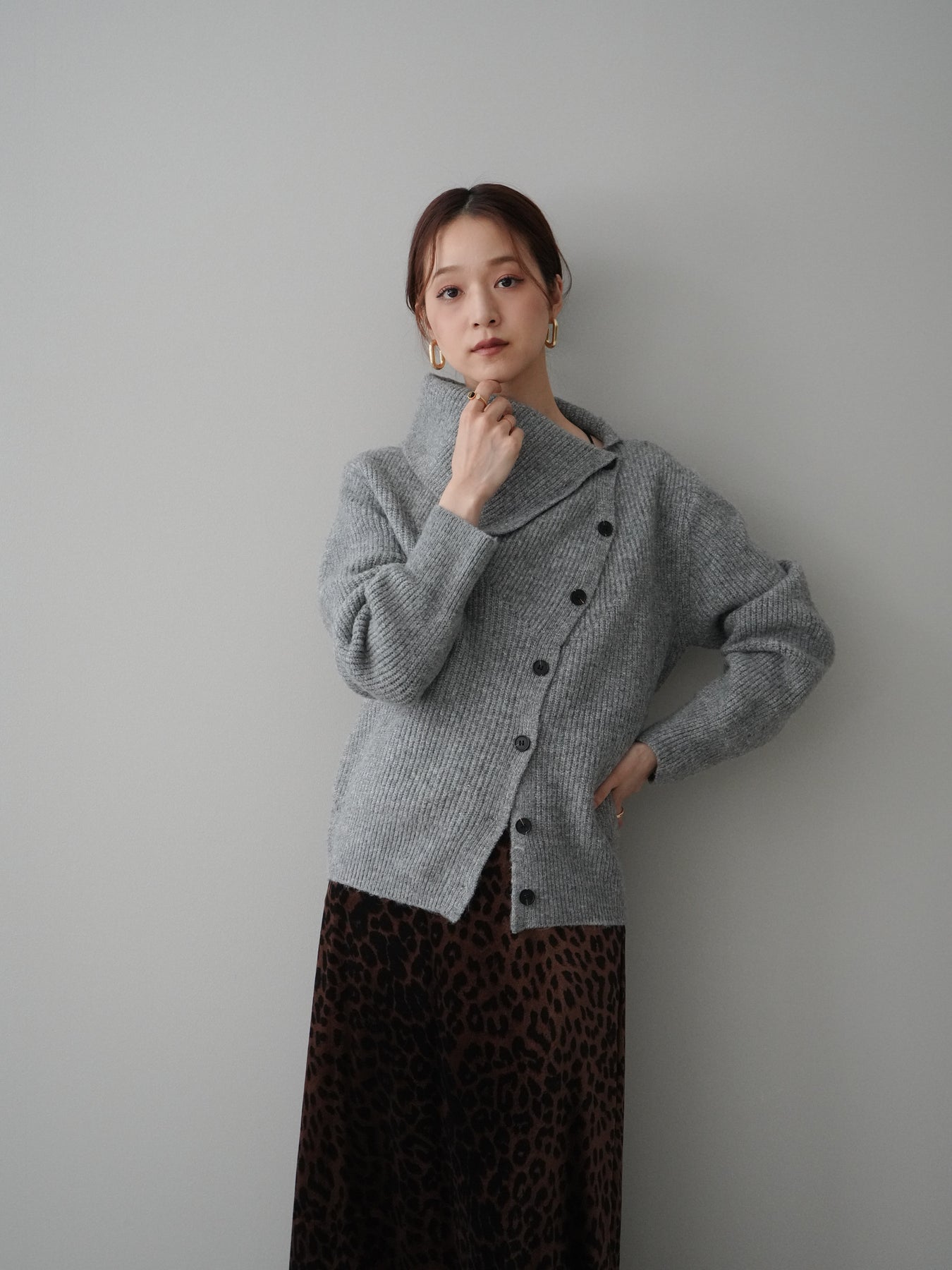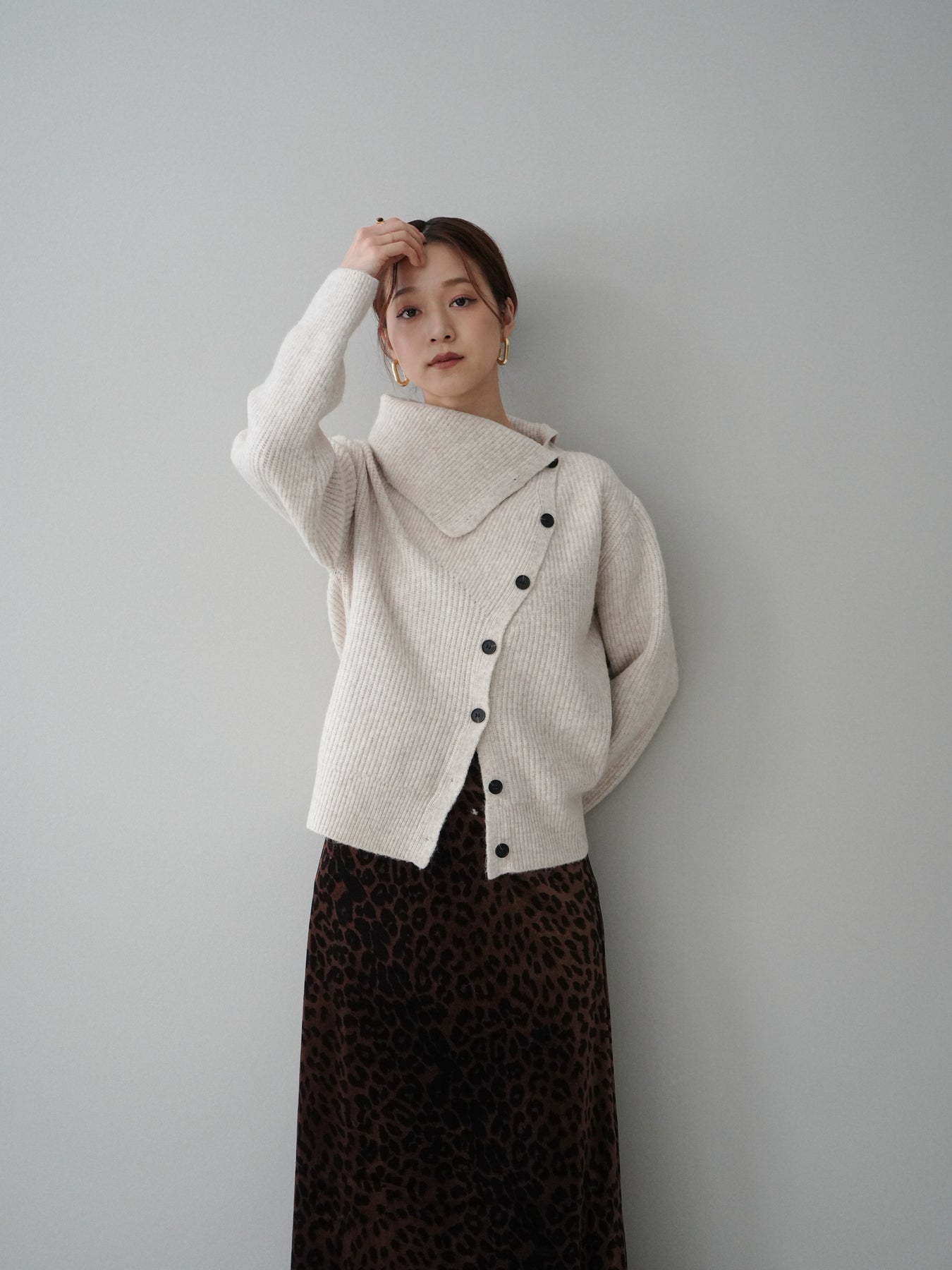 ◆ [予約]ハイネックデザインボタンニットカーディガン