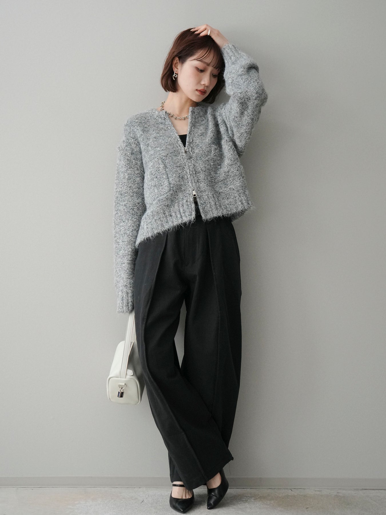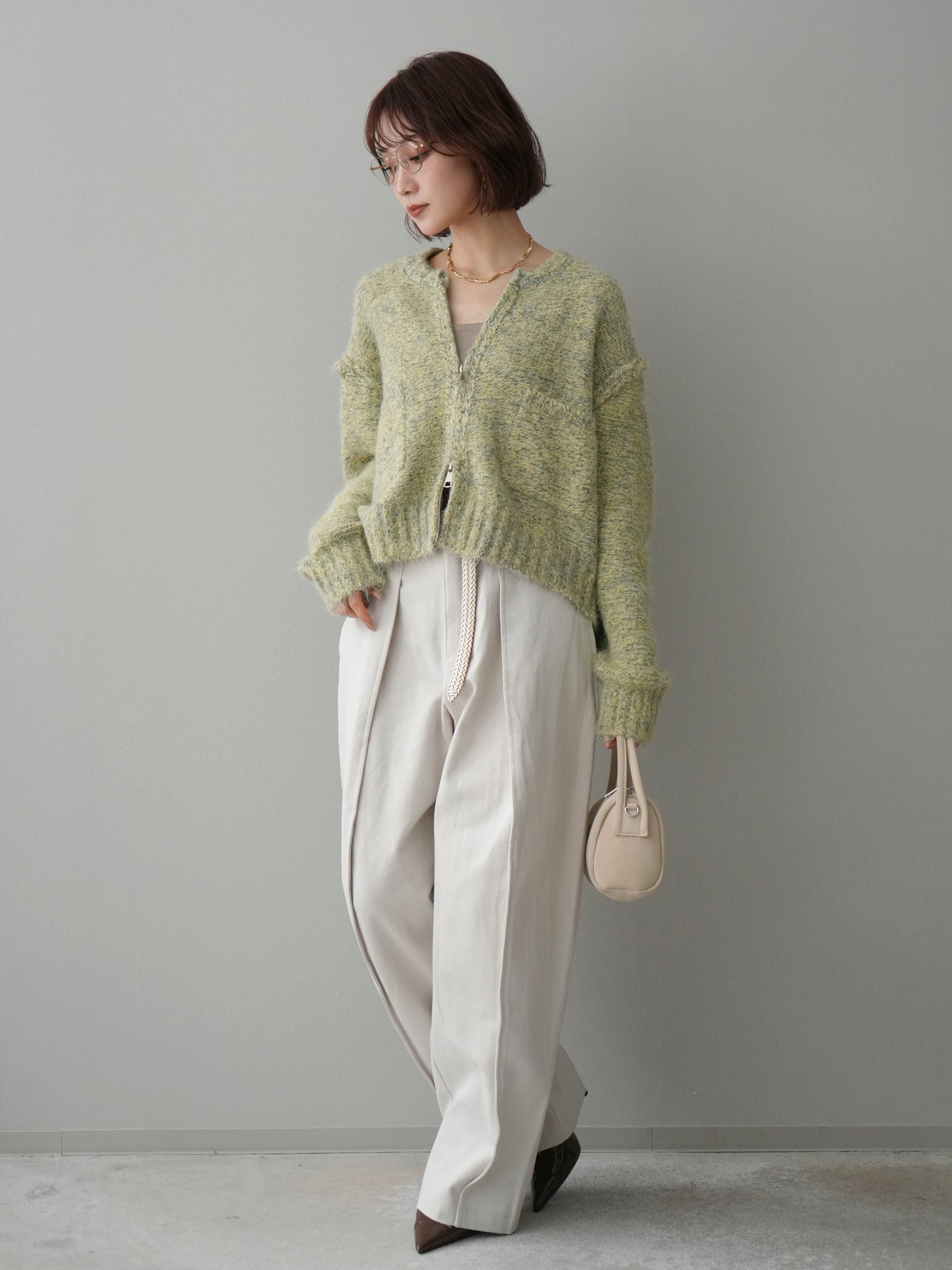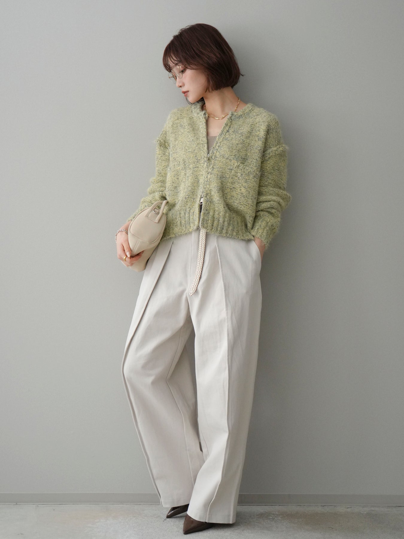 [SET]ミックスヤーンダブルZIPニットカーディガン+コットンツイルカーブパンツ(2set)