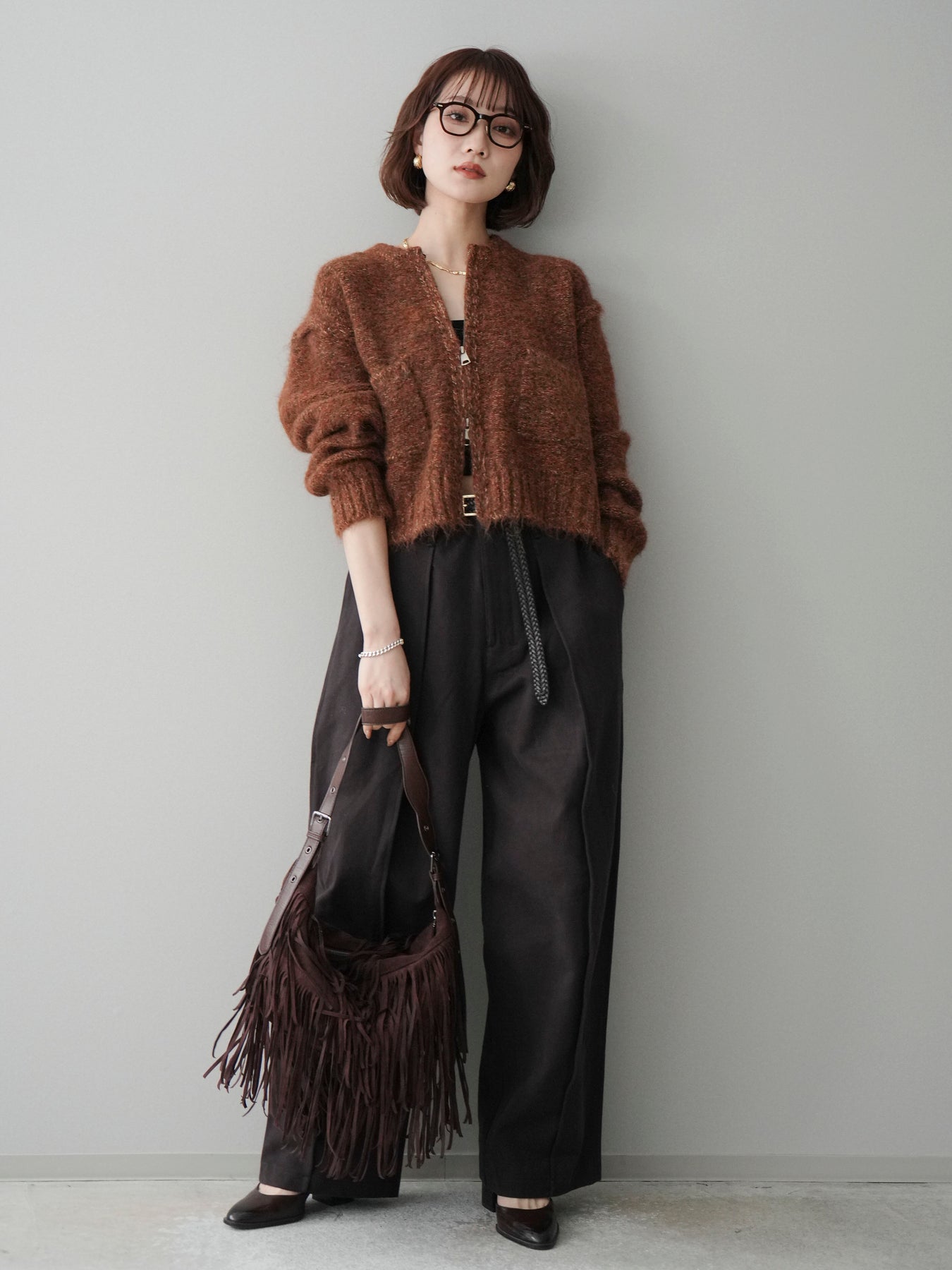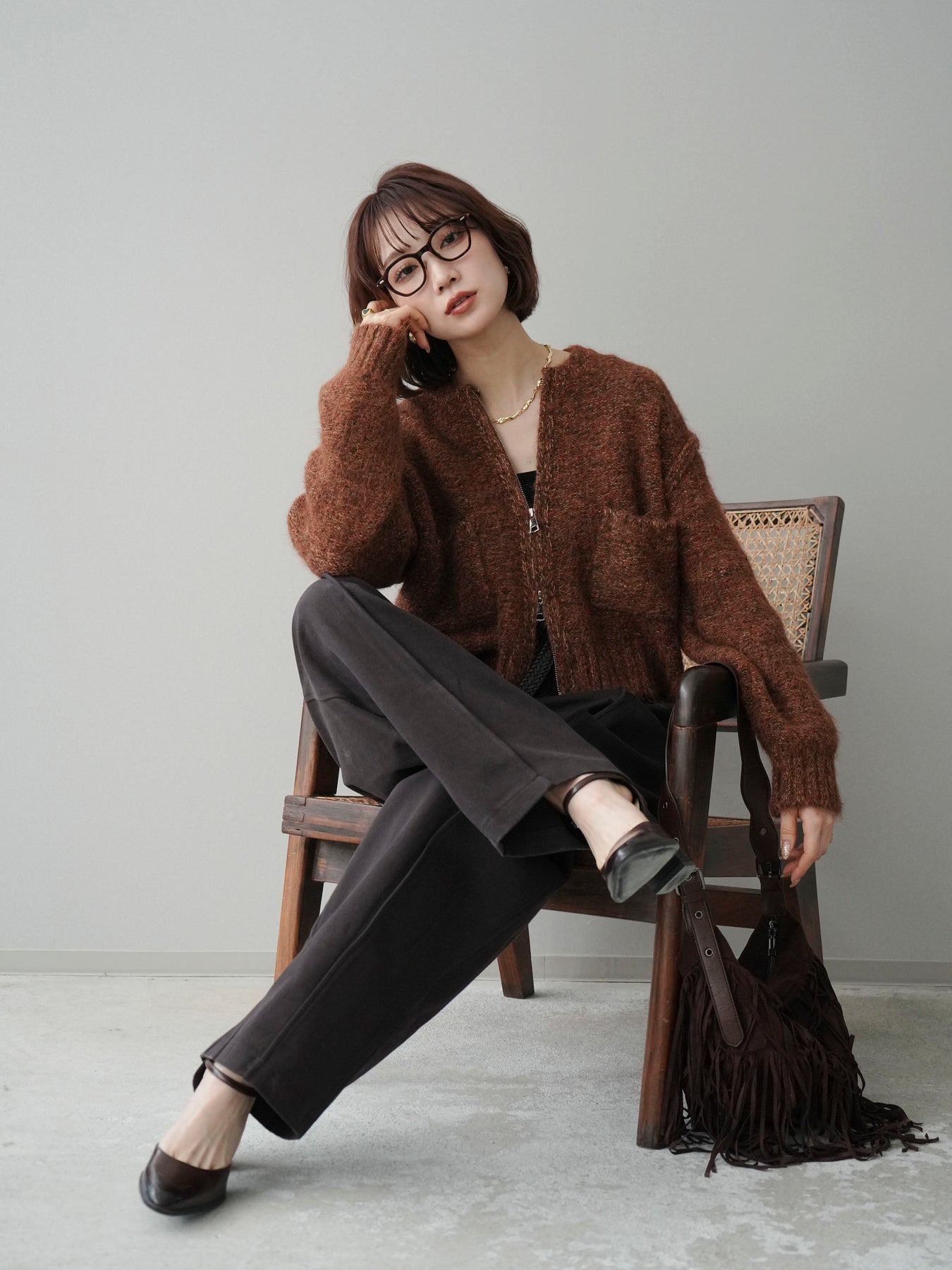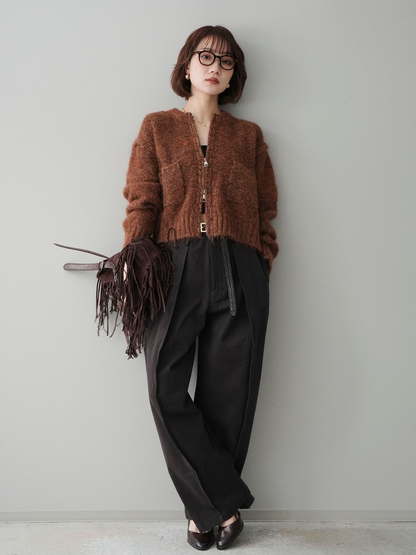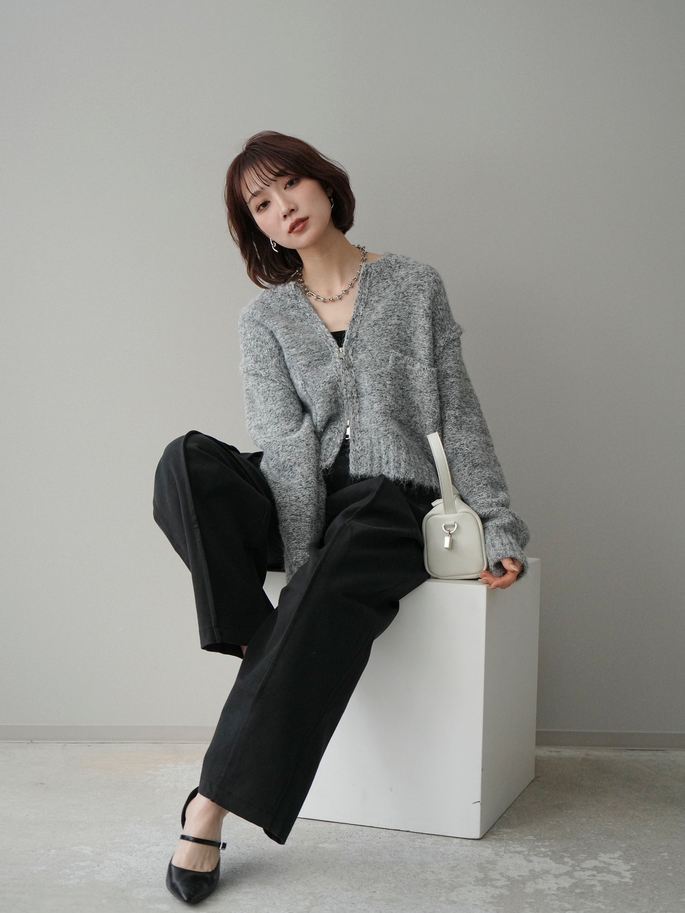 [SET]ミックスヤーンダブルZIPニットカーディガン+コットンツイルカーブパンツ(2set)