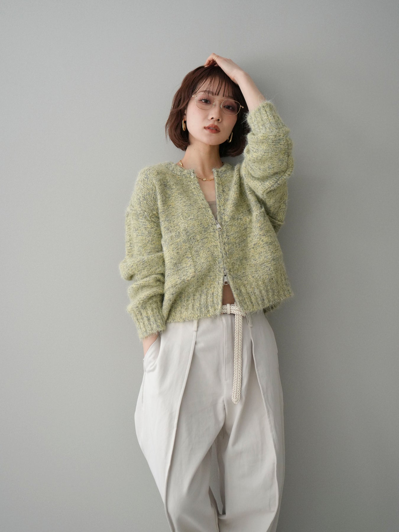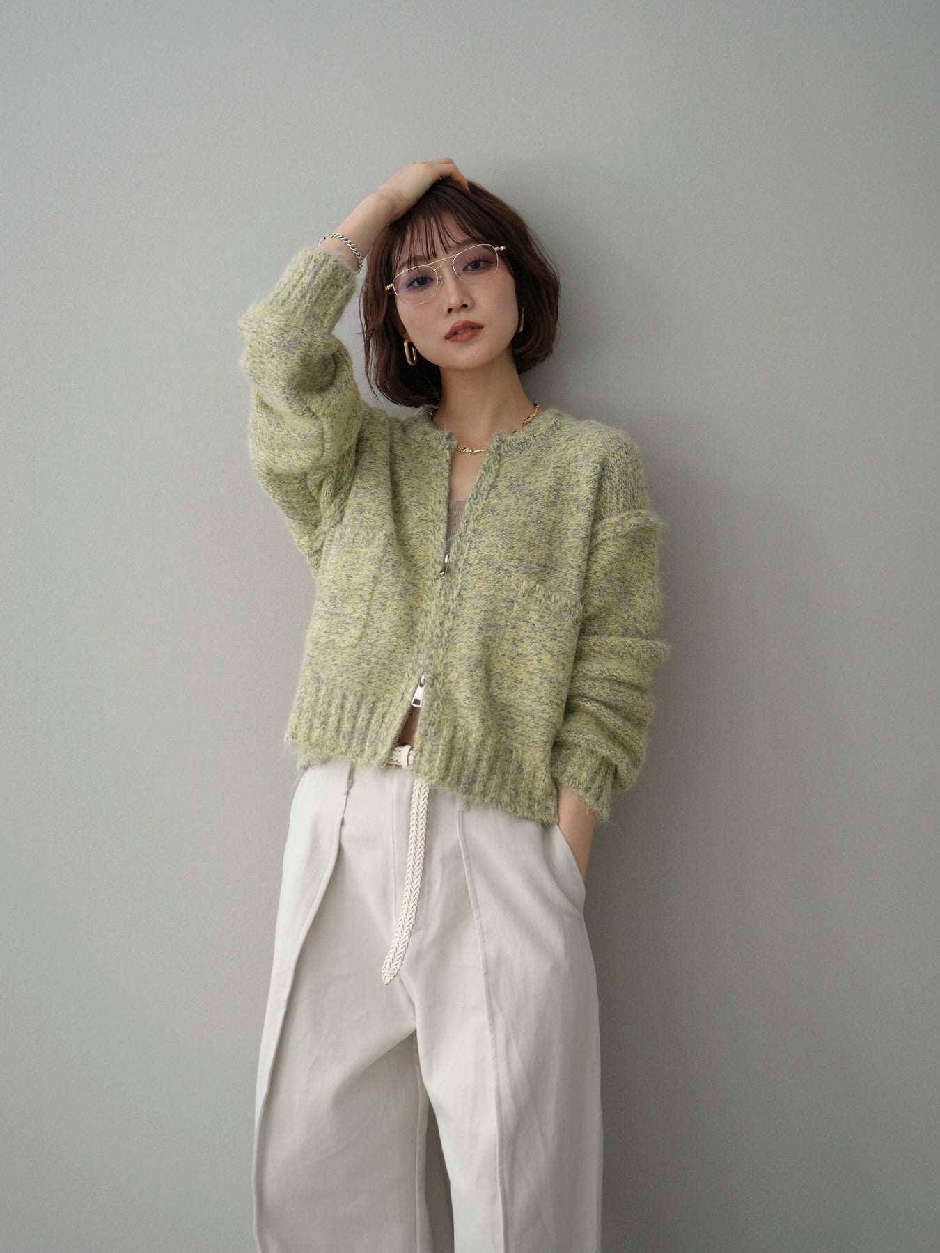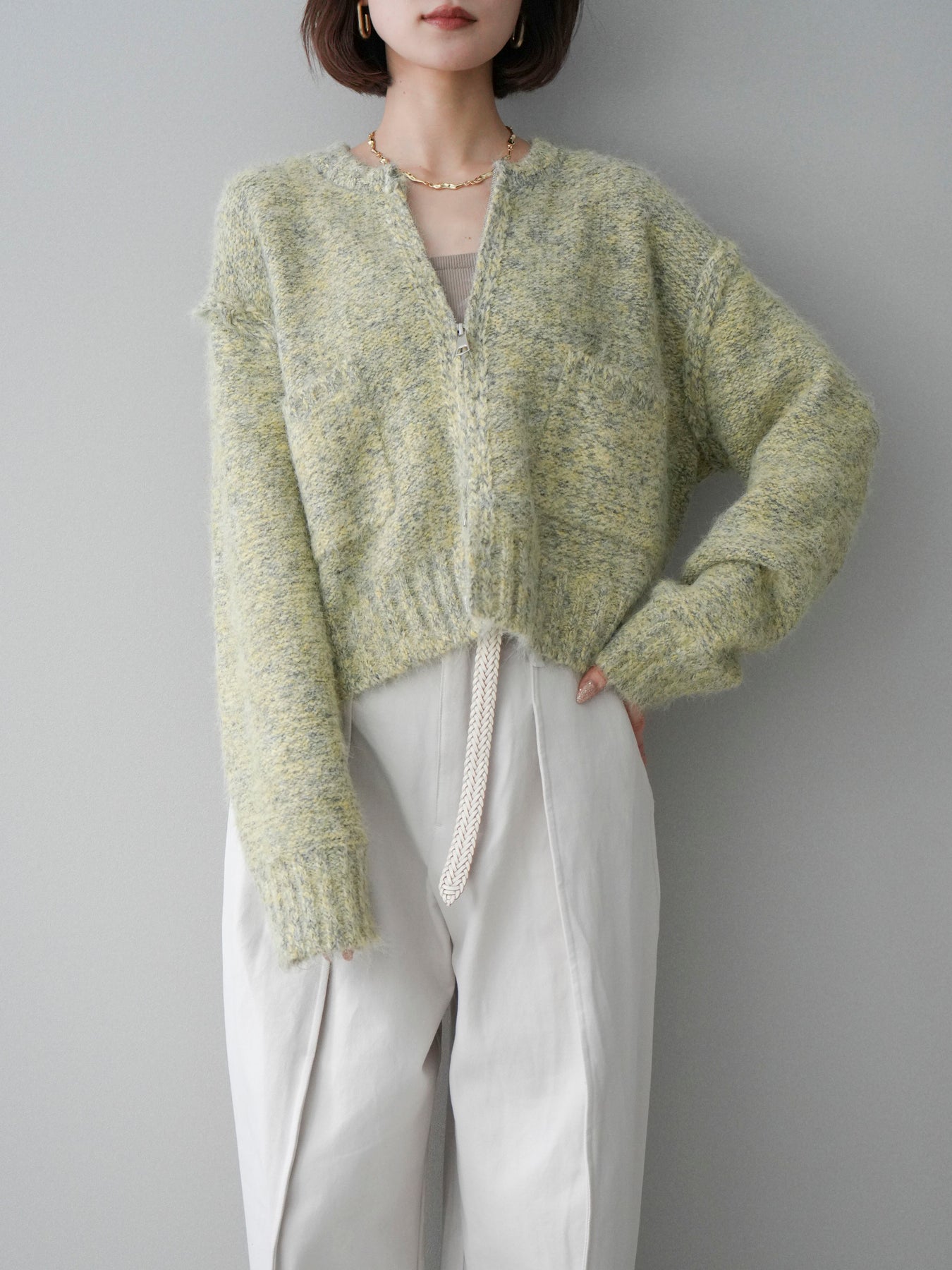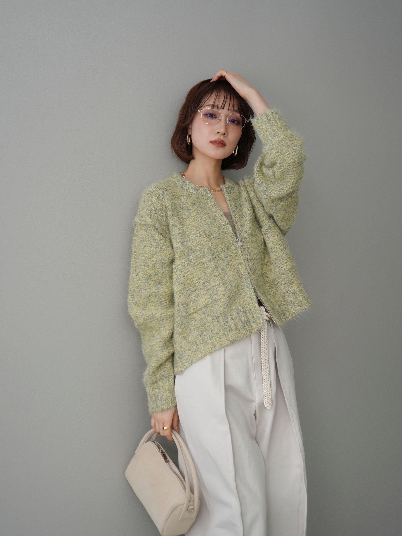ミックスヤーンならではの表情豊かな風合いが魅力のダブルZIPニットカーディガン。前後どちらのZIPも開閉でき、着こなしのアレンジが楽しめるデザインです。程よくゆとりのあるシルエットで、羽織としてもトップス感覚でも活躍する一着です。