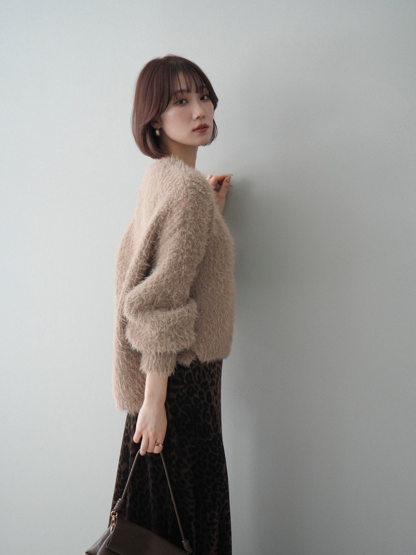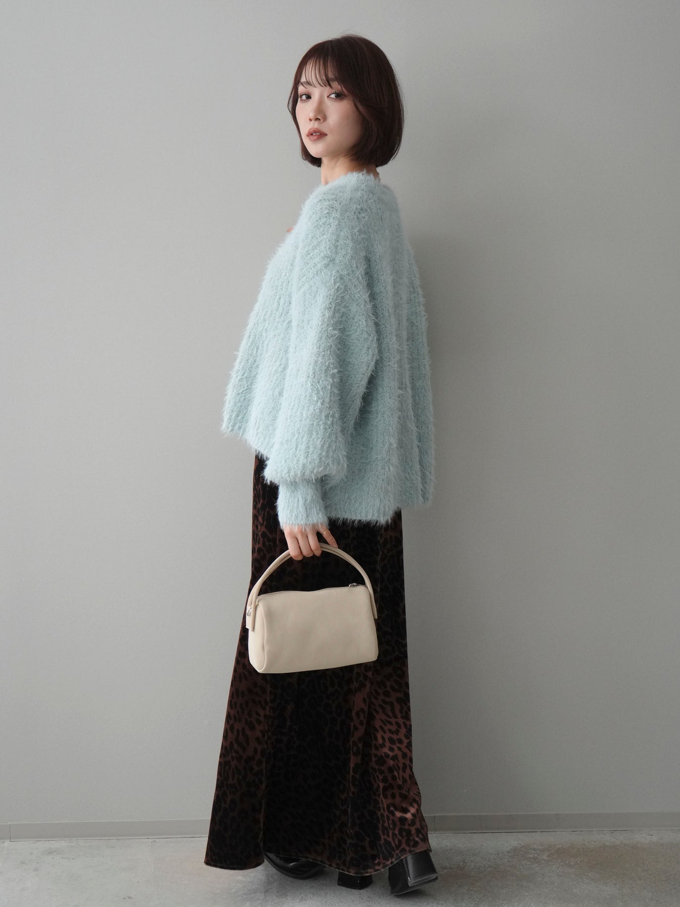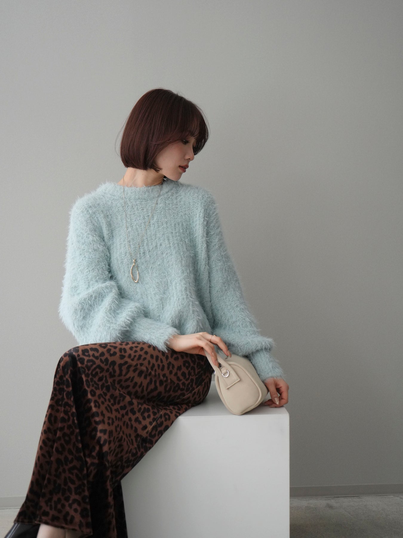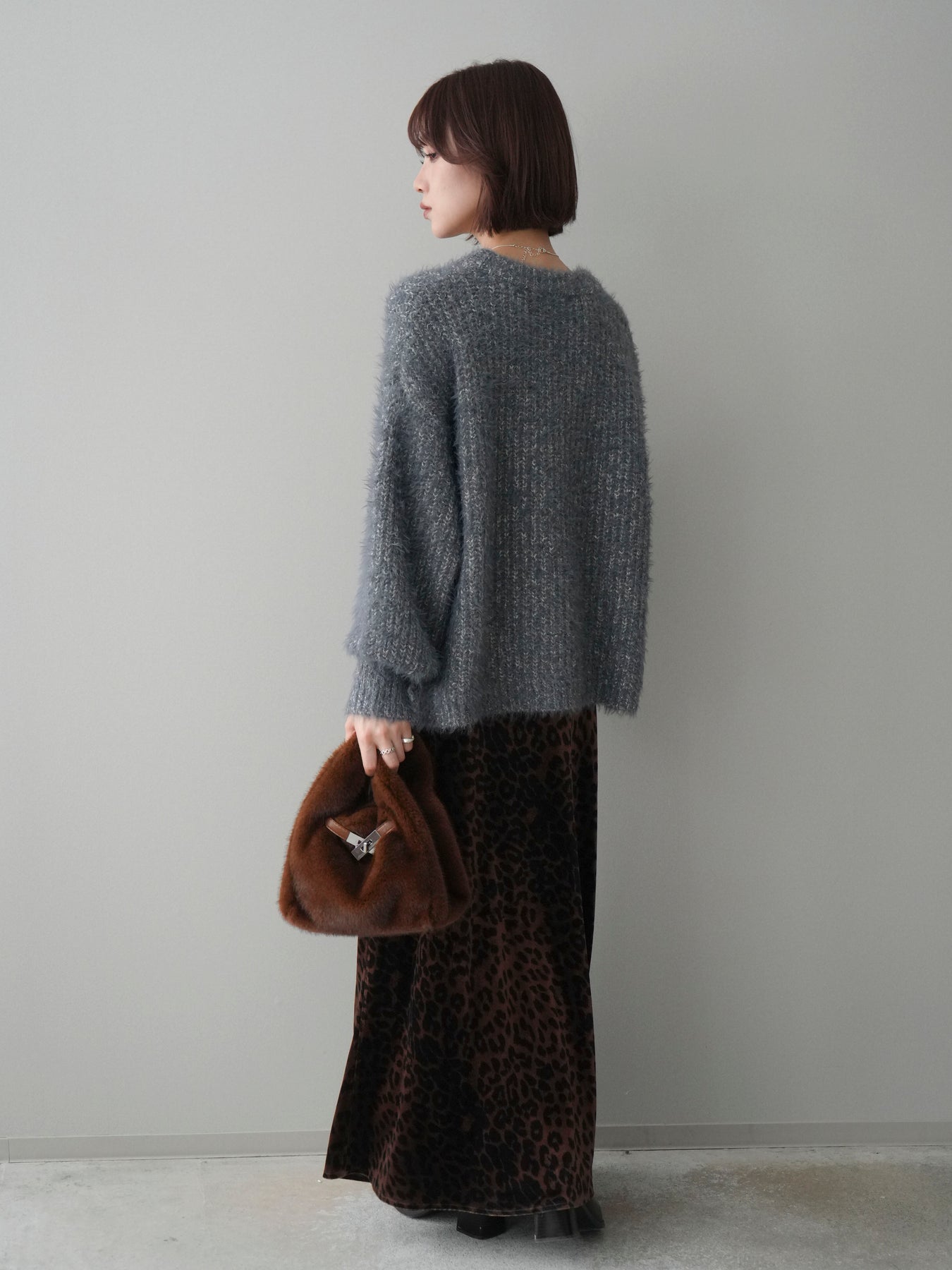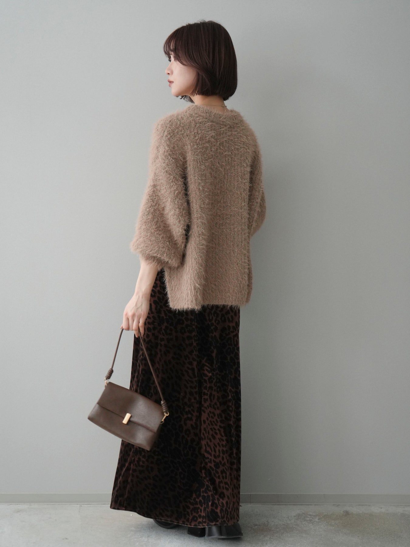 [SET]ボリュームスリーブシャギー MIXニットプルオーバー+レオパードベロアナロースカート(2set)