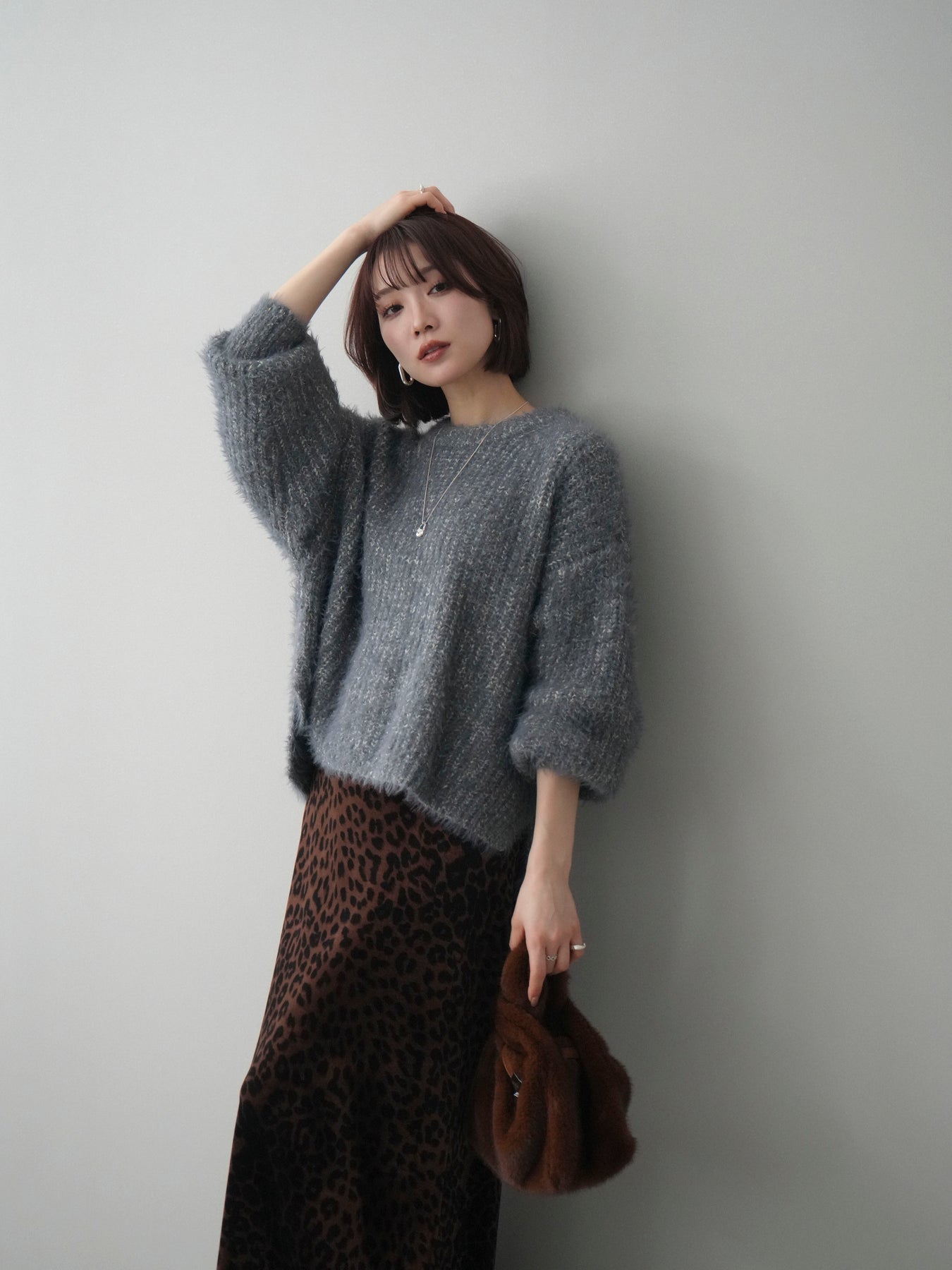 ◆ [予約]ボリュームスリーブシャギー MIXニットプルオーバー