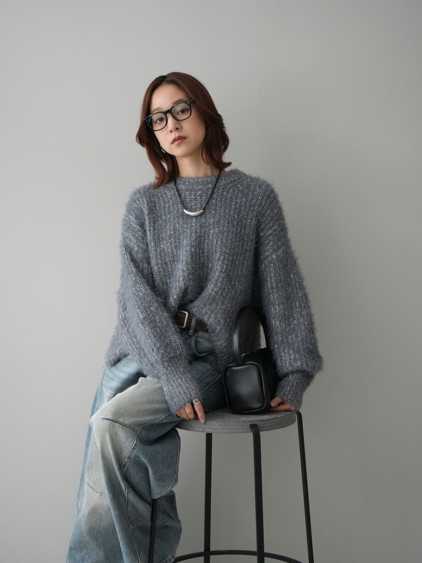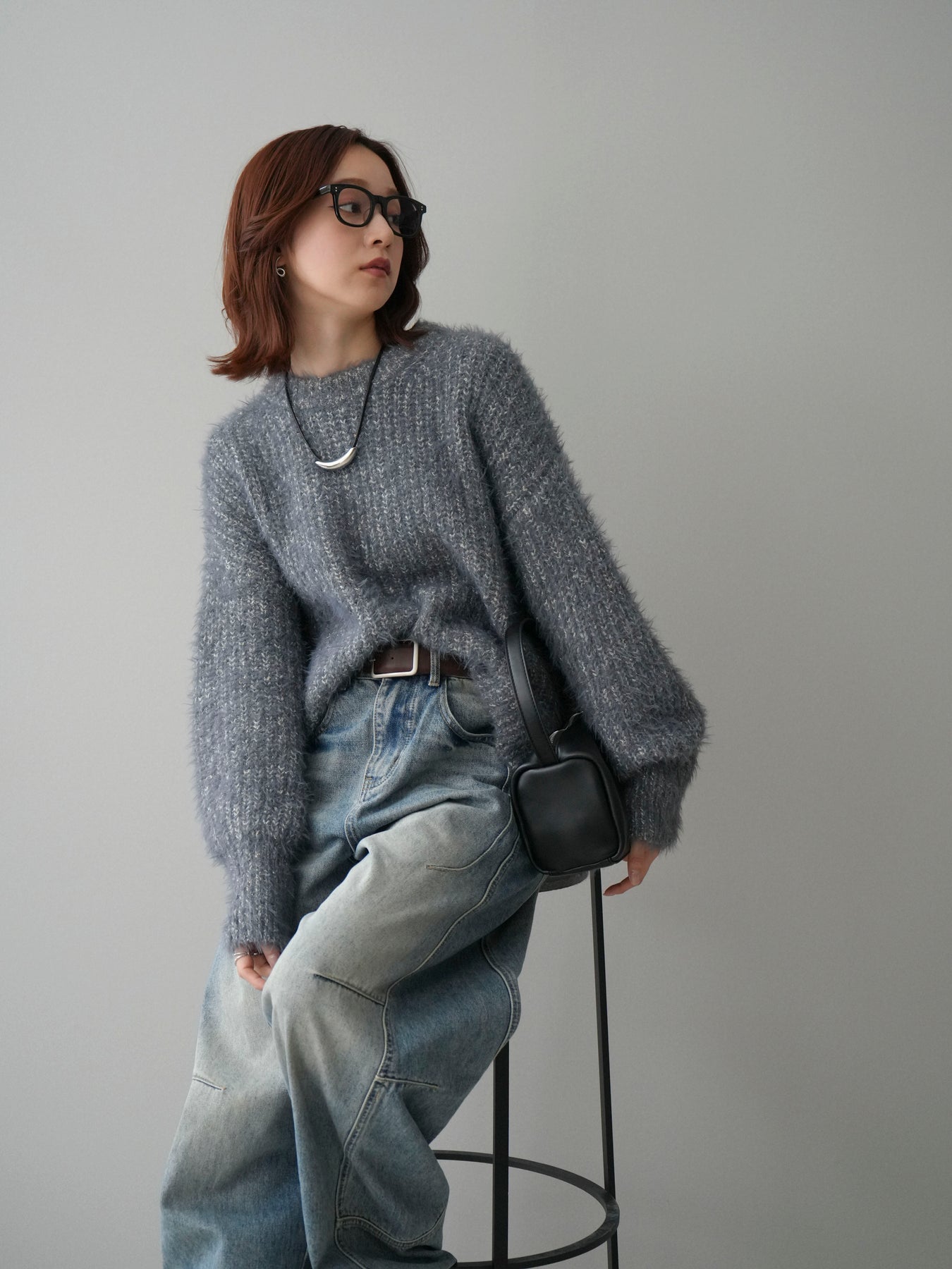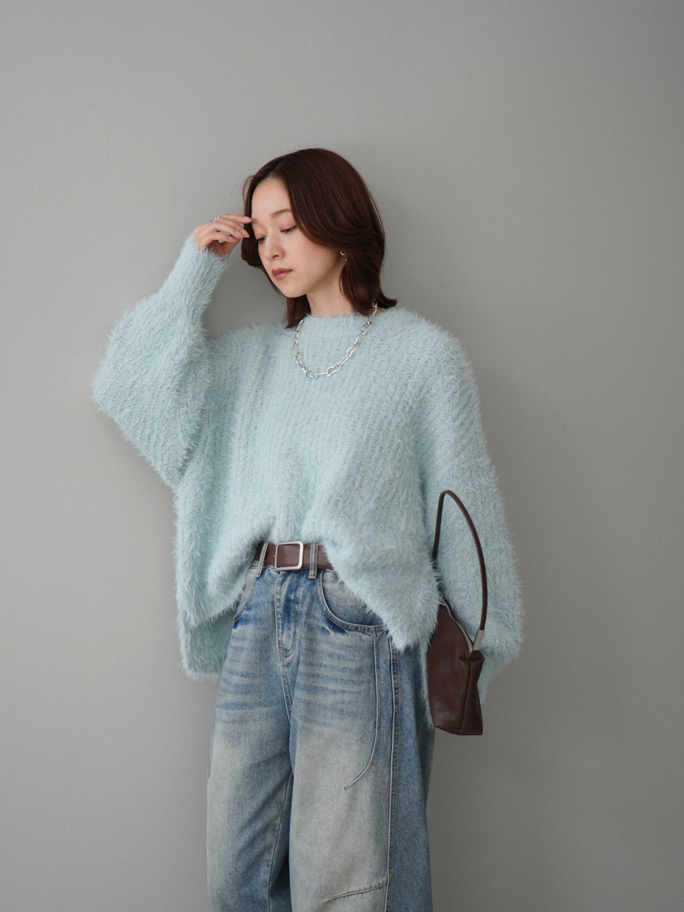 ◆ [予約]ボリュームスリーブシャギー MIXニットプルオーバー