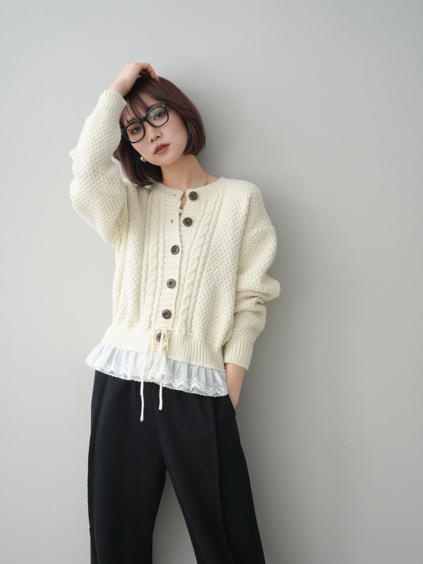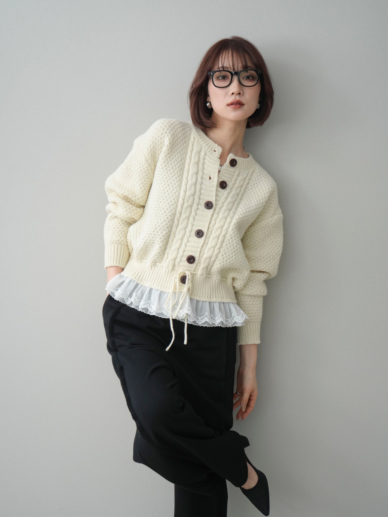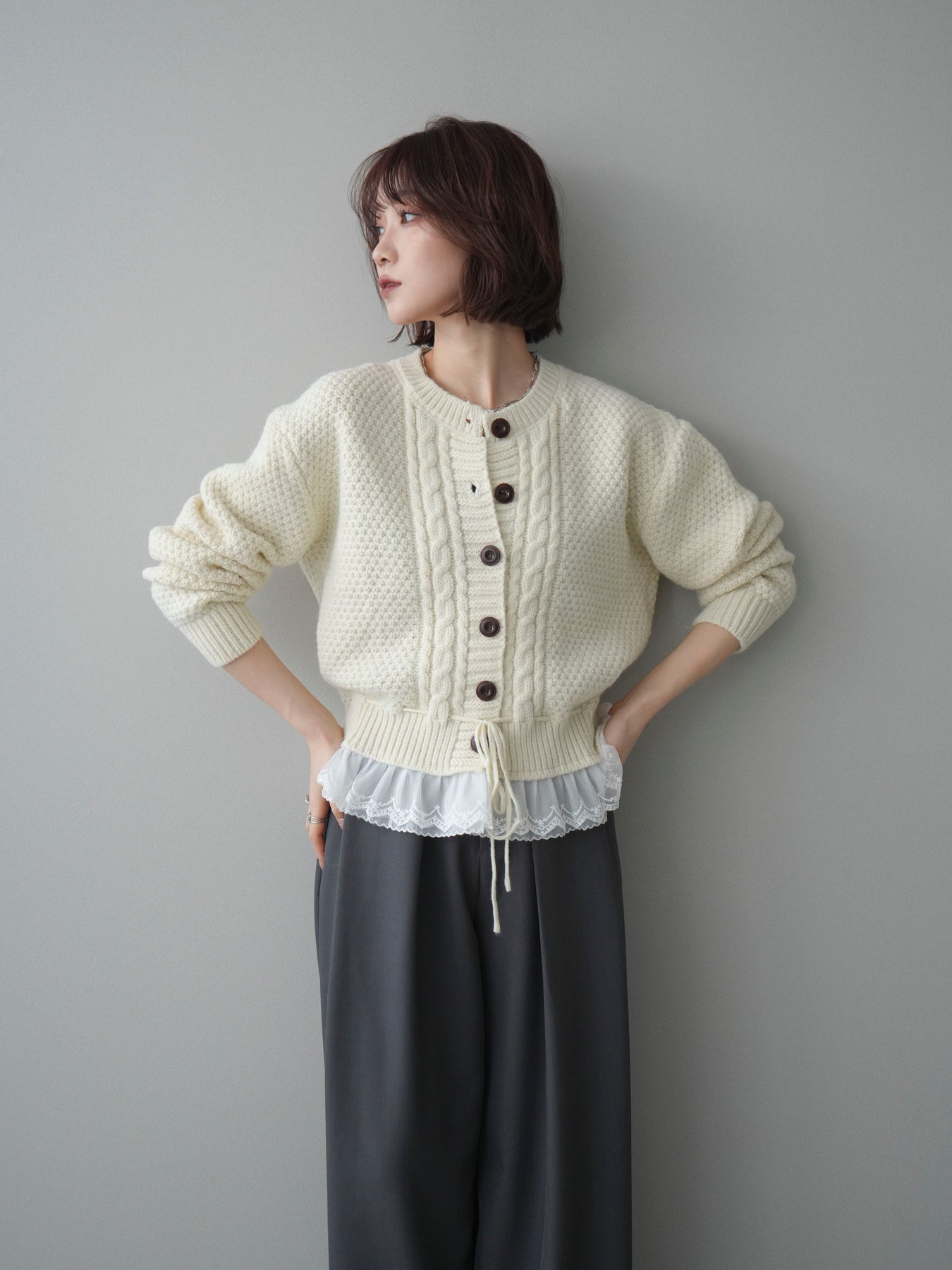 [予約]裾レースケーブルニットカーディガン + [予約]裾レースケーブルニットカーディガン