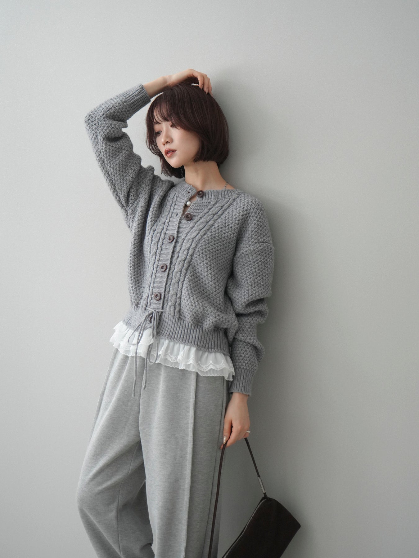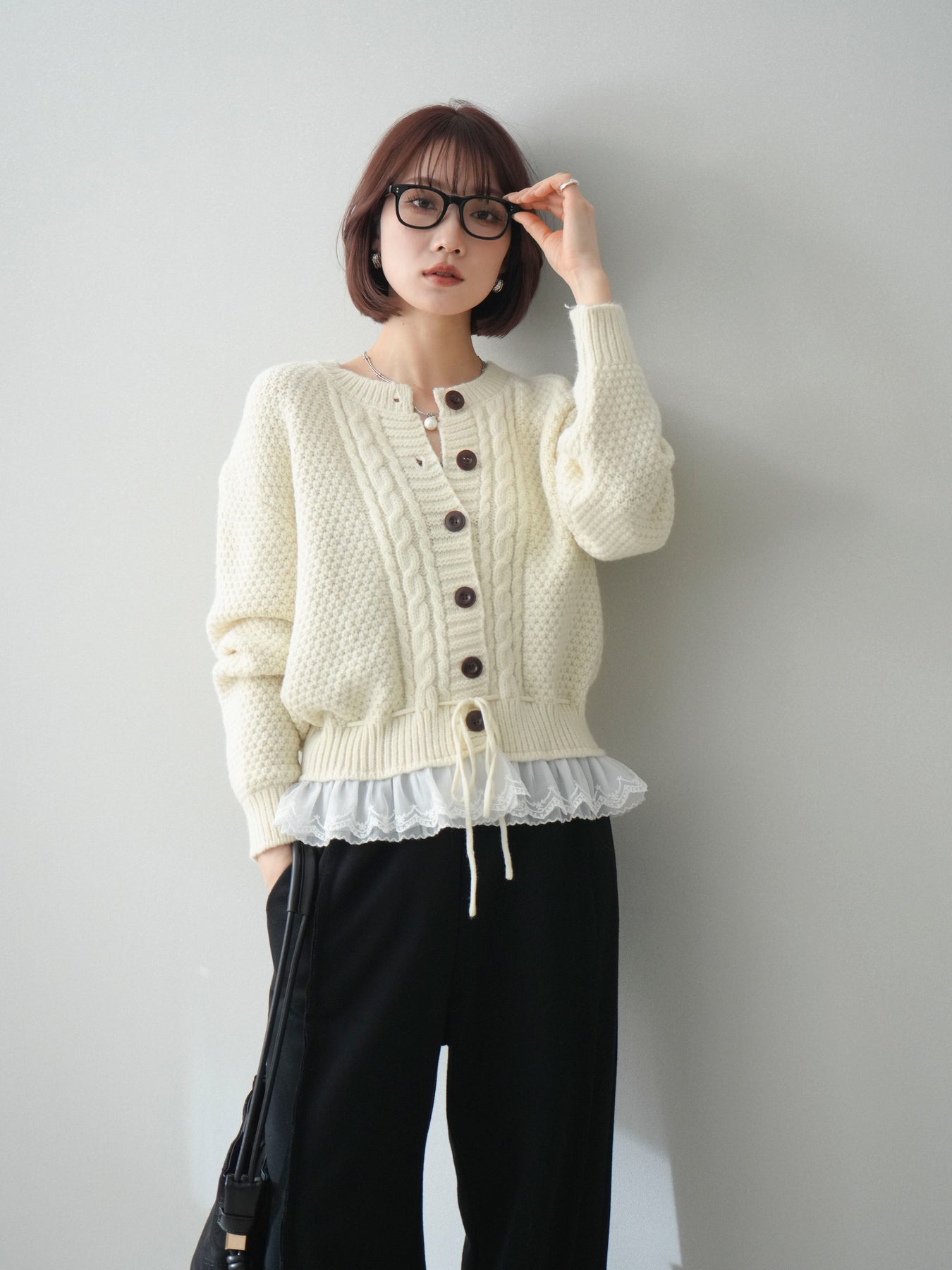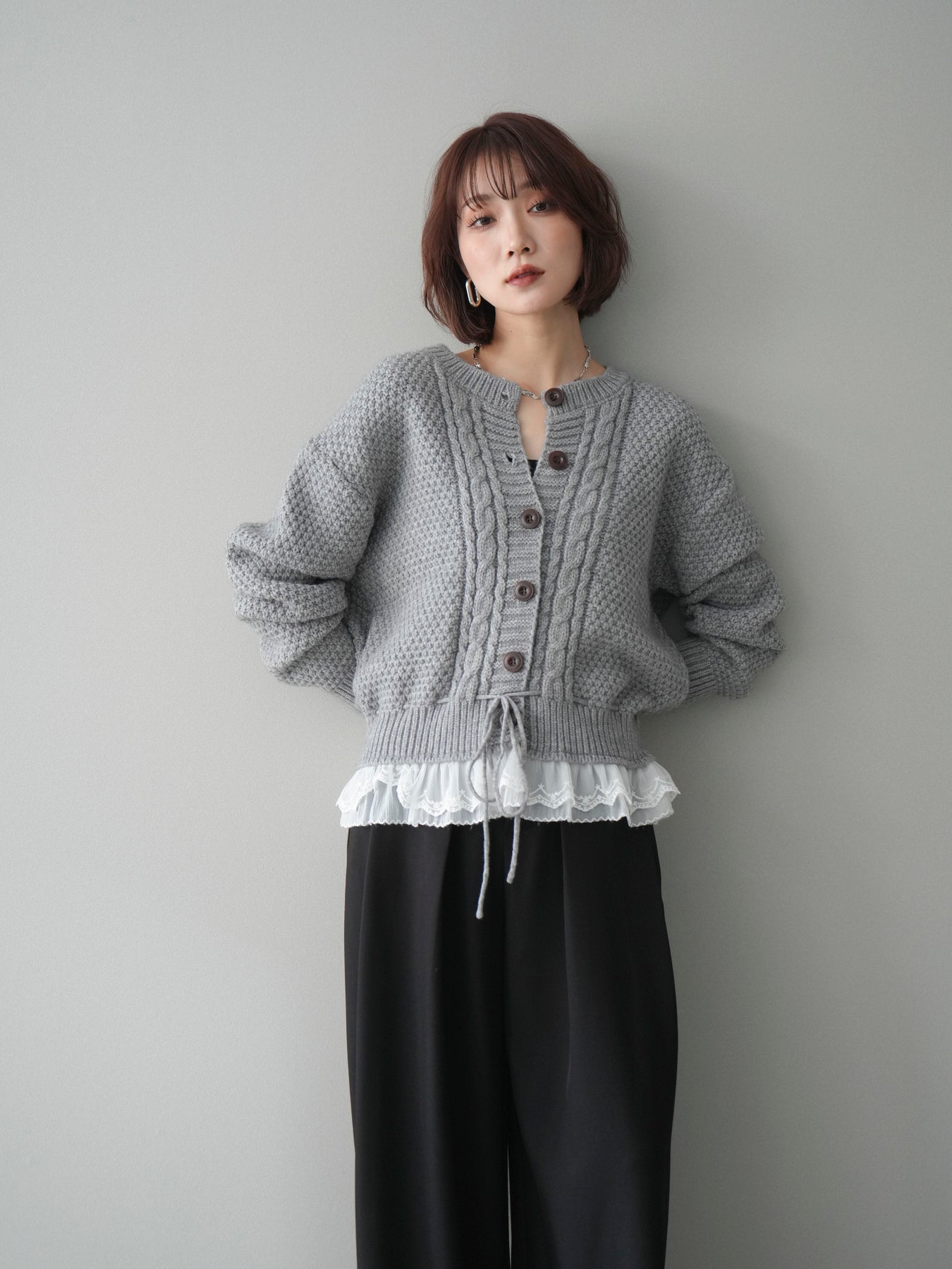 [予約]裾レースケーブルニットカーディガン + [予約]裾レースケーブルニットカーディガン