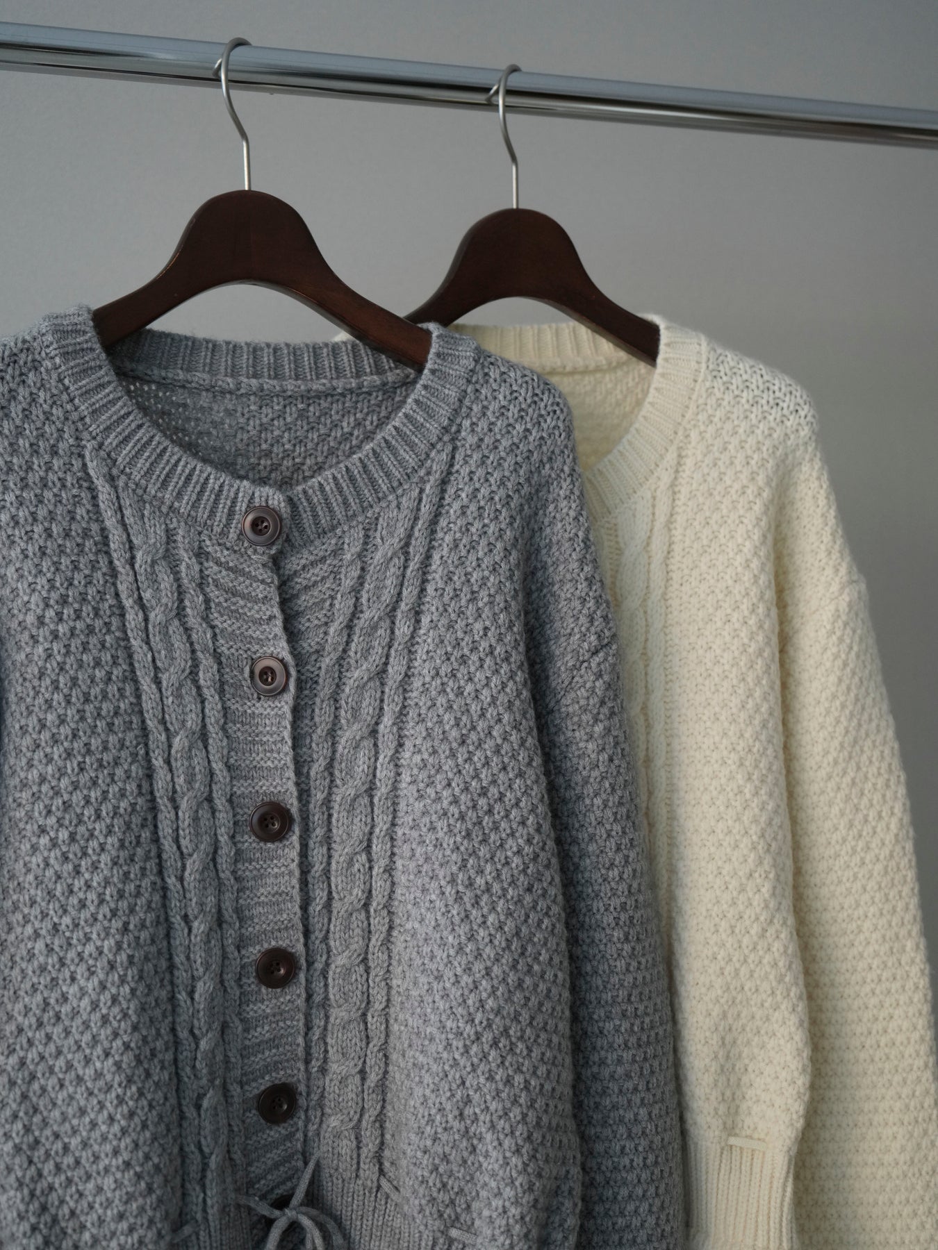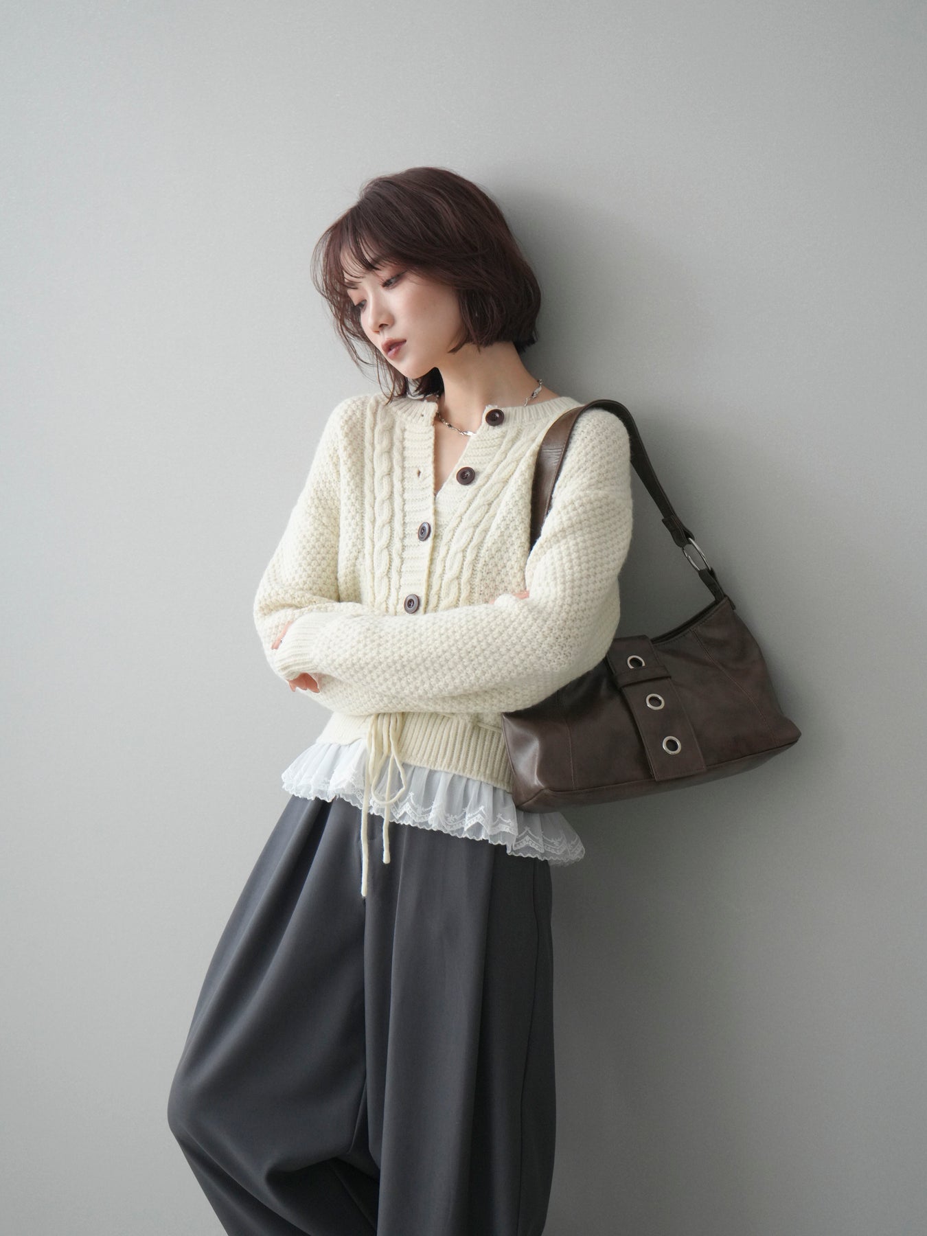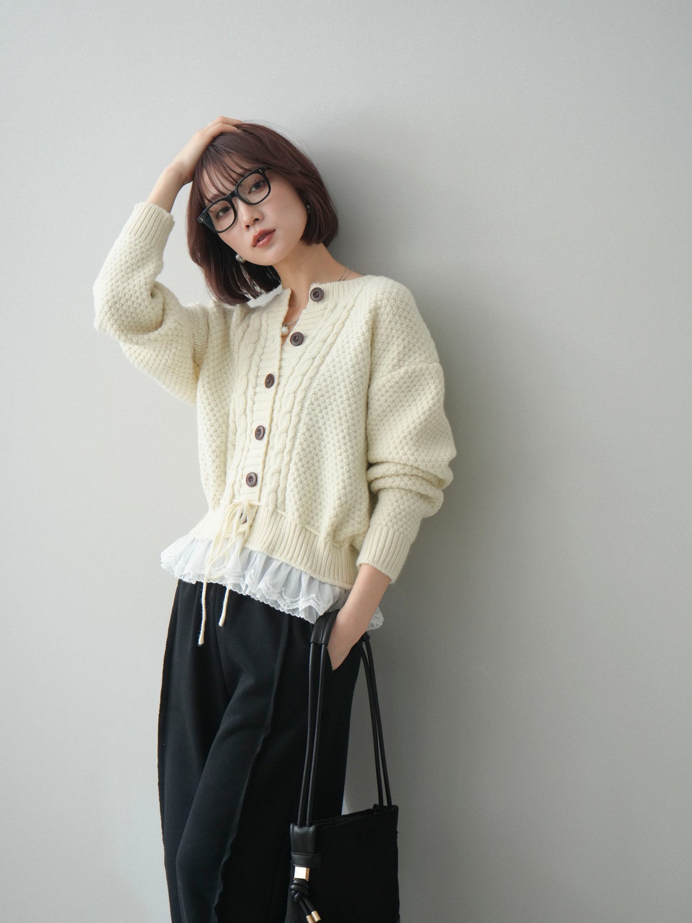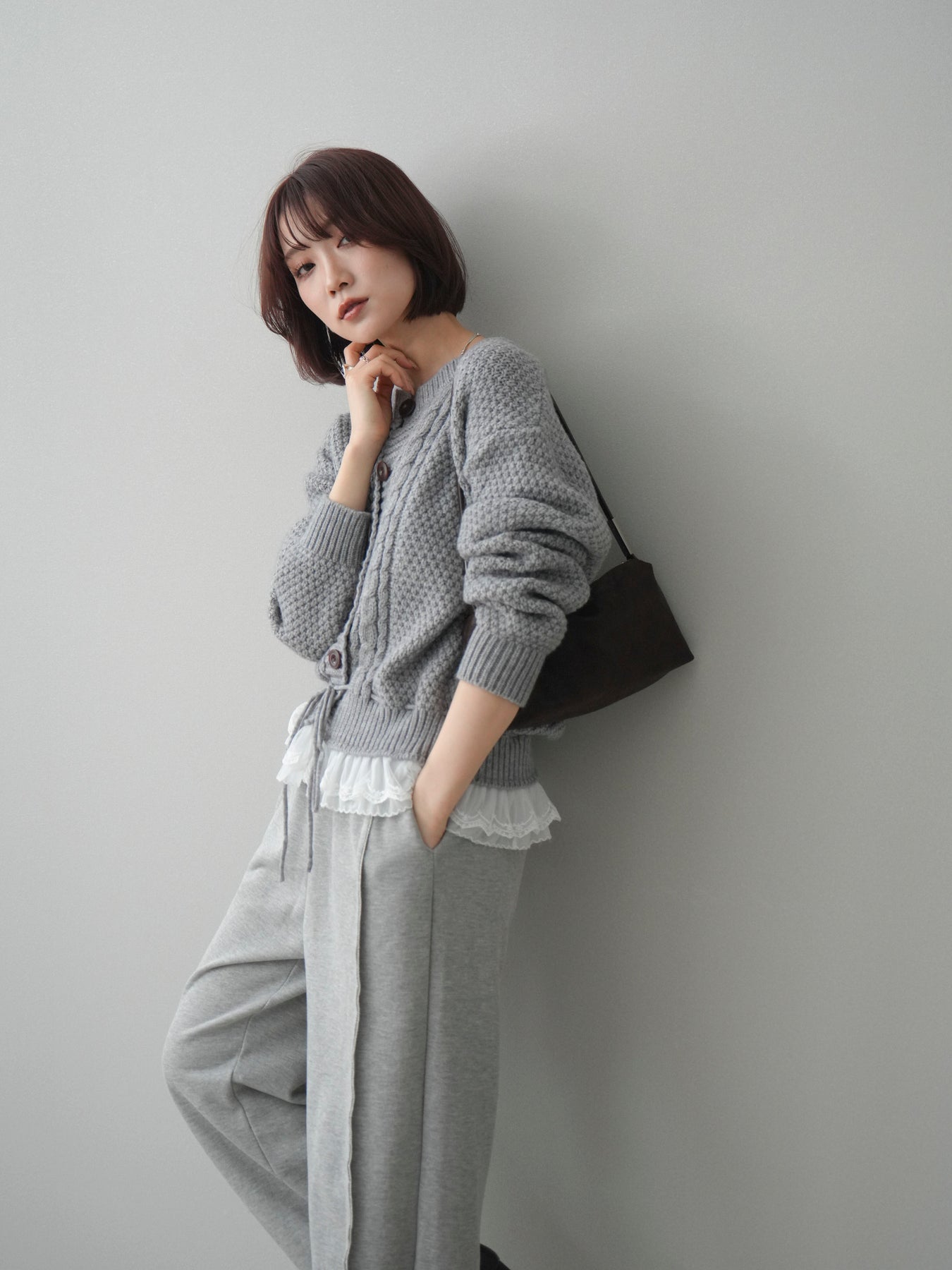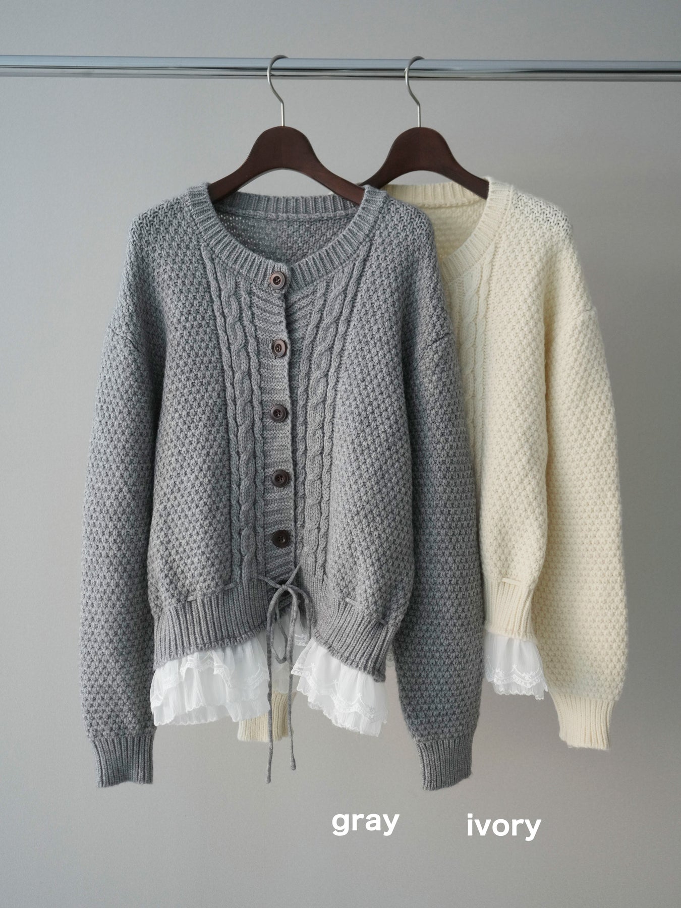 [SET]裾レースケーブルニットカーディガン+裾レースケーブルニットカーディガン(2set)