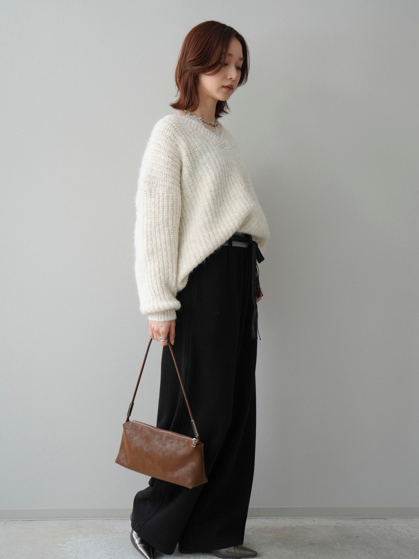 ・お手入れ方法:水温30℃以下手洗い優しく押し洗いでのお洗濯をお薦めします。素材の特性上、洗濯の際に毛抜け・色落ち・縮みが生じる恐れがありますので単独で・短時間でのお洗濯をお薦めします。裏返してネットに入れ手洗いコースで洗濯、洗濯後は形を整えてから干してください。※タンブラー乾燥は控えてください。 濡れたままの状態で擦れると、色落ち色移りすることがあります。つけ置き洗いや雨や汗で濡れたまま放置は避け、速やかに処理してください。着用中の摩擦や汗、水濡れ、濃淡差があるものとの重ね着にご注意ください。 また、素材の特性上伸びやすい為ハンガーの使用はお控えいただき畳んで保管ください。