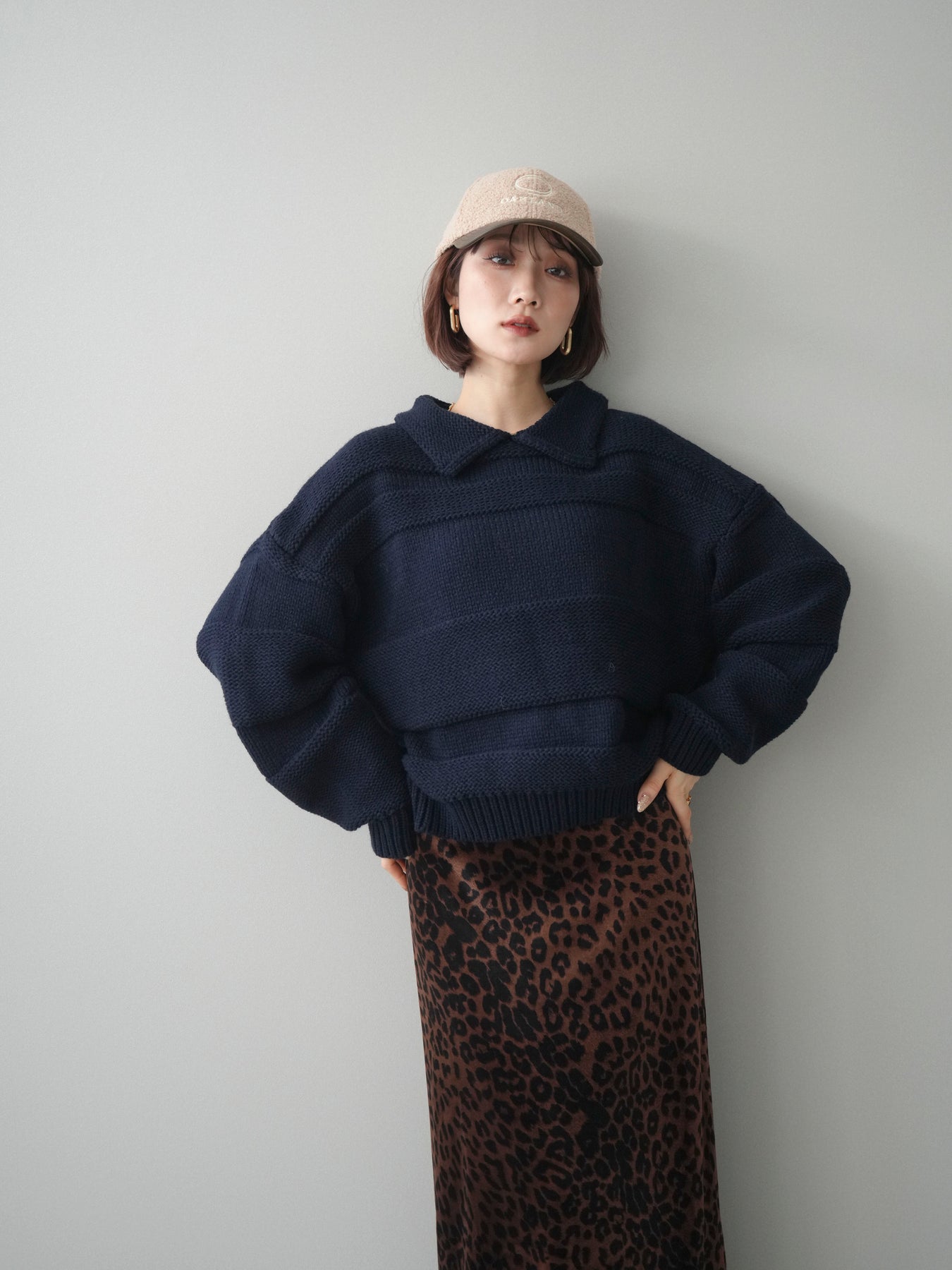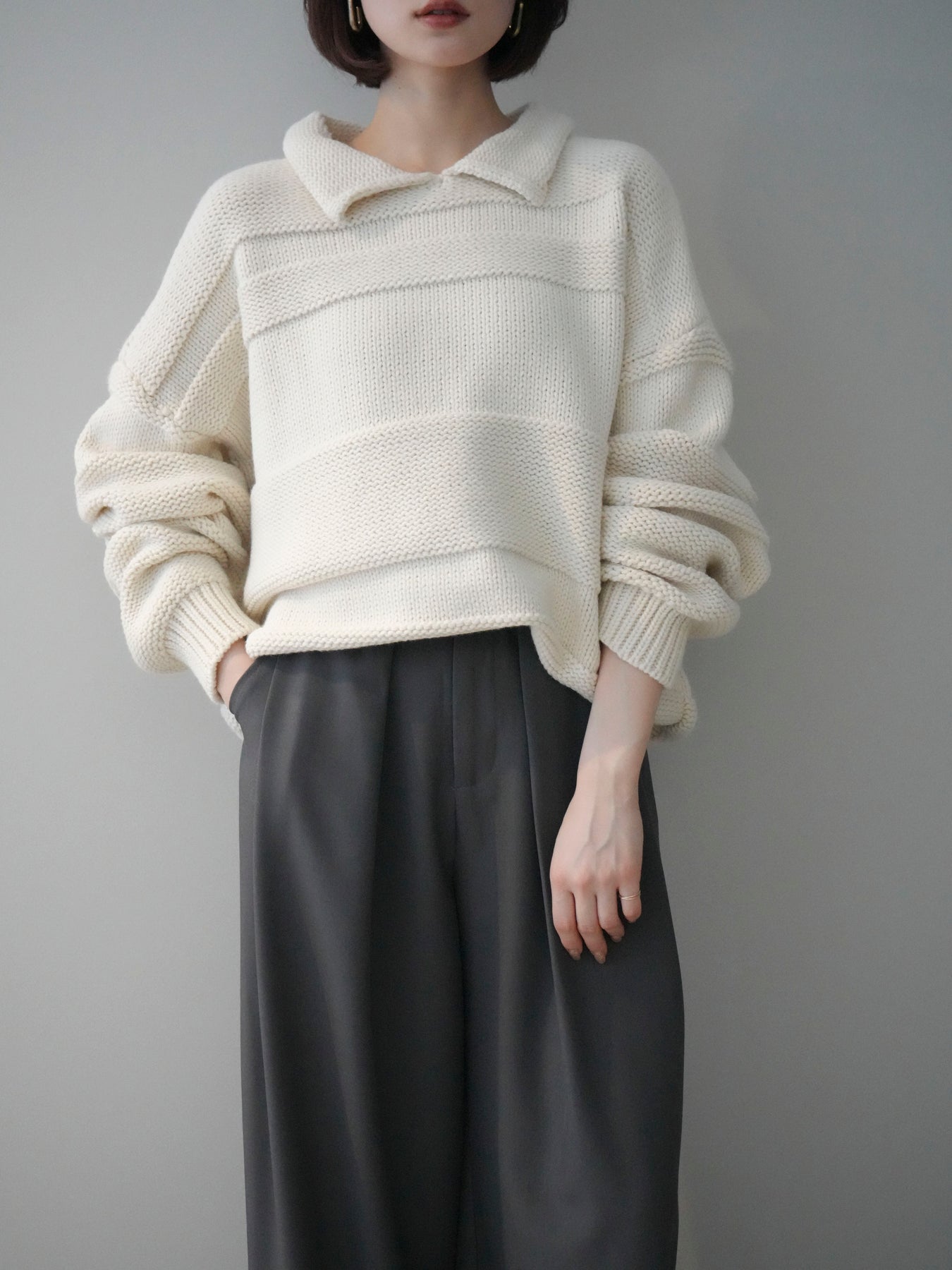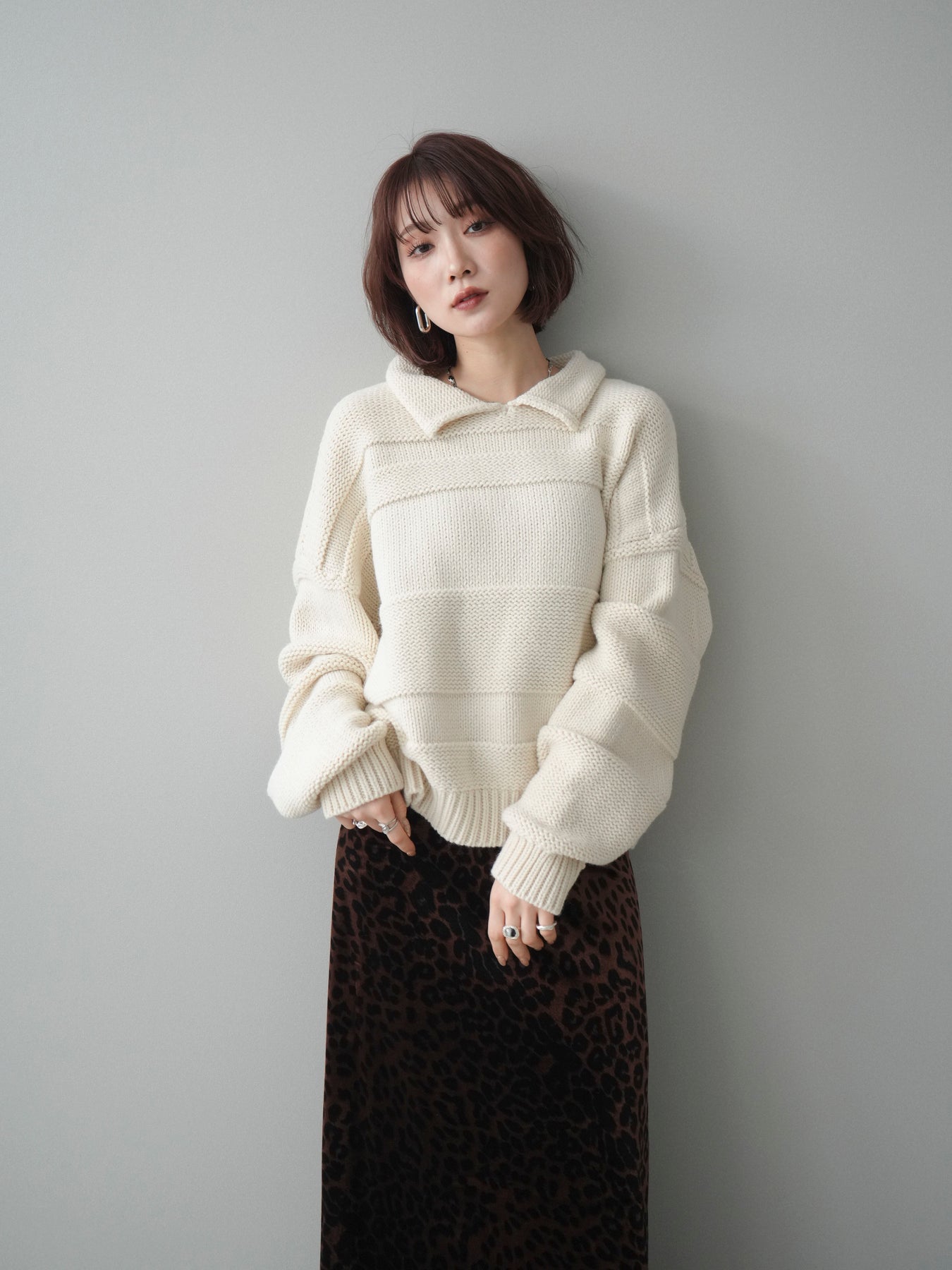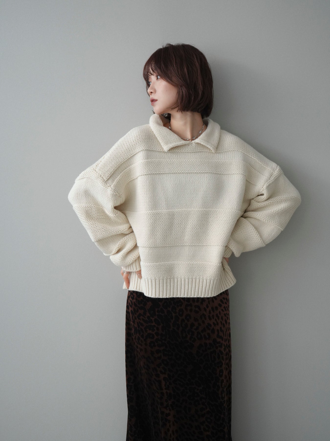 ◆ [予約]襟付きボーダー編みニットプルオーバー
