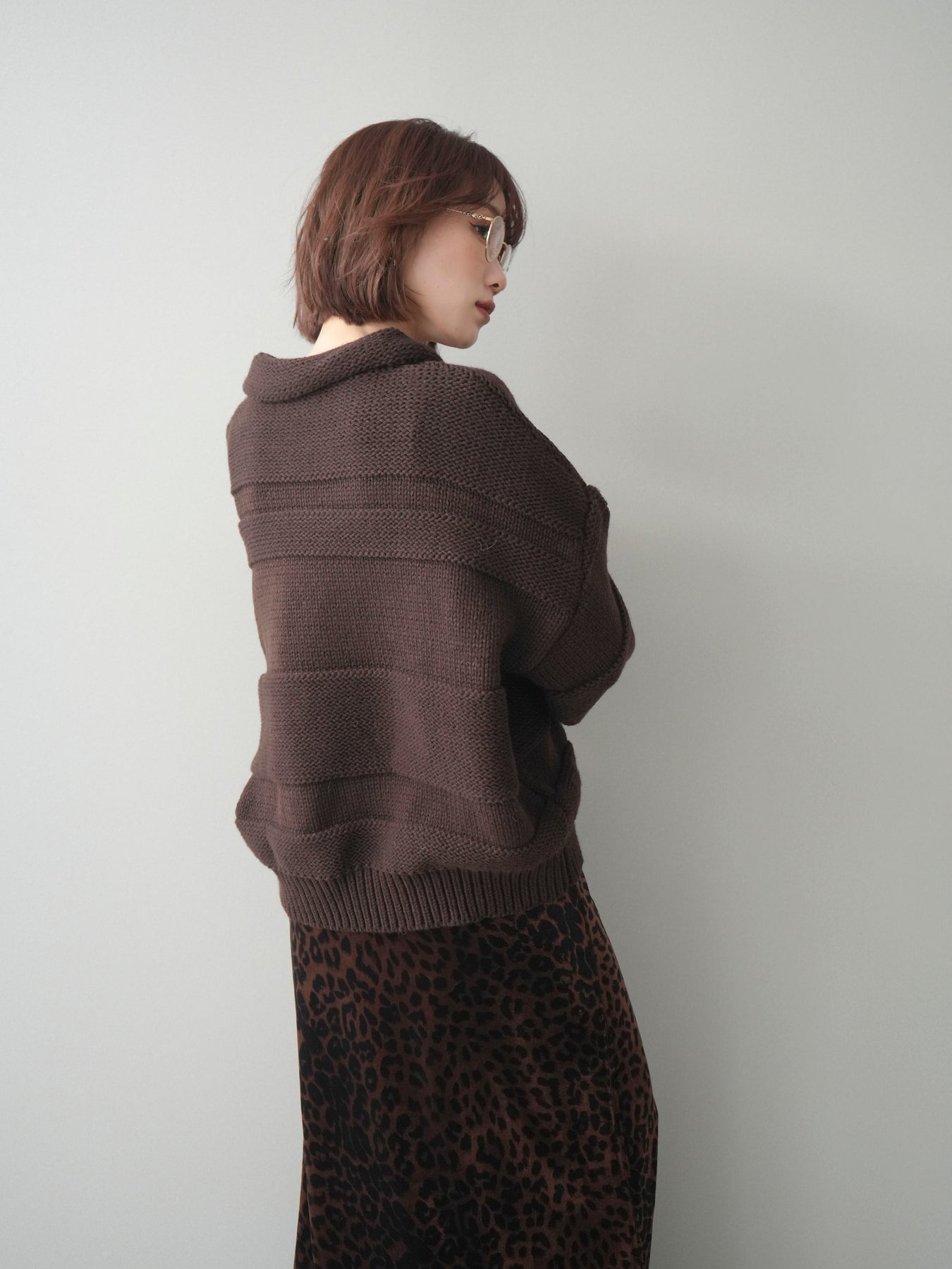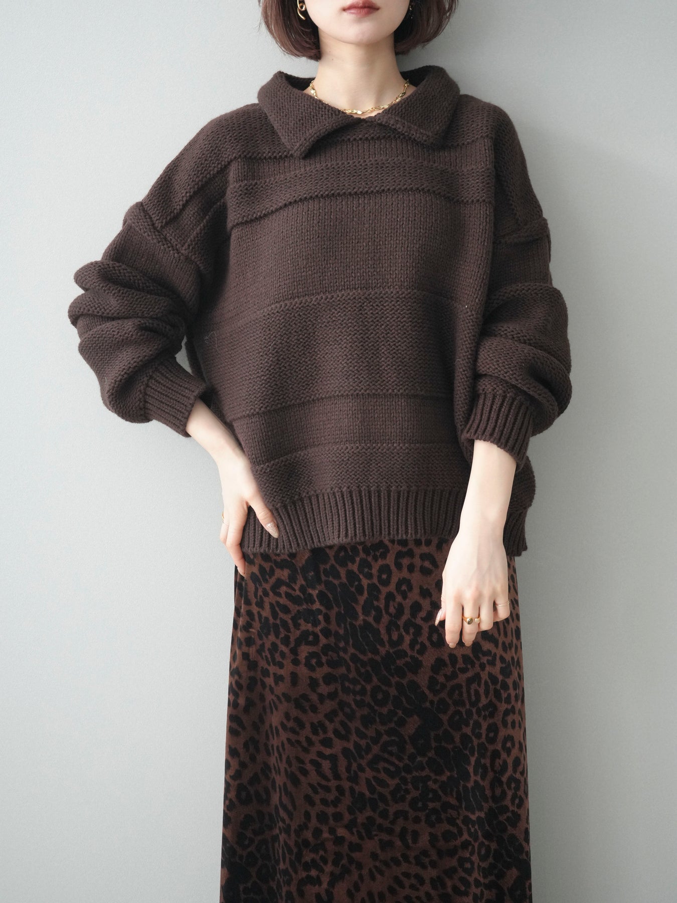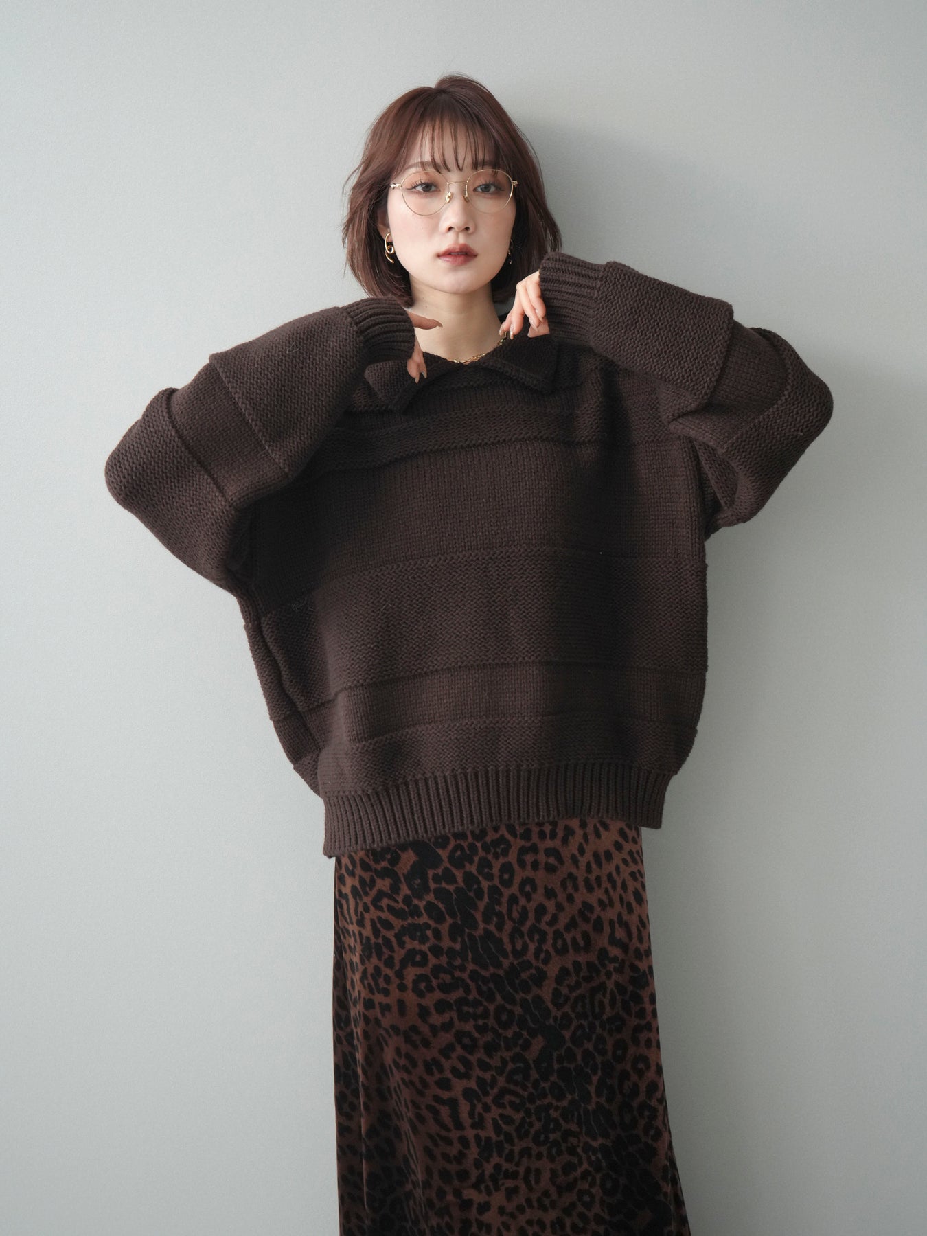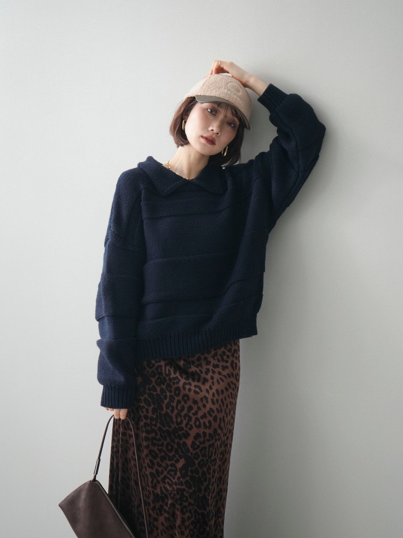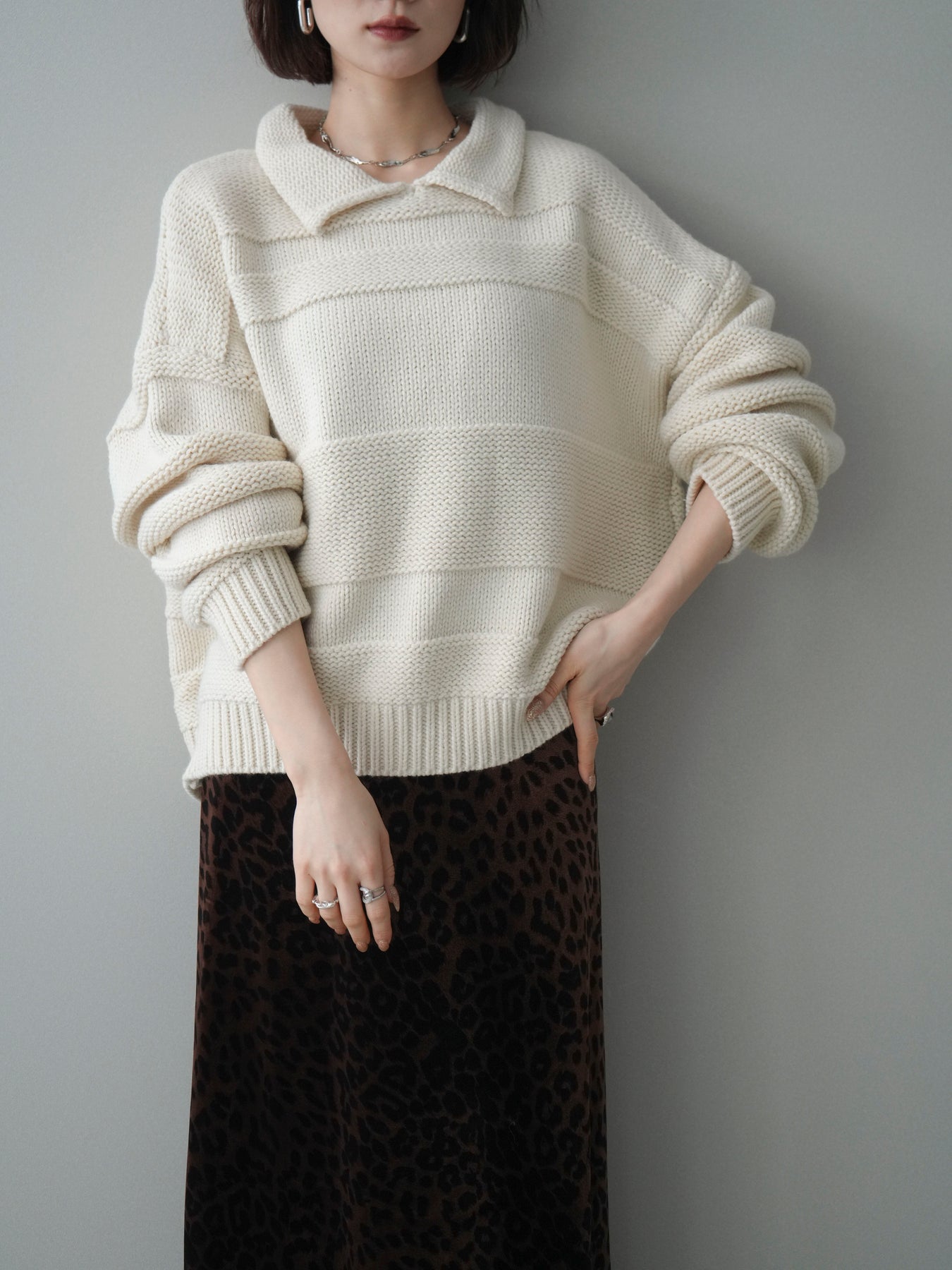 ◆ [予約]襟付きボーダー編みニットプルオーバー