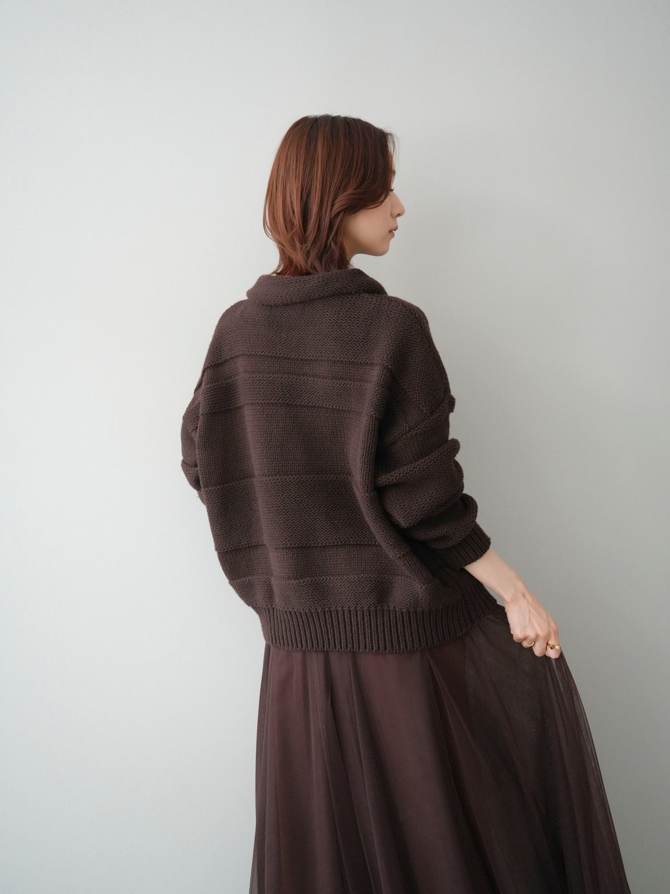 [予約]襟付きボーダー編みニットプルオーバー