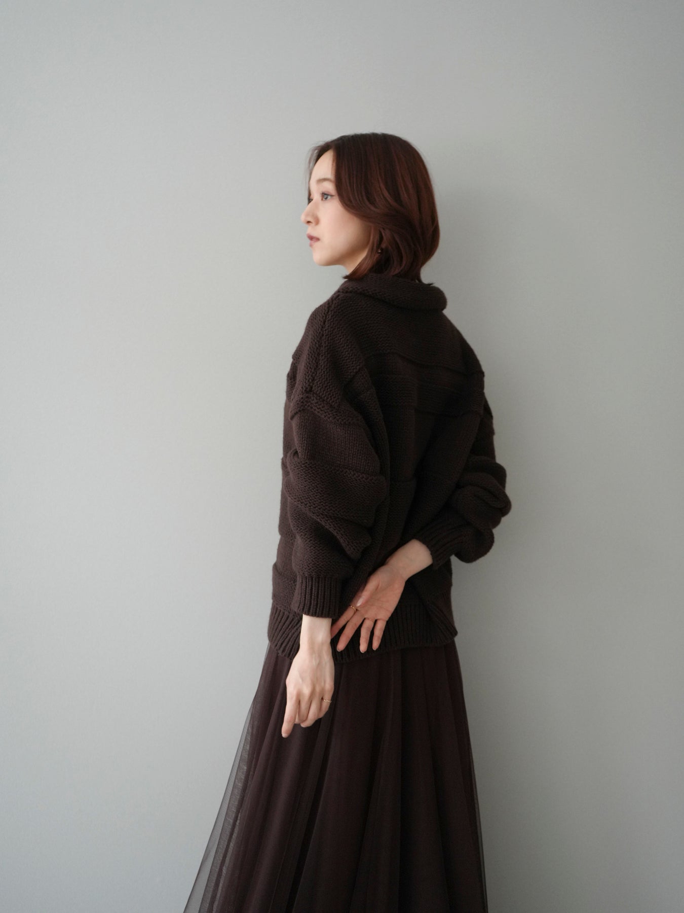 ・お手入れ方法:水温30℃以下手洗い優しく押し洗いでのお洗濯をお薦めします。素材の特性上、洗濯の際に毛抜け・色落ち・縮みが生じる恐れがありますので単独で・短時間でのお洗濯をお薦めします。裏返してネットに入れ手洗いコースで洗濯、洗濯後は形を整えてから干してください。※タンブラー乾燥は控えてください。 濡れたままの状態で擦れると、色落ち色移りすることがあります。つけ置き洗いや雨や汗で濡れたまま放置は避け、速やかに処理してください。着用中の摩擦や汗、水濡れ、濃淡差があるものとの重ね着にご注意ください。 また、素材の特性上伸びやすい為ハンガーの使用はお控えいただき畳んで保管ください。