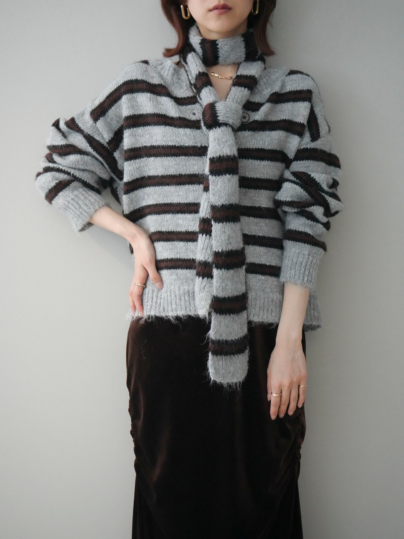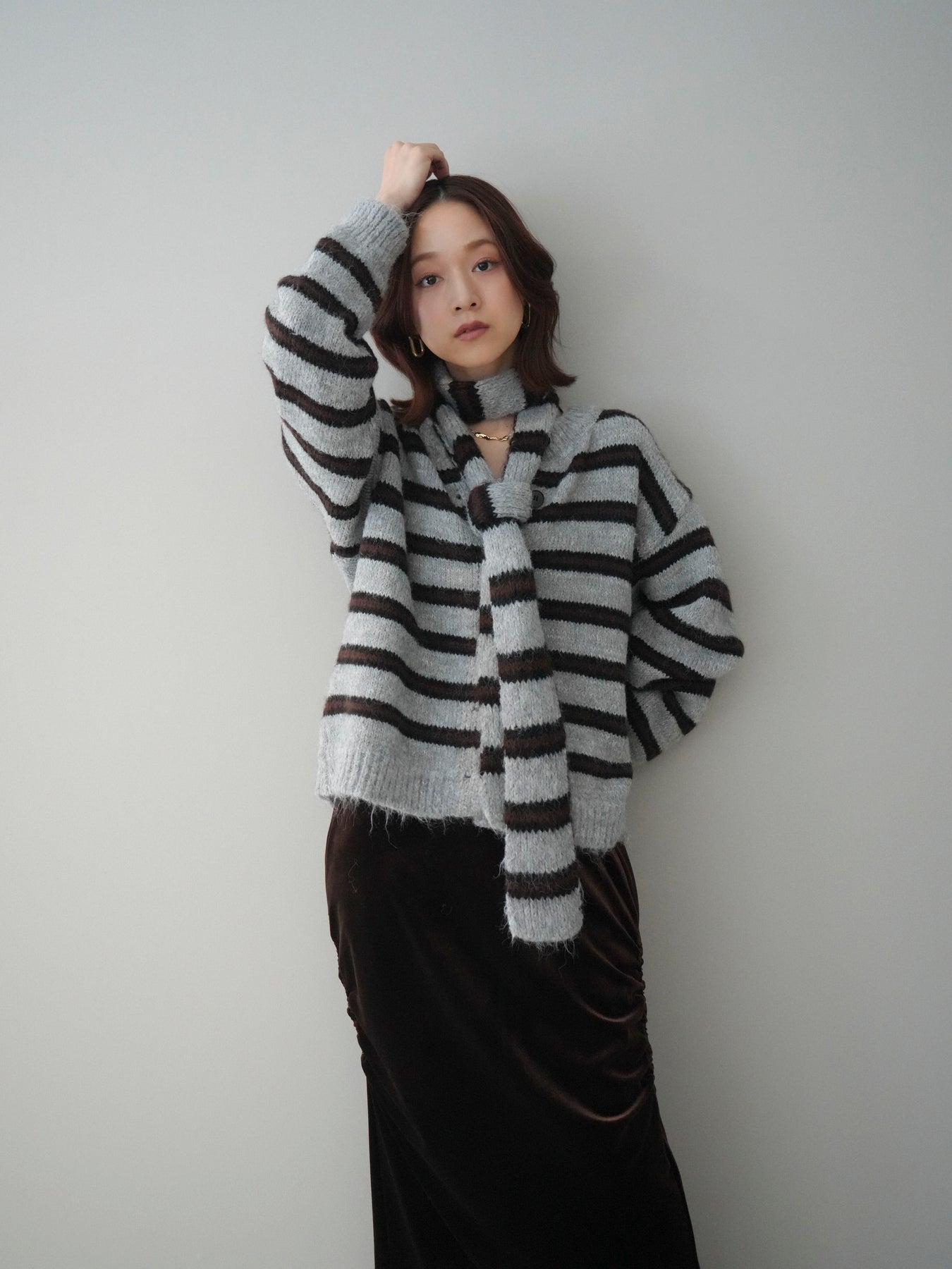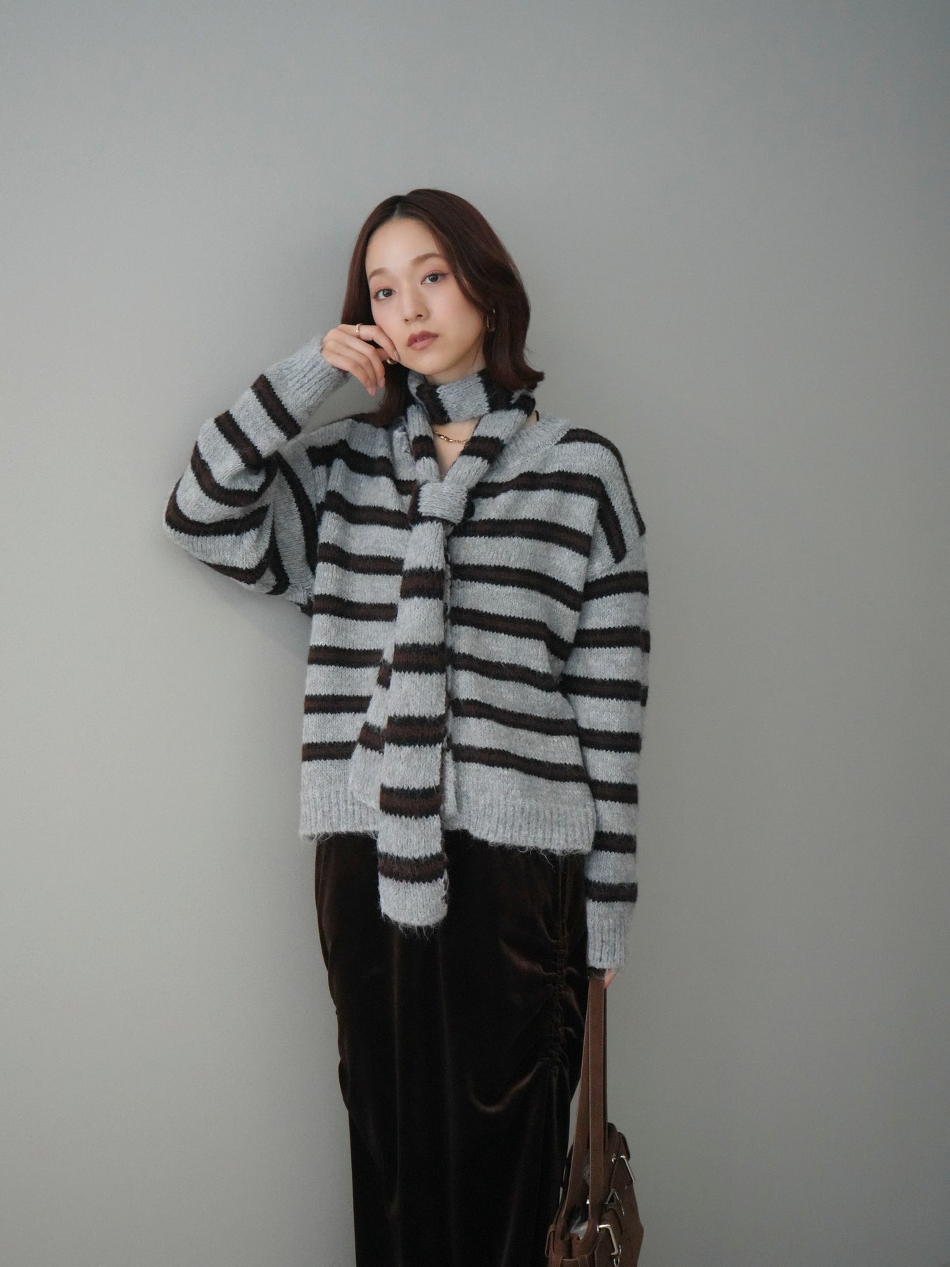 ◆ [予約]ボウタイ付きボーダーニットプルオーバー