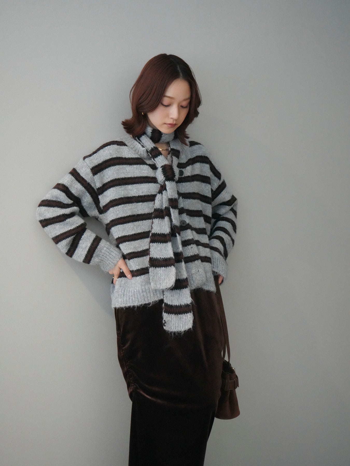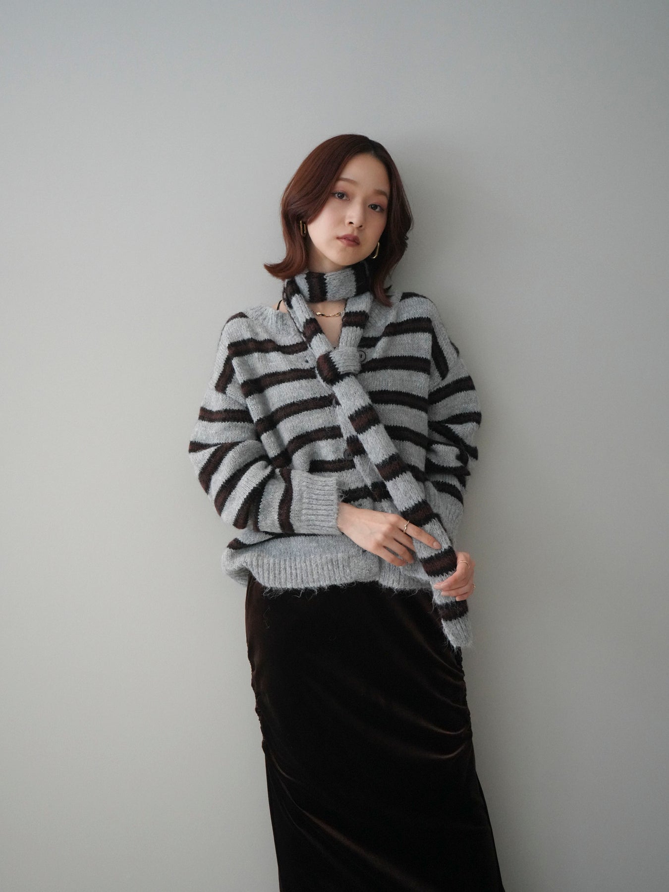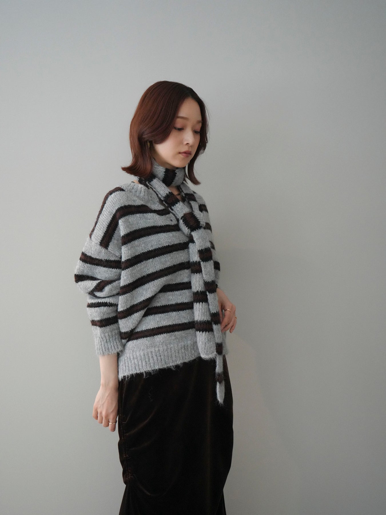 ◆ [予約]ボウタイ付きボーダーニットプルオーバー