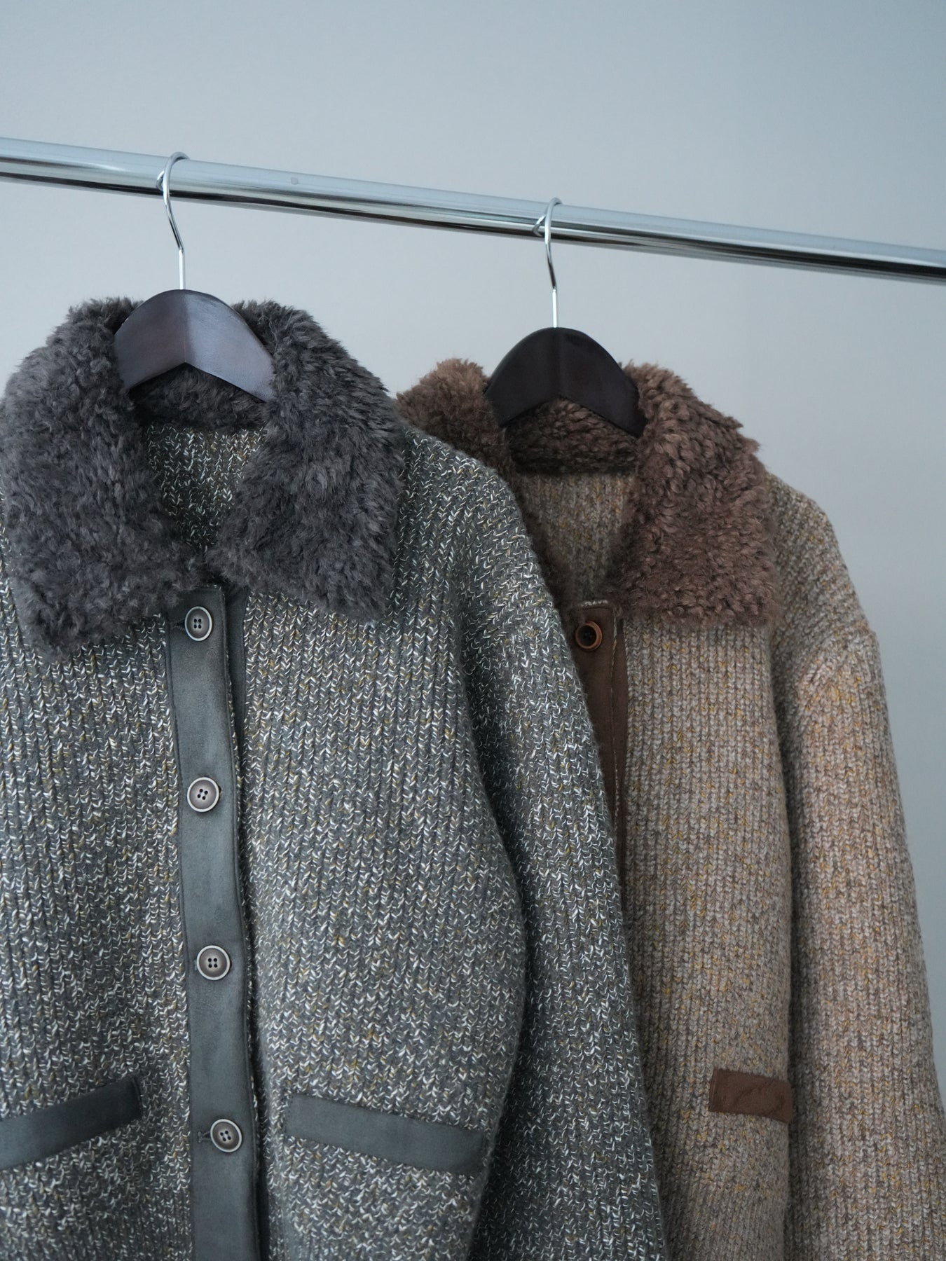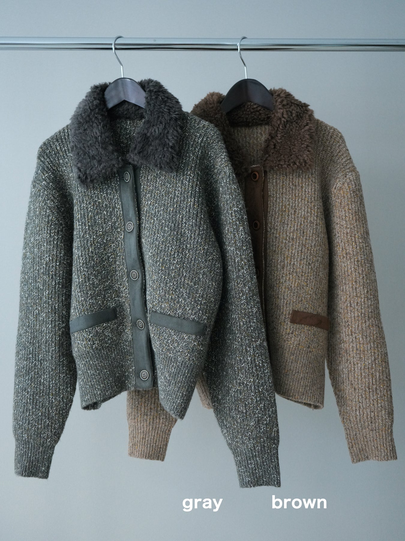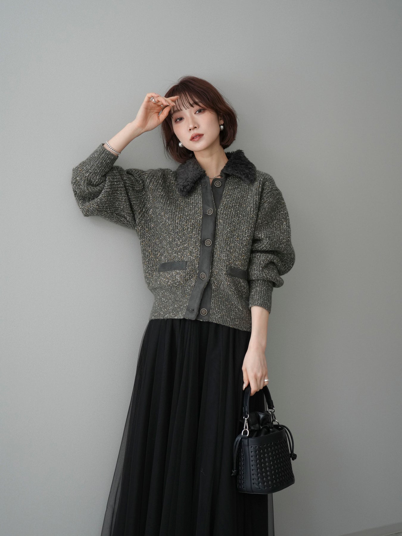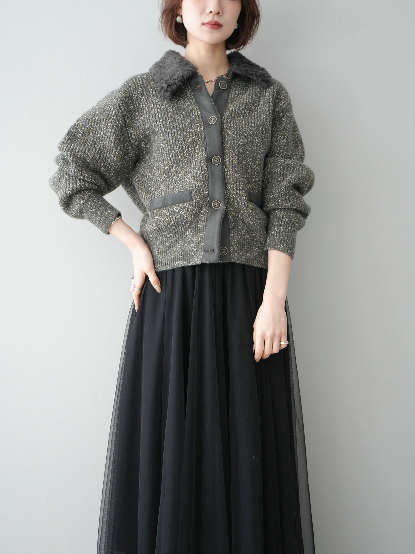 ◆ [予約]襟ボアミックスヤーンニットカーディガン
