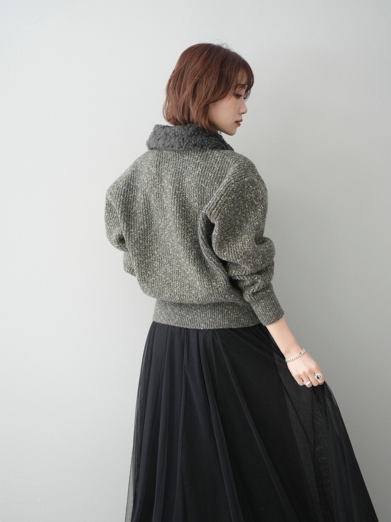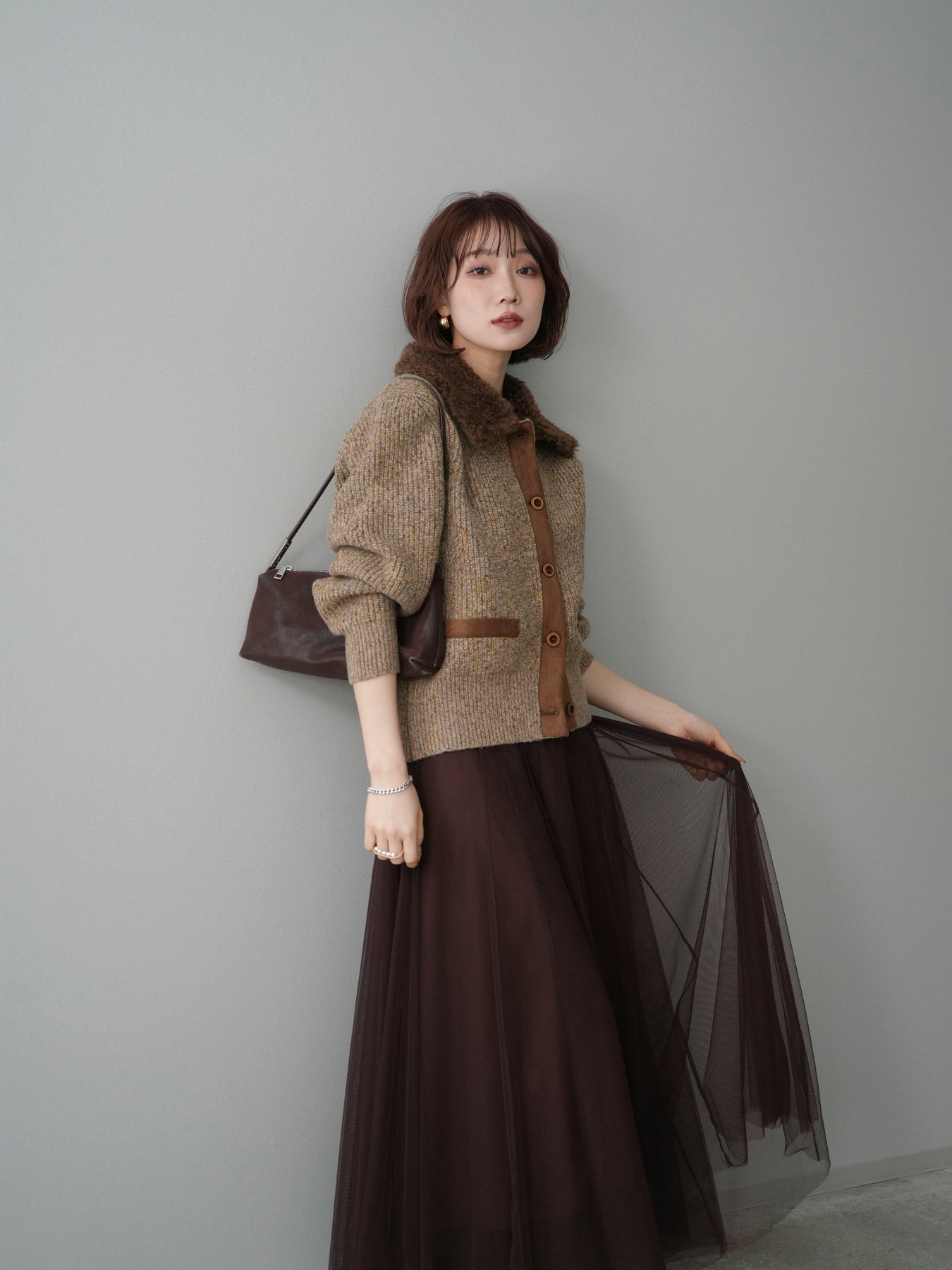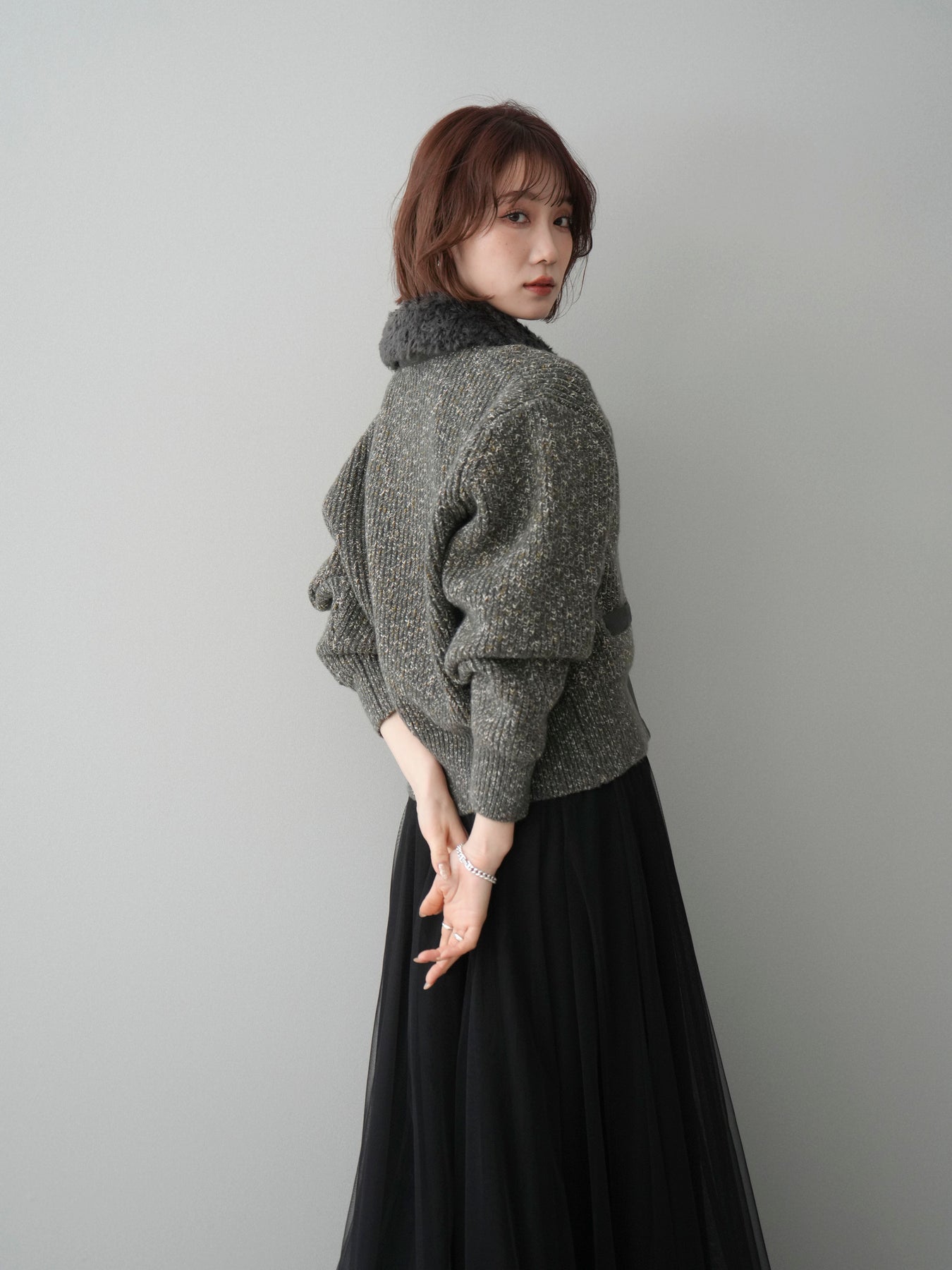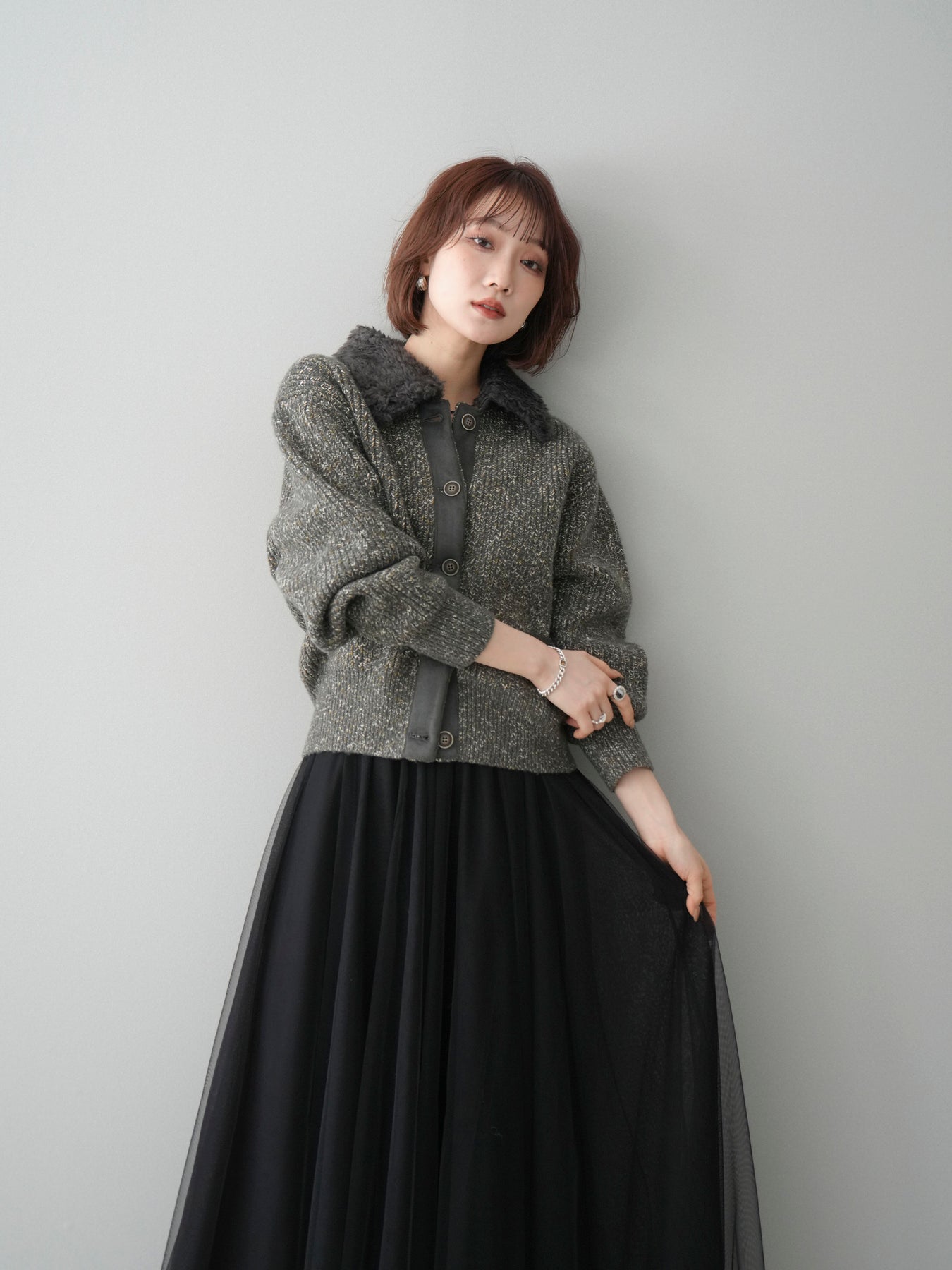 ◆ [予約]襟ボアミックスヤーンニットカーディガン