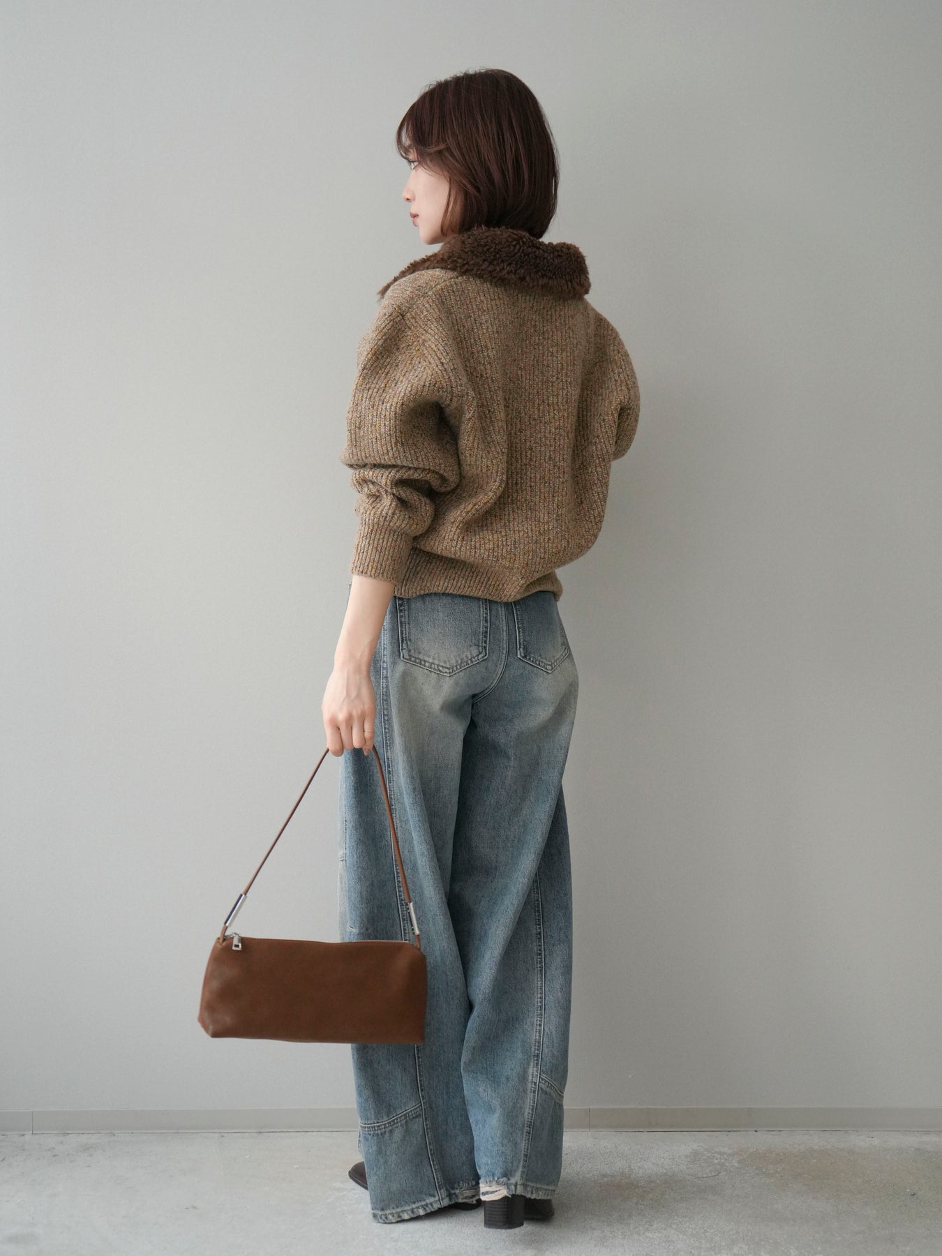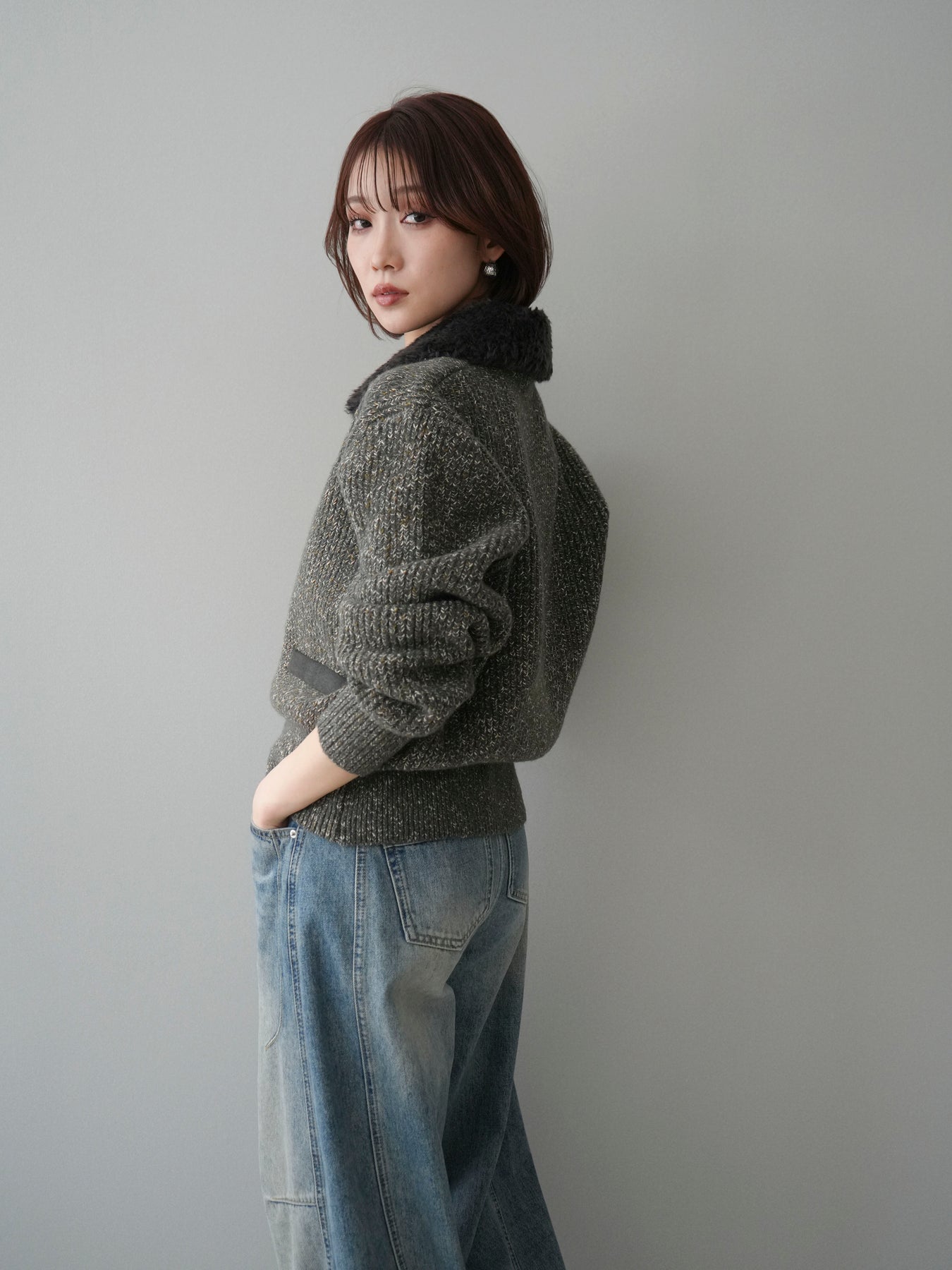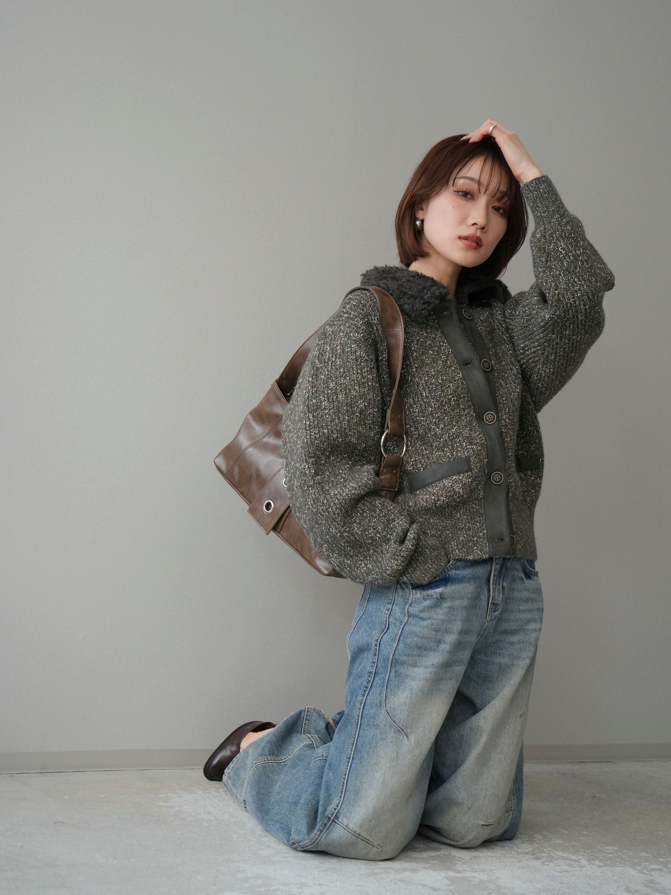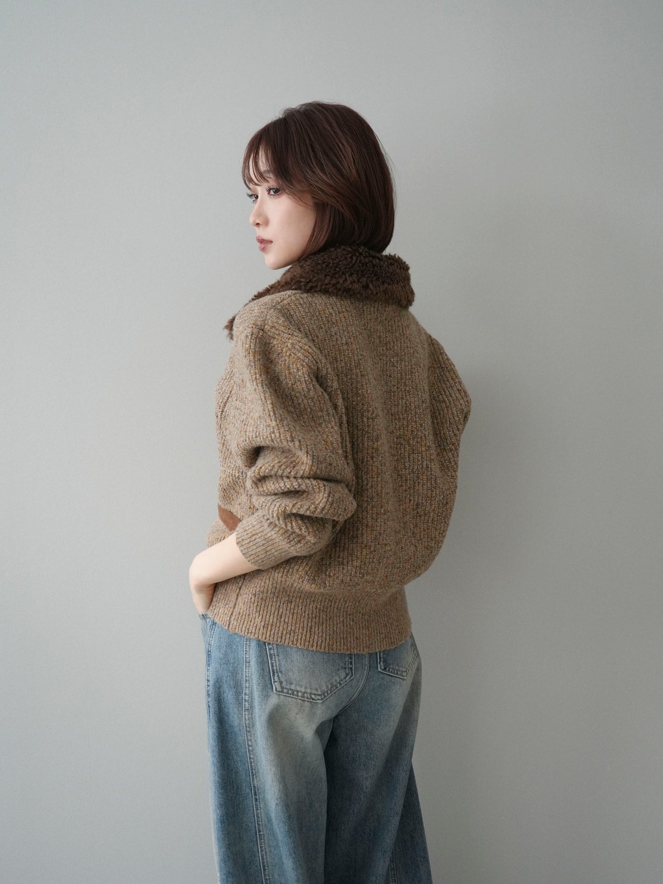 ◆ [予約]襟ボアミックスヤーンニットカーディガン