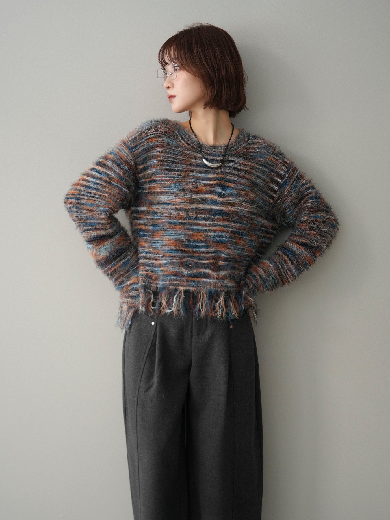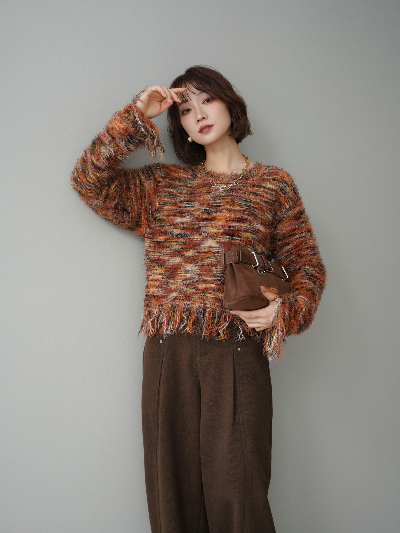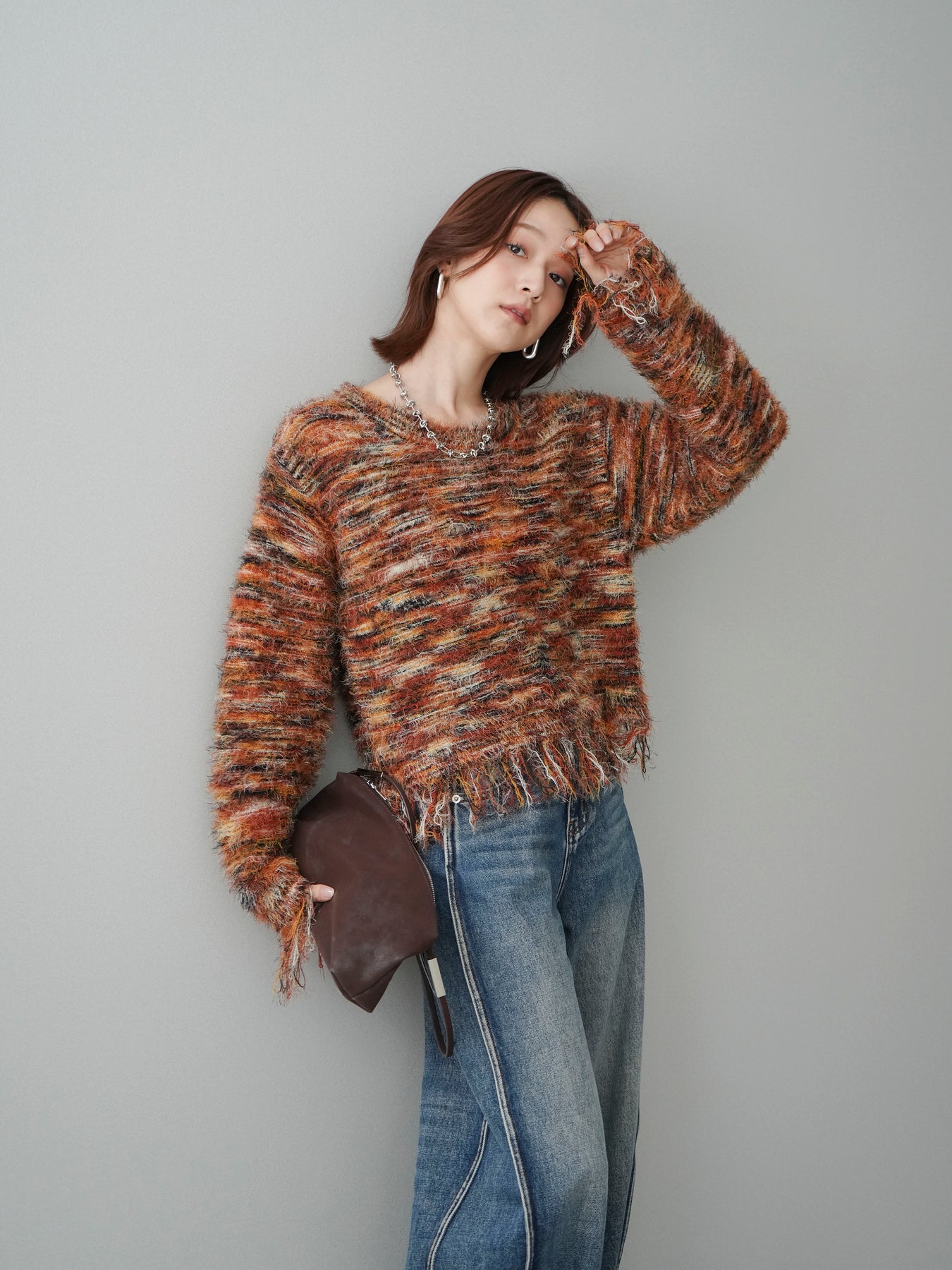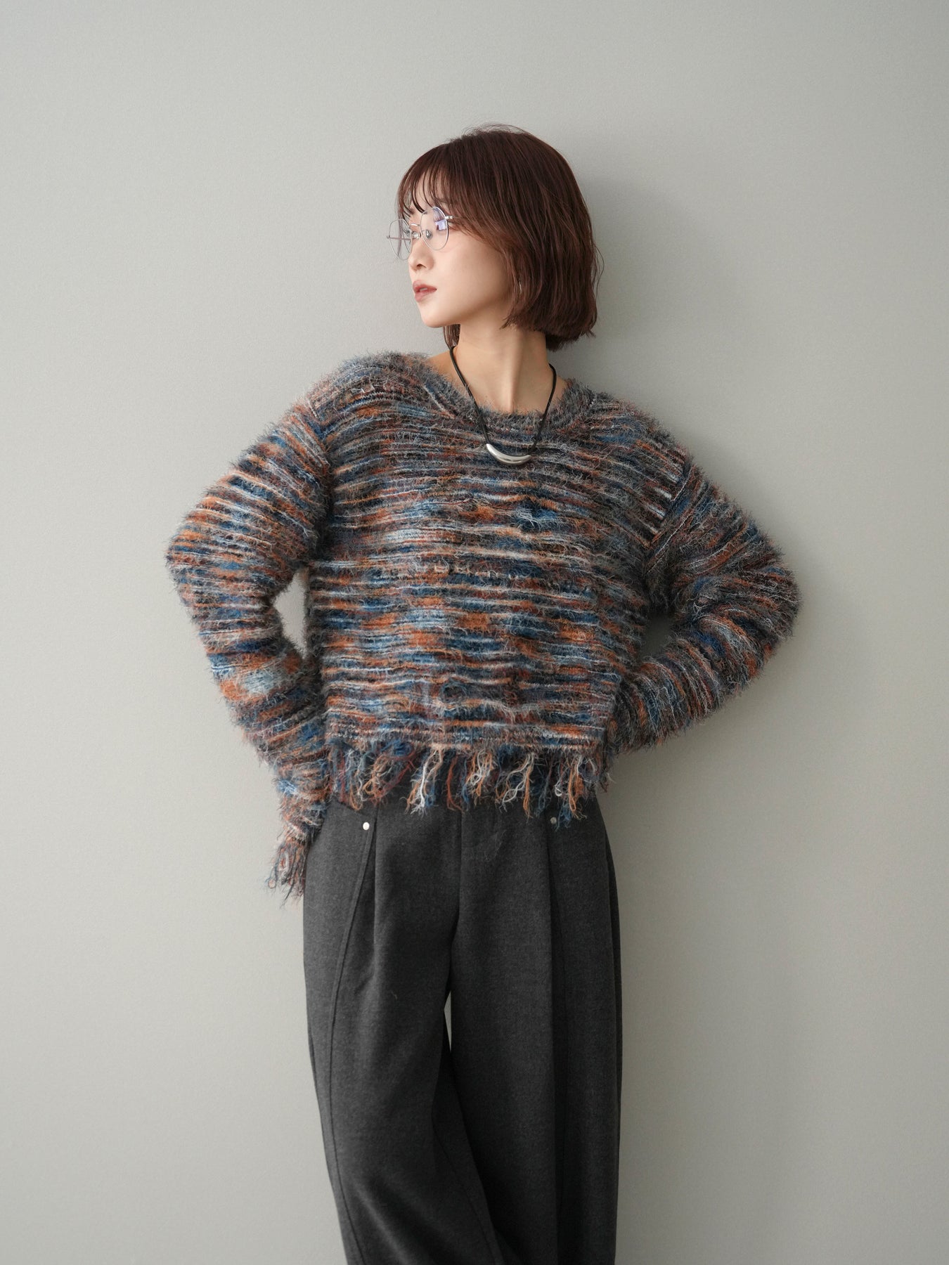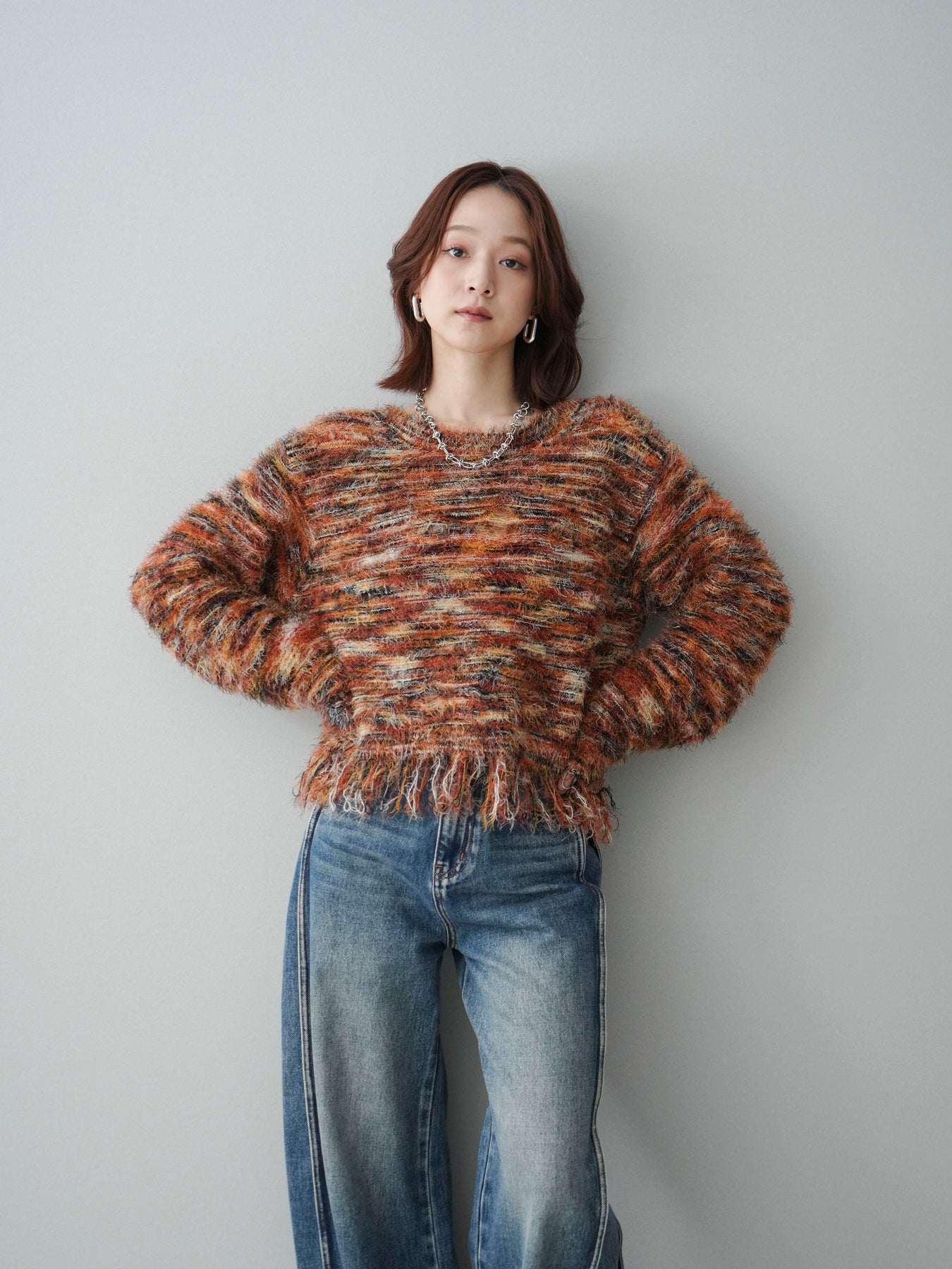 ◆ [予約]裾フリンジミックスヤーンシャギープルオーバー