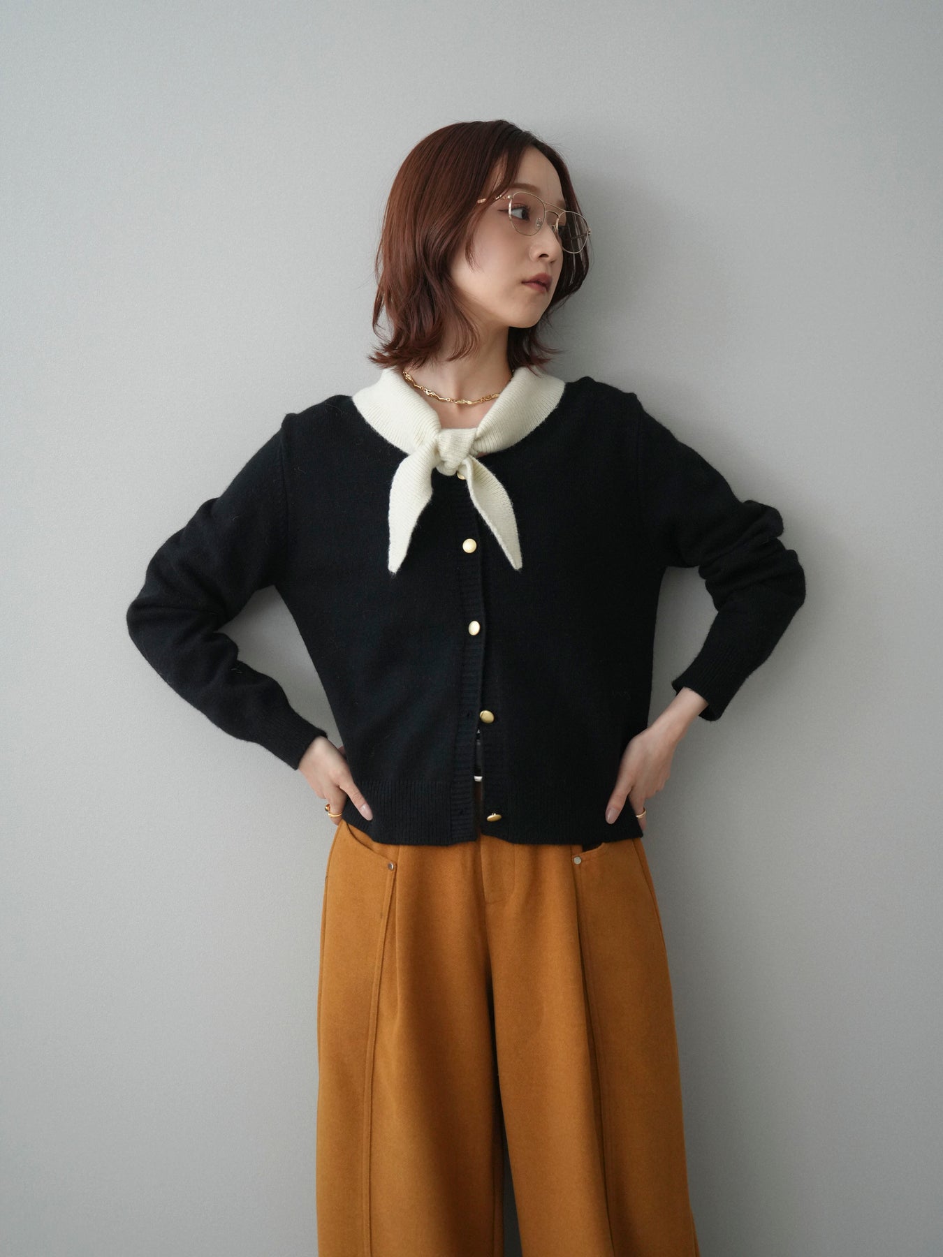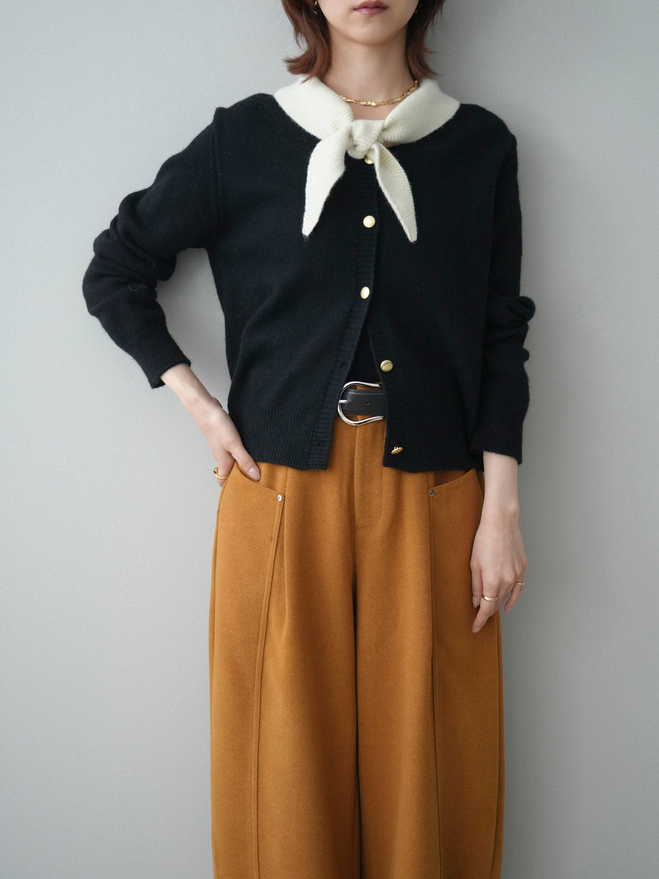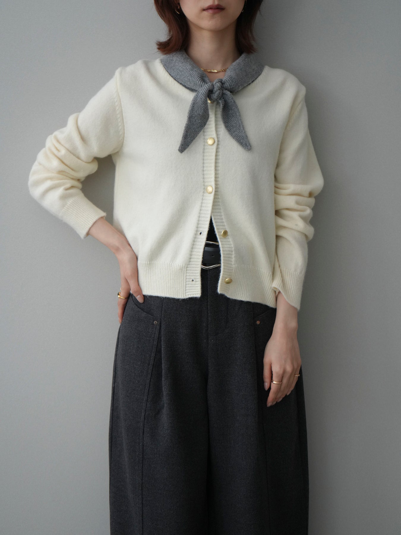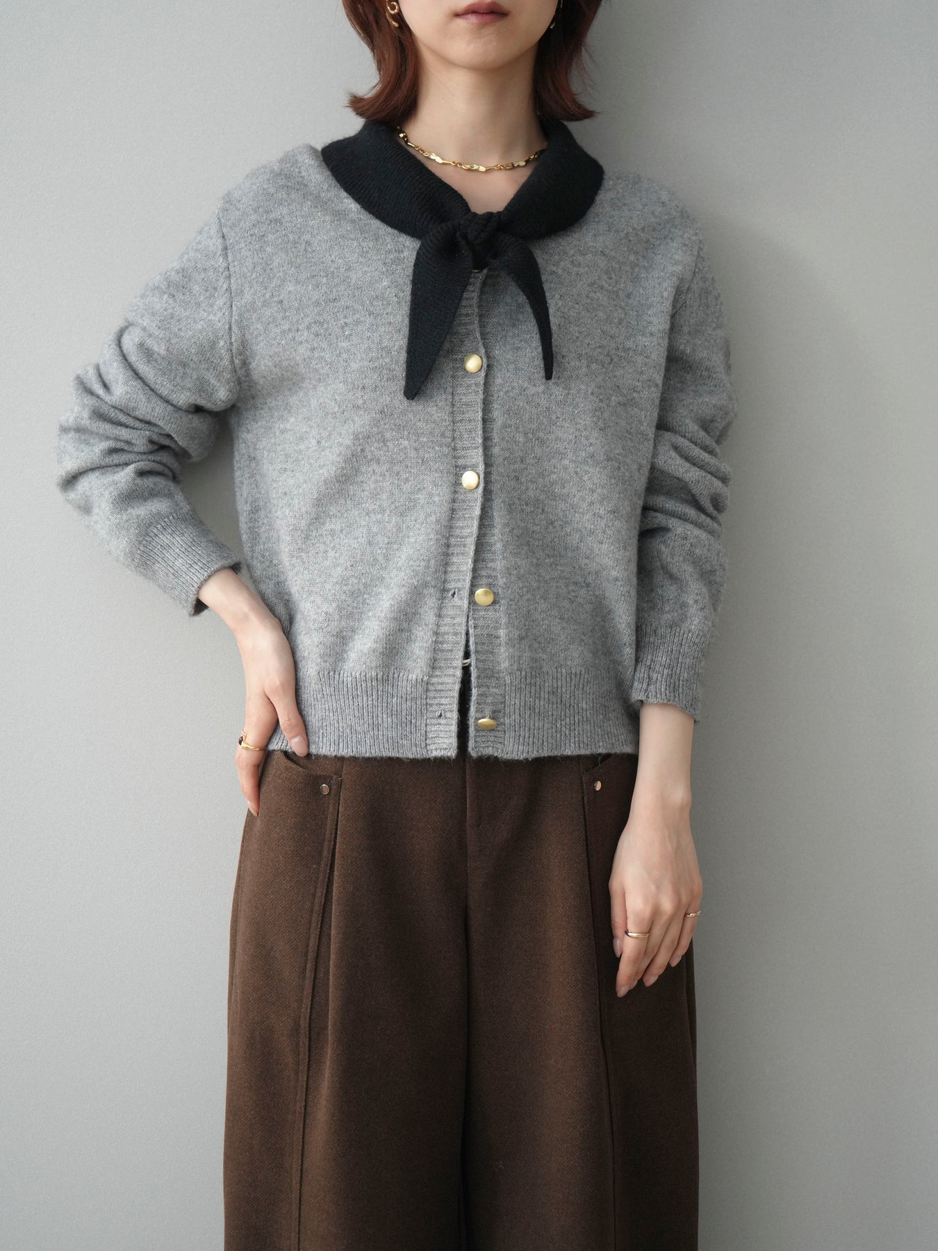 [予約]デザイン襟ニットカーディガン + [予約]デザイン襟ニットカーディガン