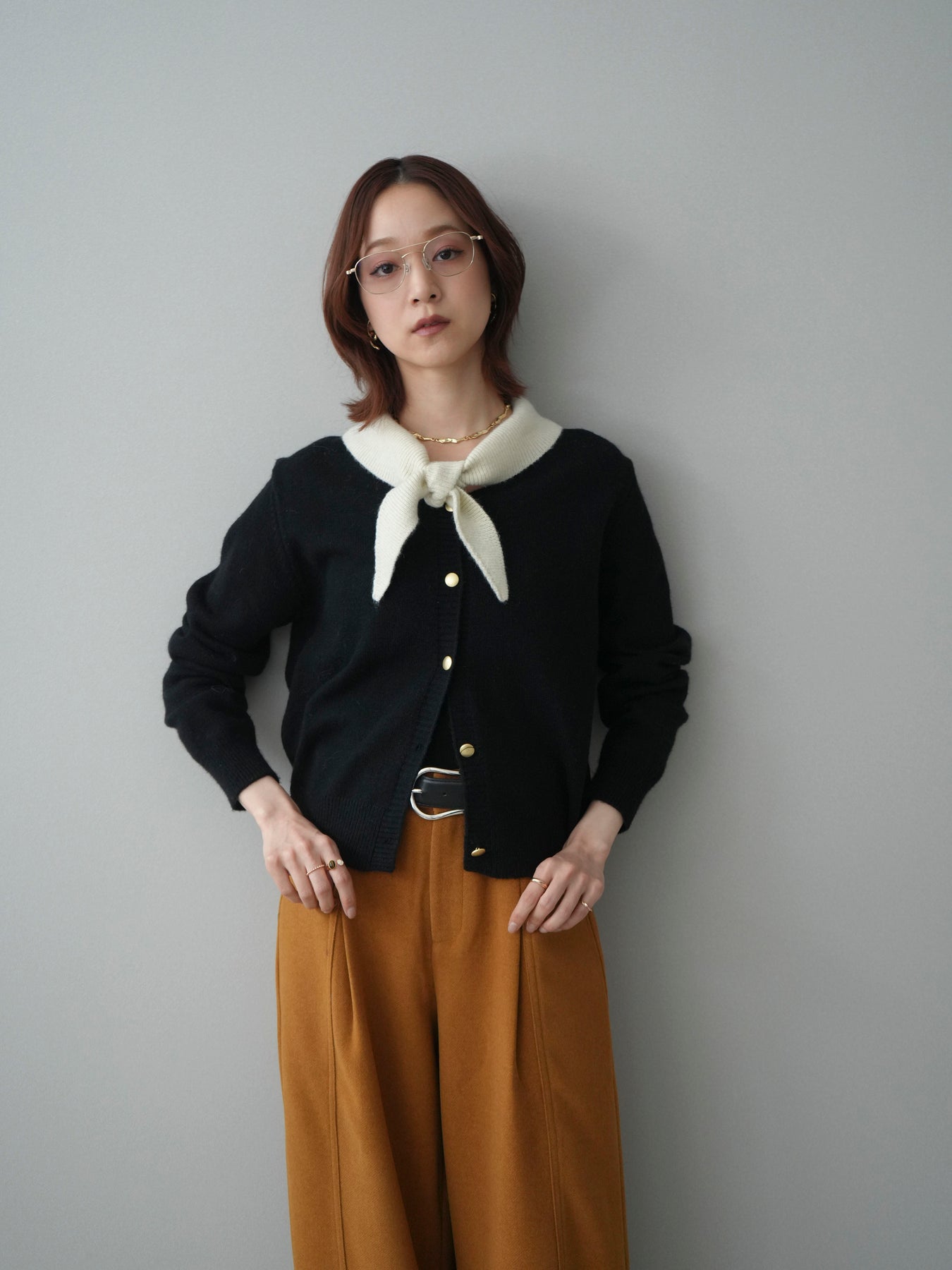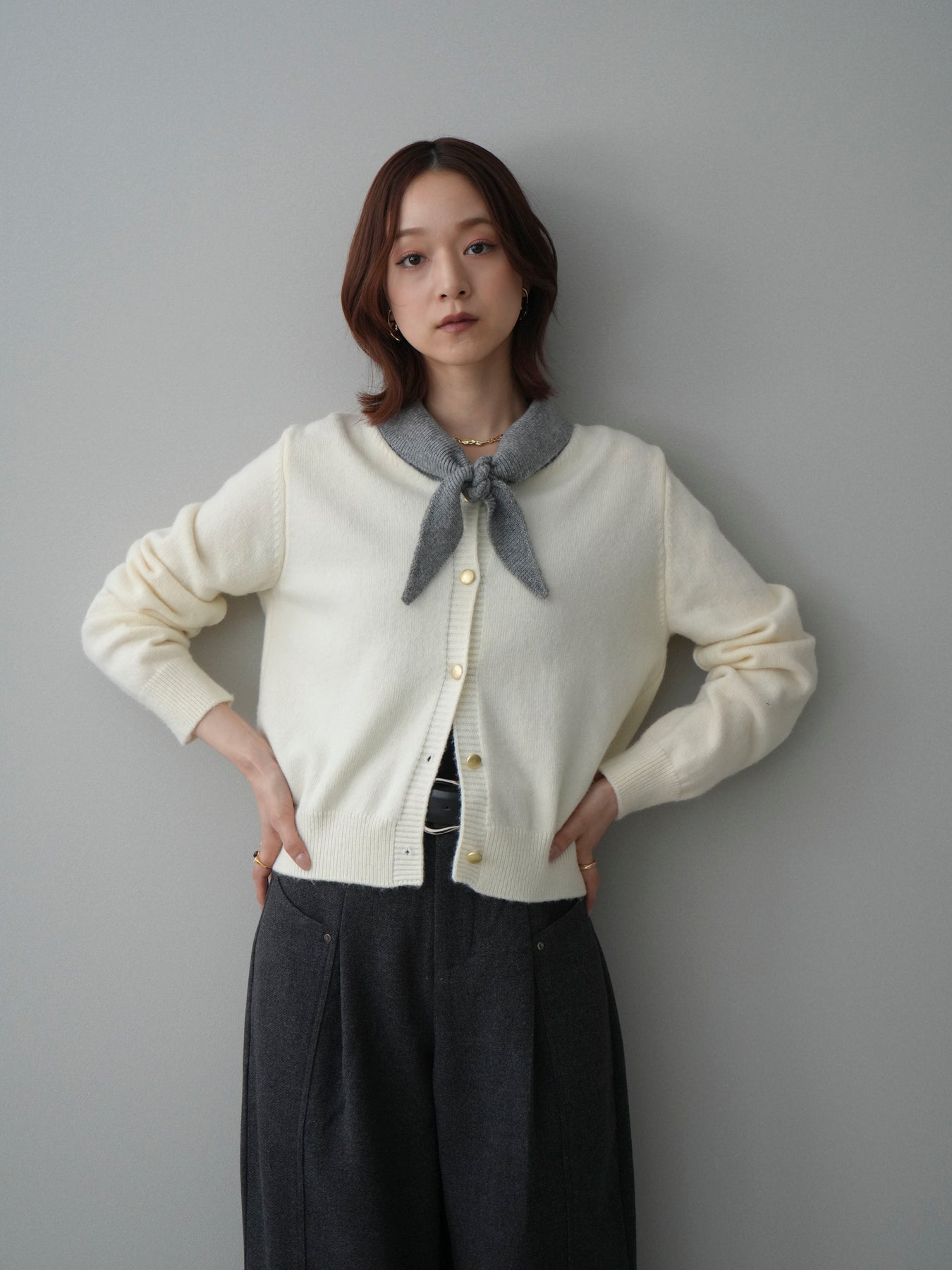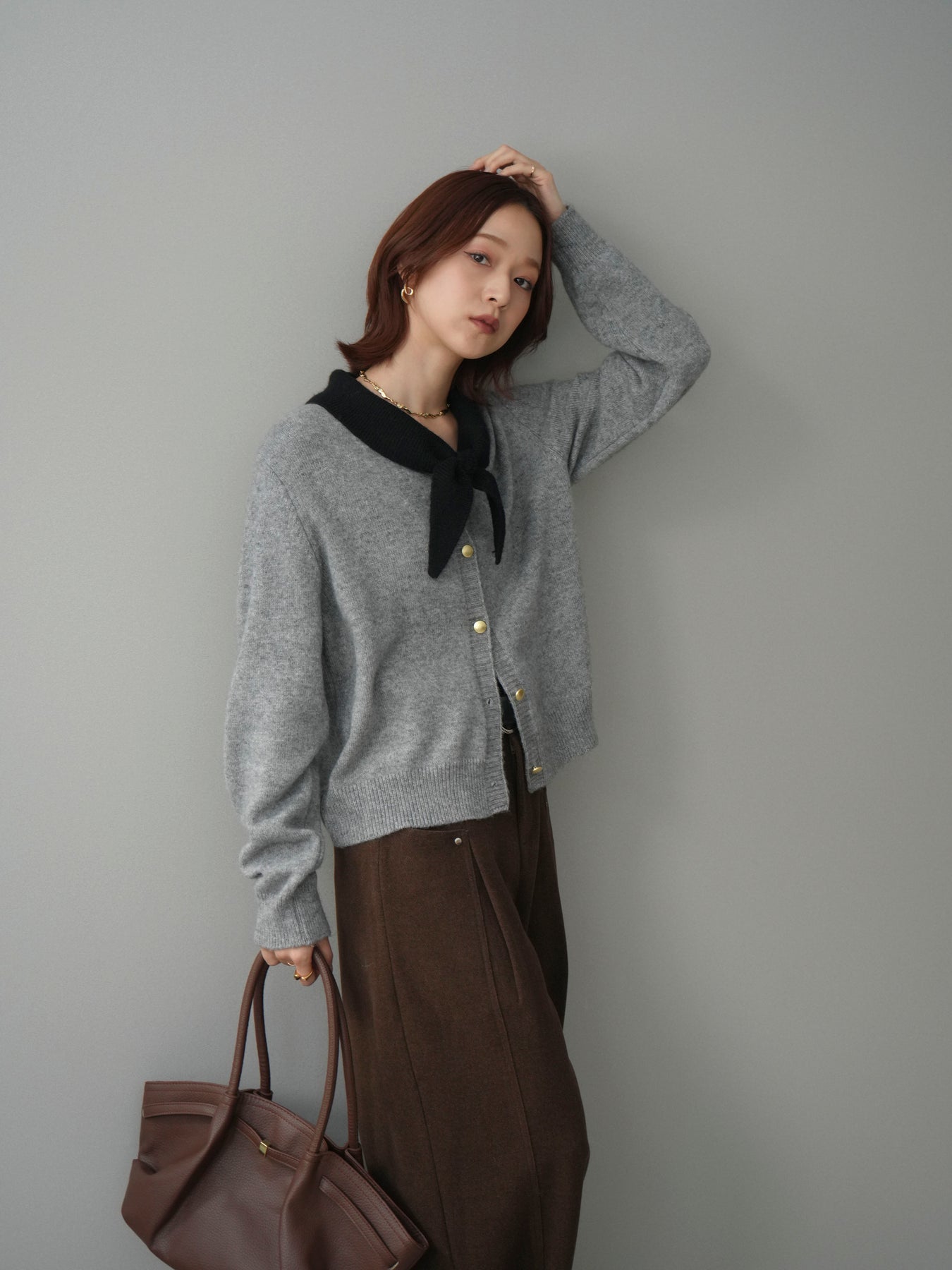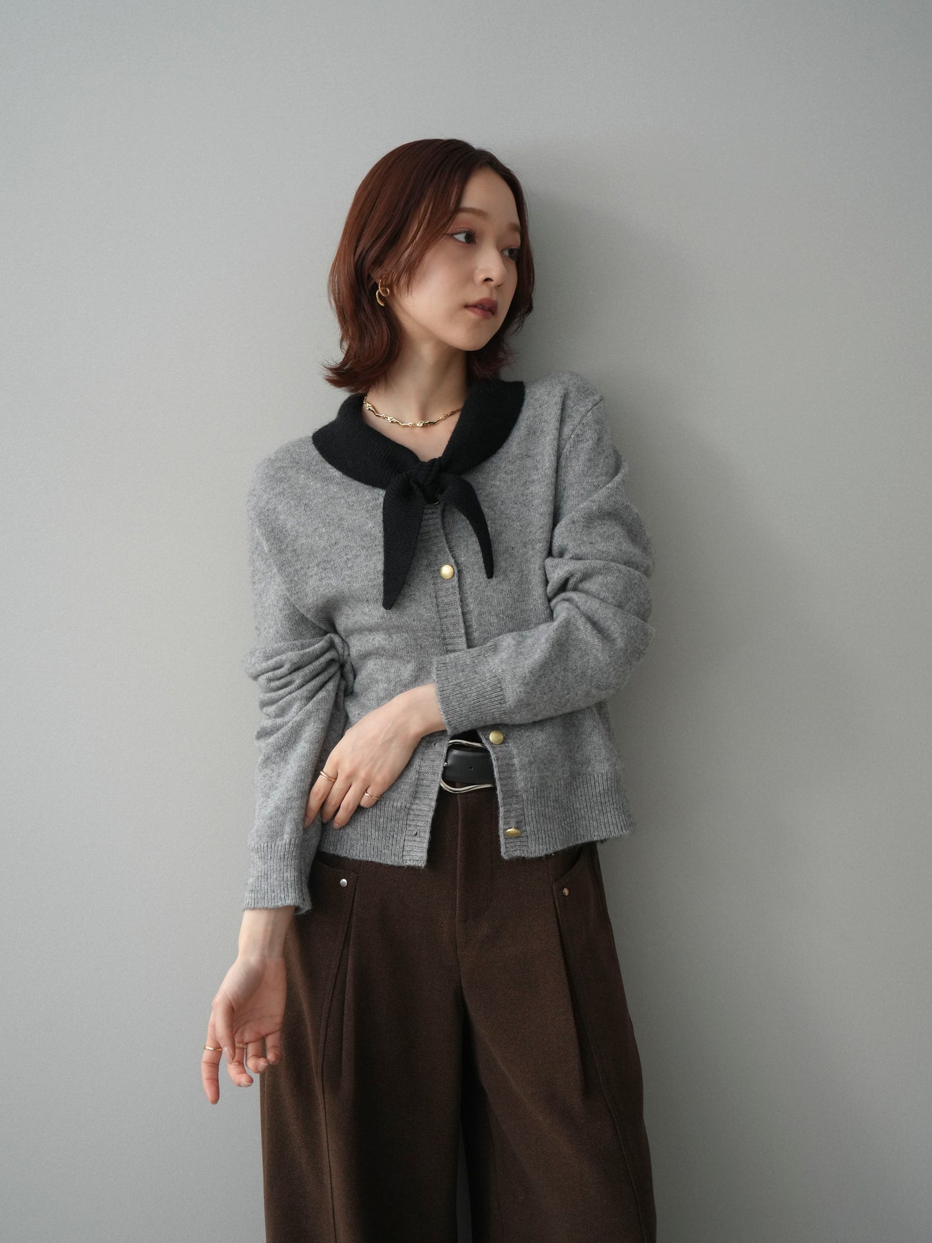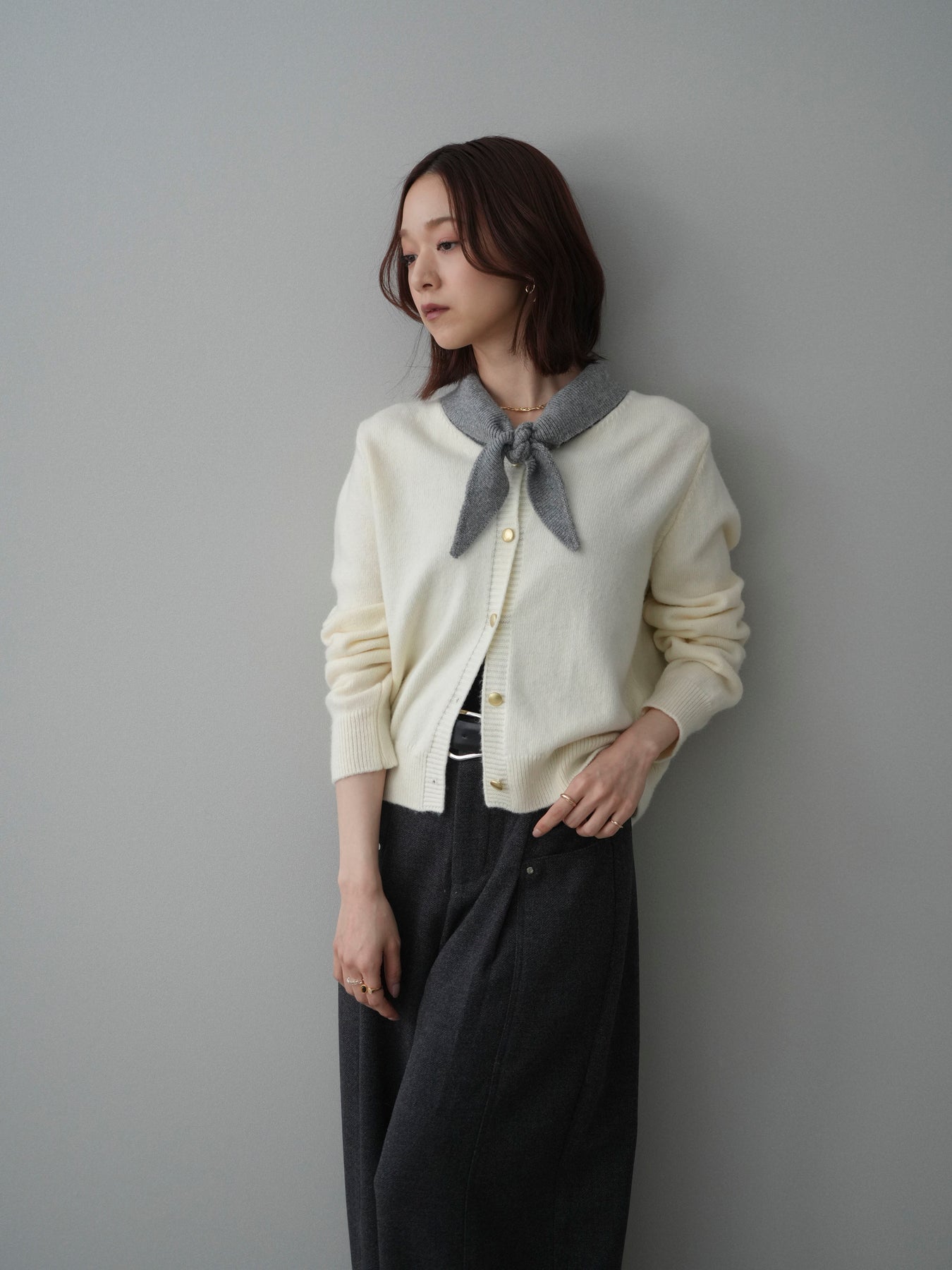 [予約]デザイン襟ニットカーディガン + [予約]デザイン襟ニットカーディガン