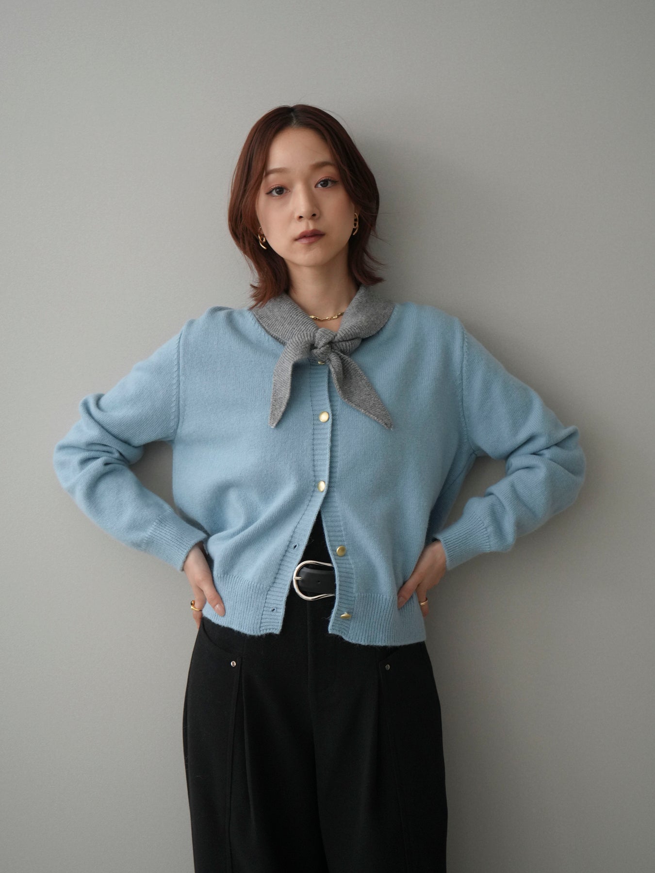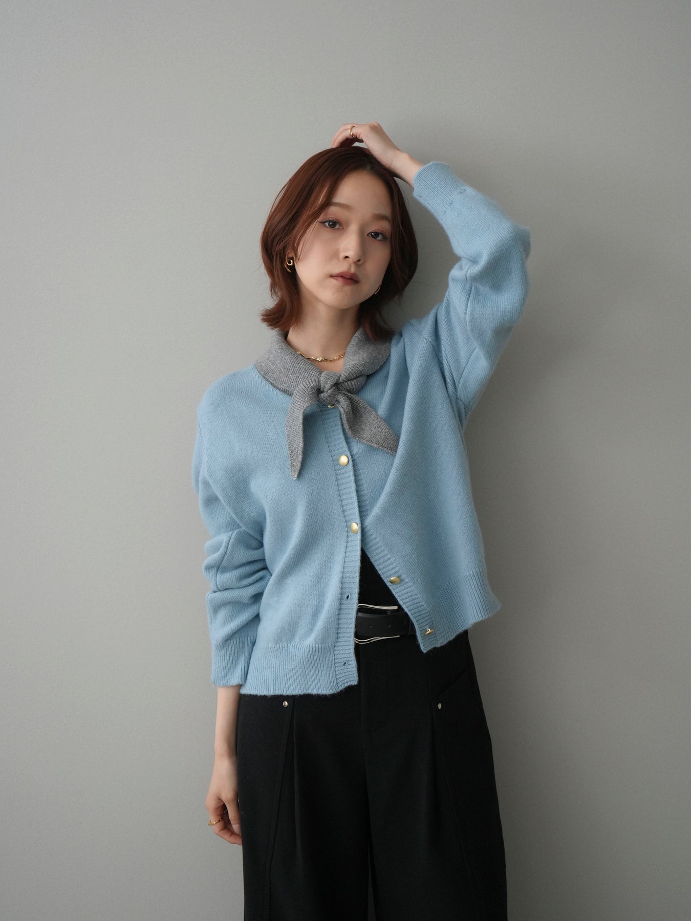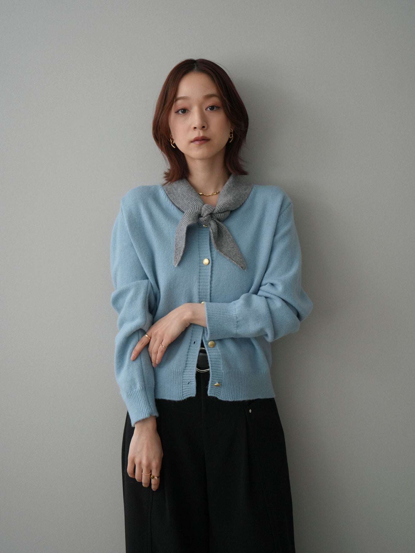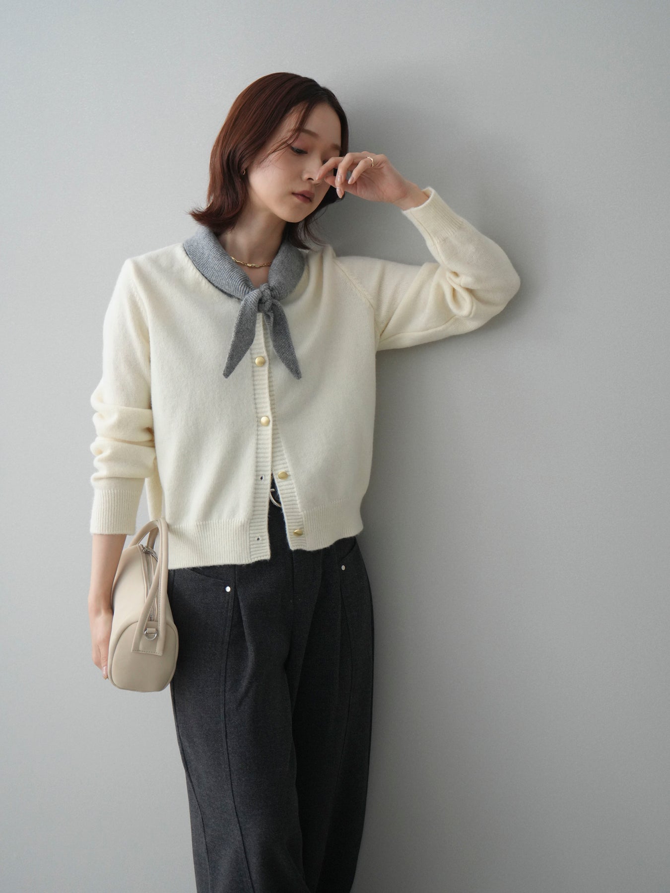 [予約]デザイン襟ニットカーディガン + [予約]デザイン襟ニットカーディガン